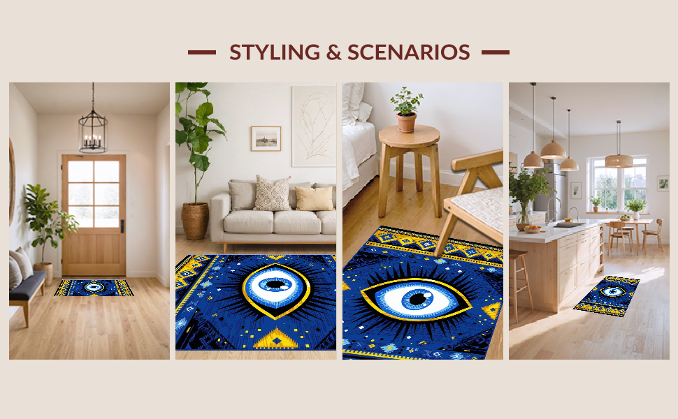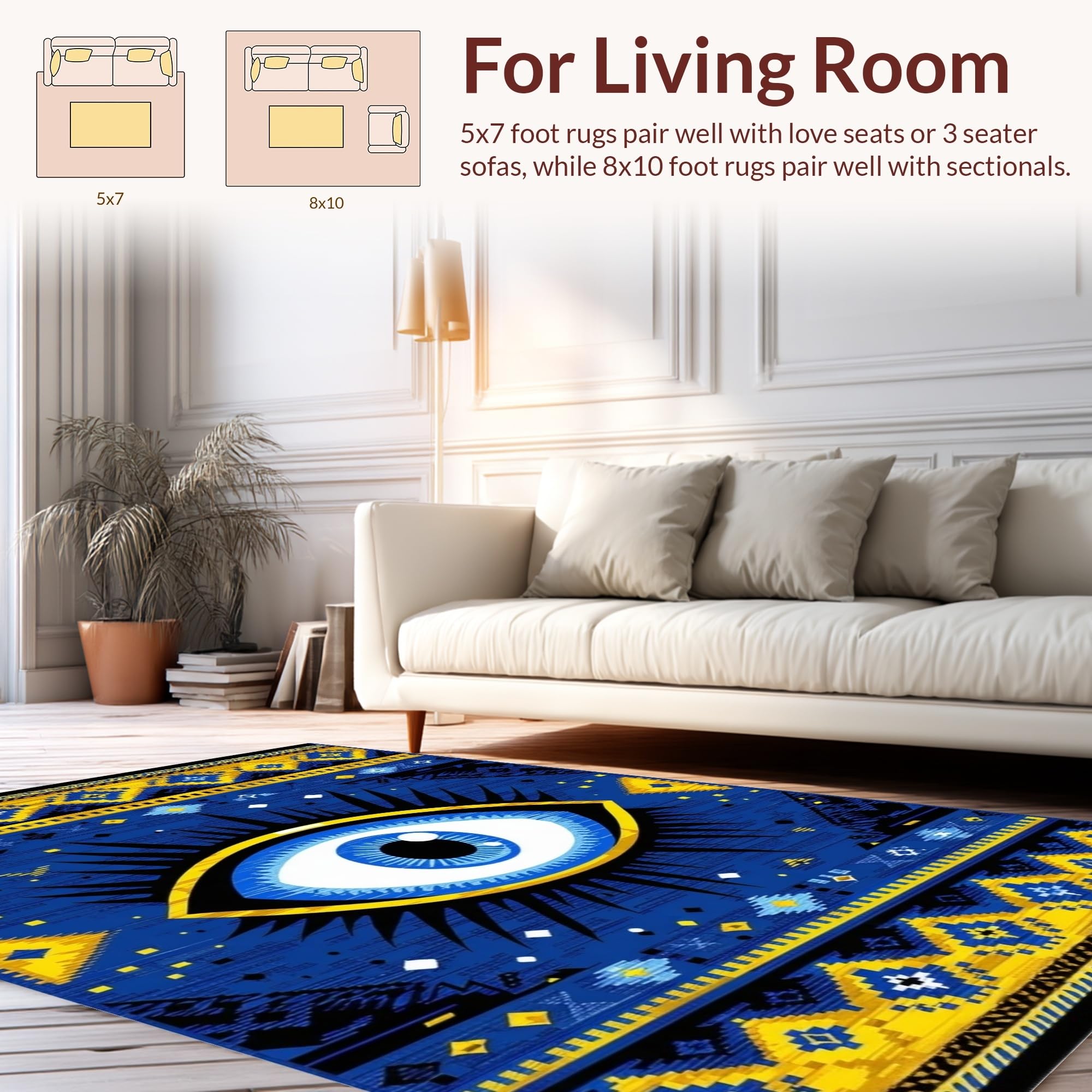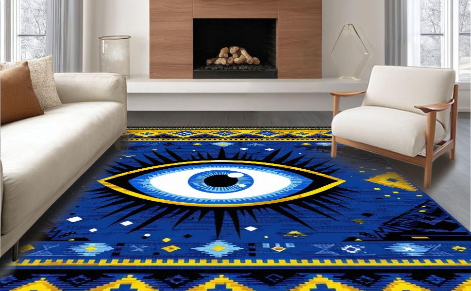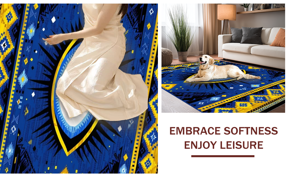Ultra Soft Area Rug, Non Slip, Stain Resistant, Washable Area Rugs for Living Room, Bedroom, Contemporary Distinctive Ethnic Print(Blue) Overview: