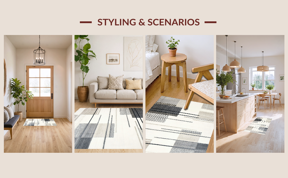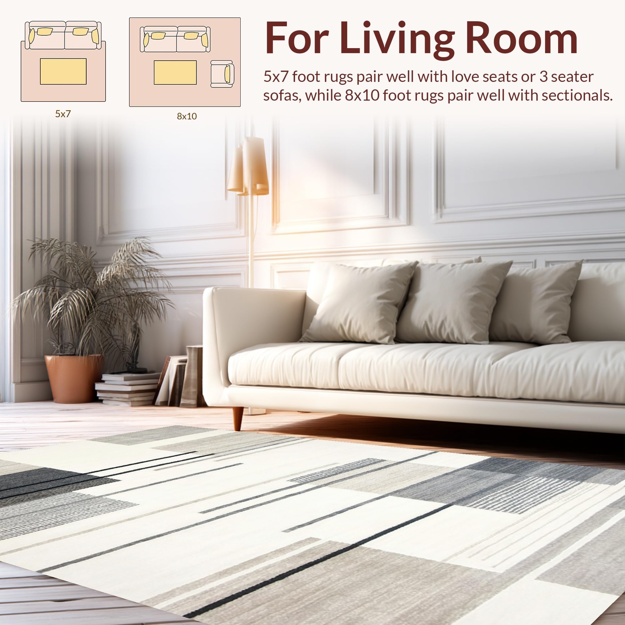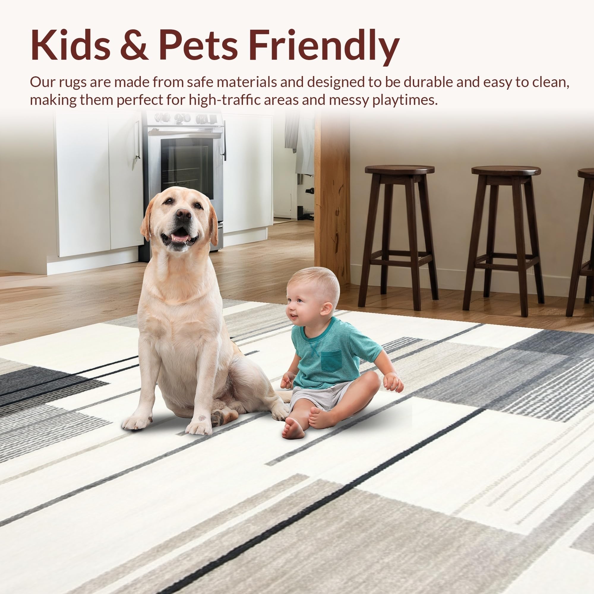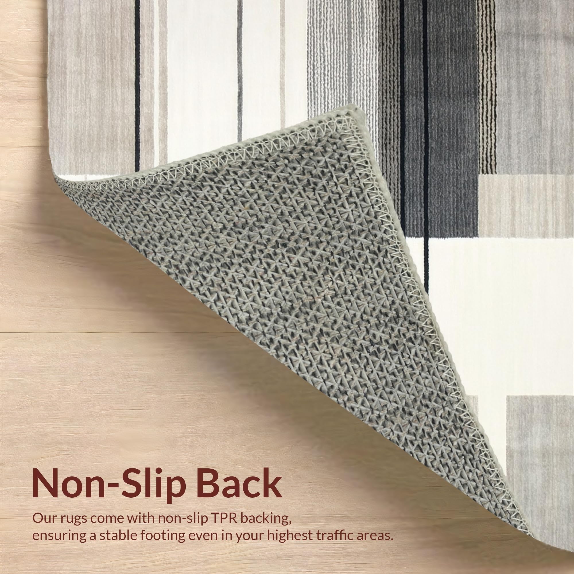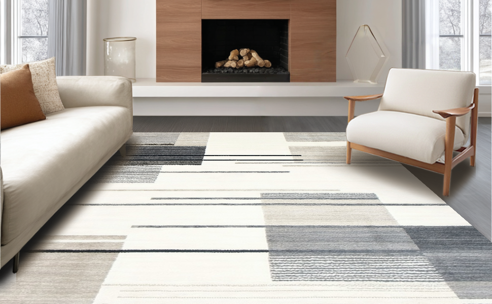 Ultra Soft Area Rug, Non Slip, Stain Resistant, Washable Area Rugs for Living Room, Bedroom, Contemporary Distressed Geometric Aesthetic(Gray) Overview: