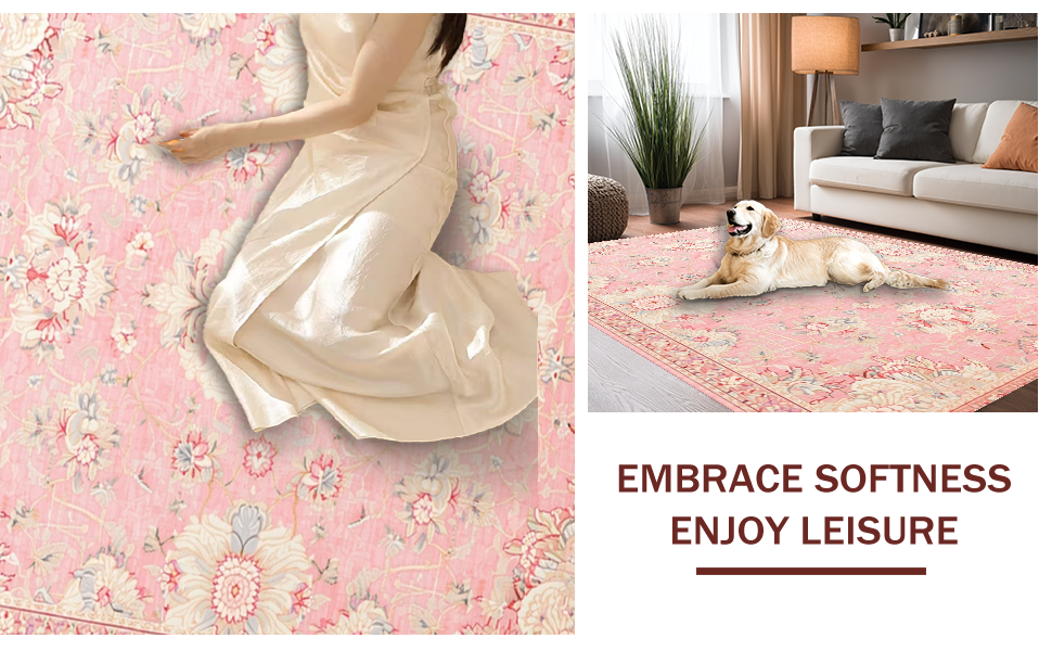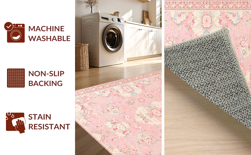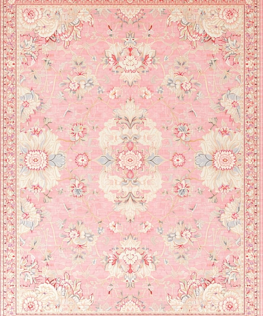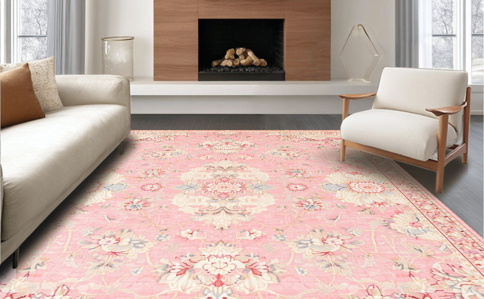 Ultra Soft Area Rug, Non Slip, Stain Resistant, Washable Area Rugs for Living Room, Bedroom, Contemporary Distressed Print Style(Pink) Overview: