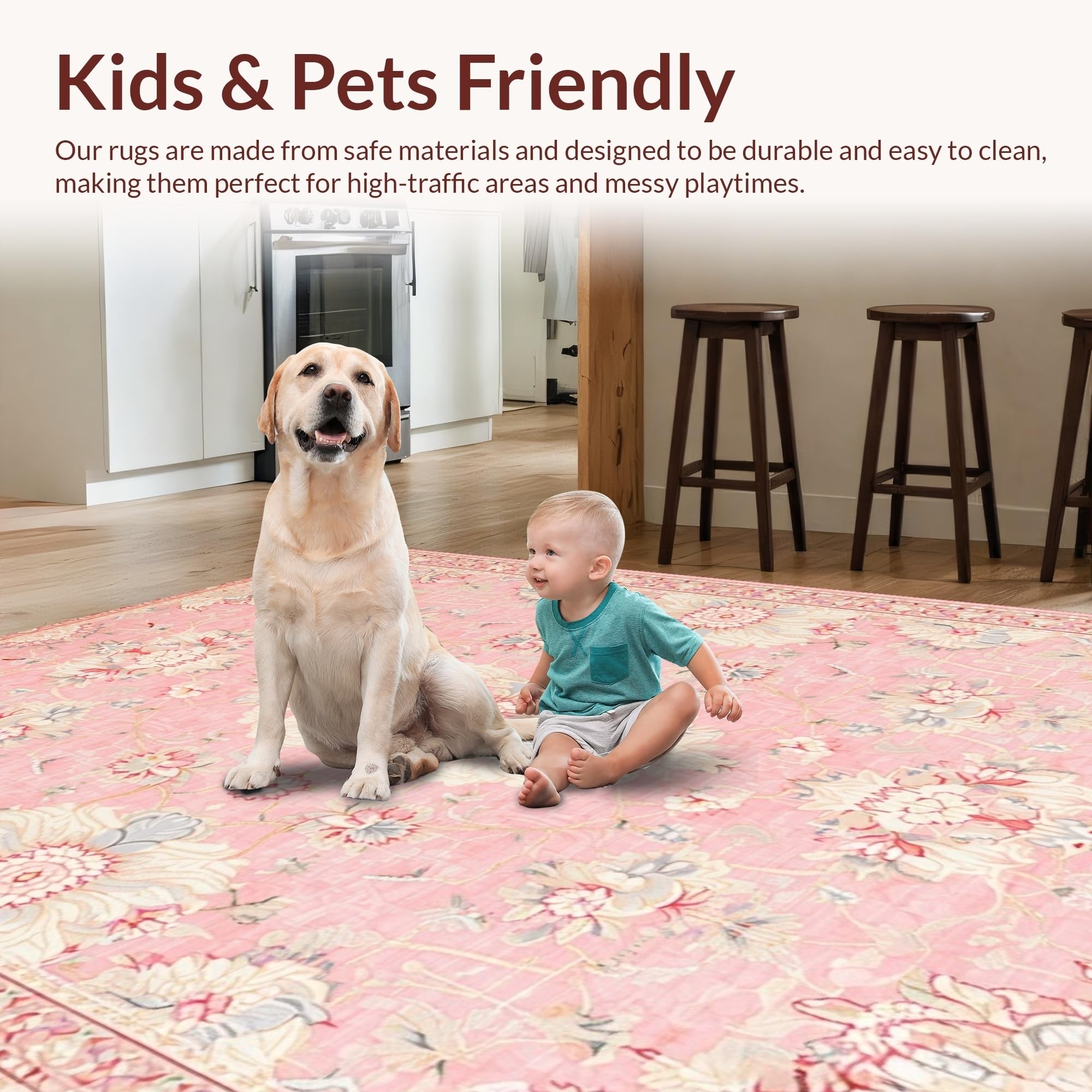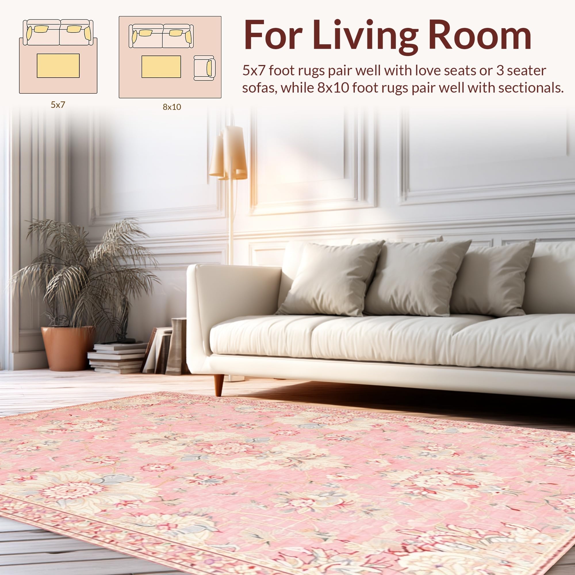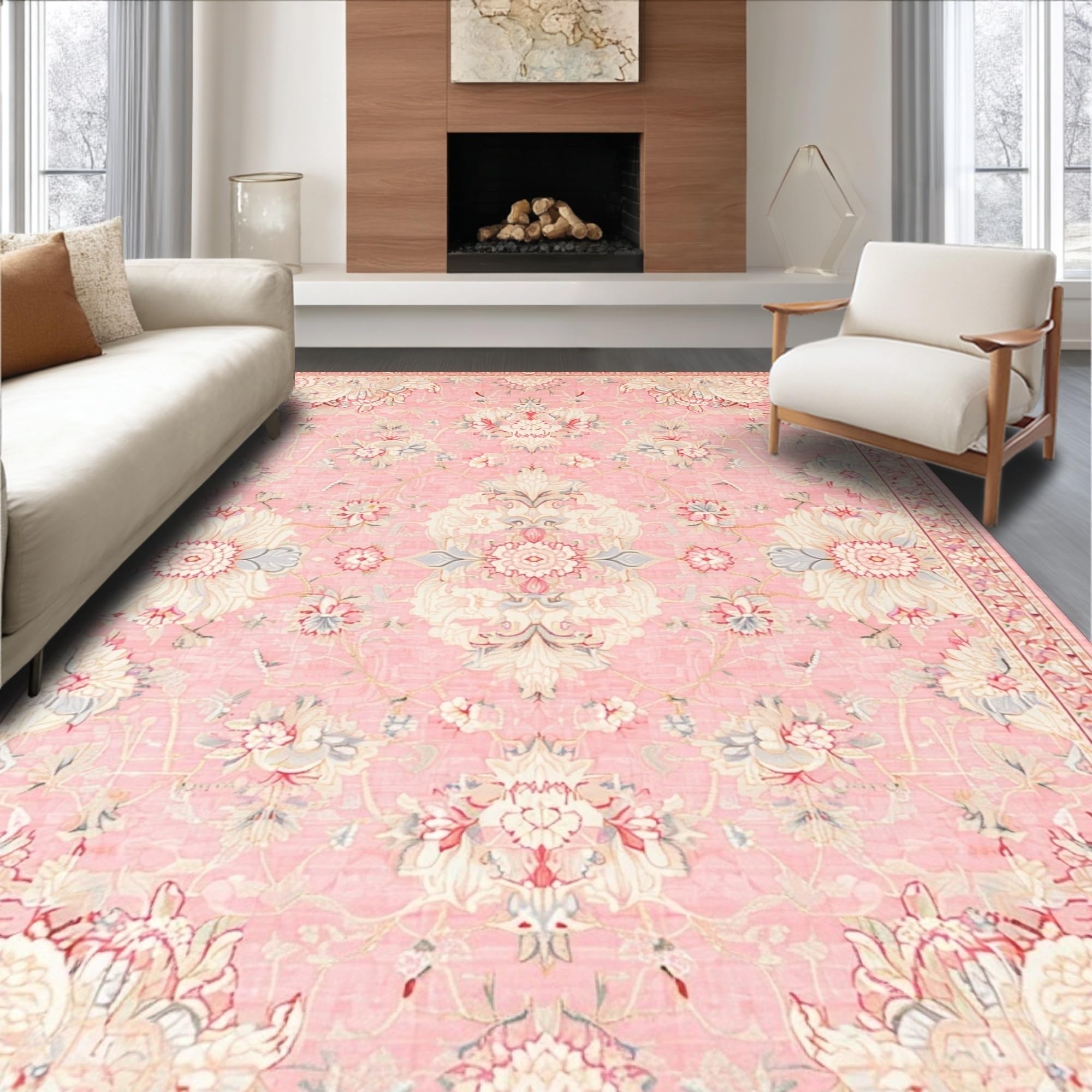 Ultra Soft Area Rug, Non Slip, Stain Resistant, Washable Area Rugs for Living Room, Bedroom, Contemporary Distressed Print Style(Pink) Overview: