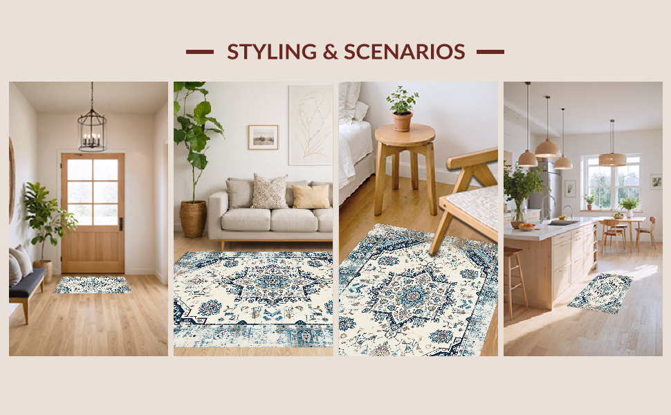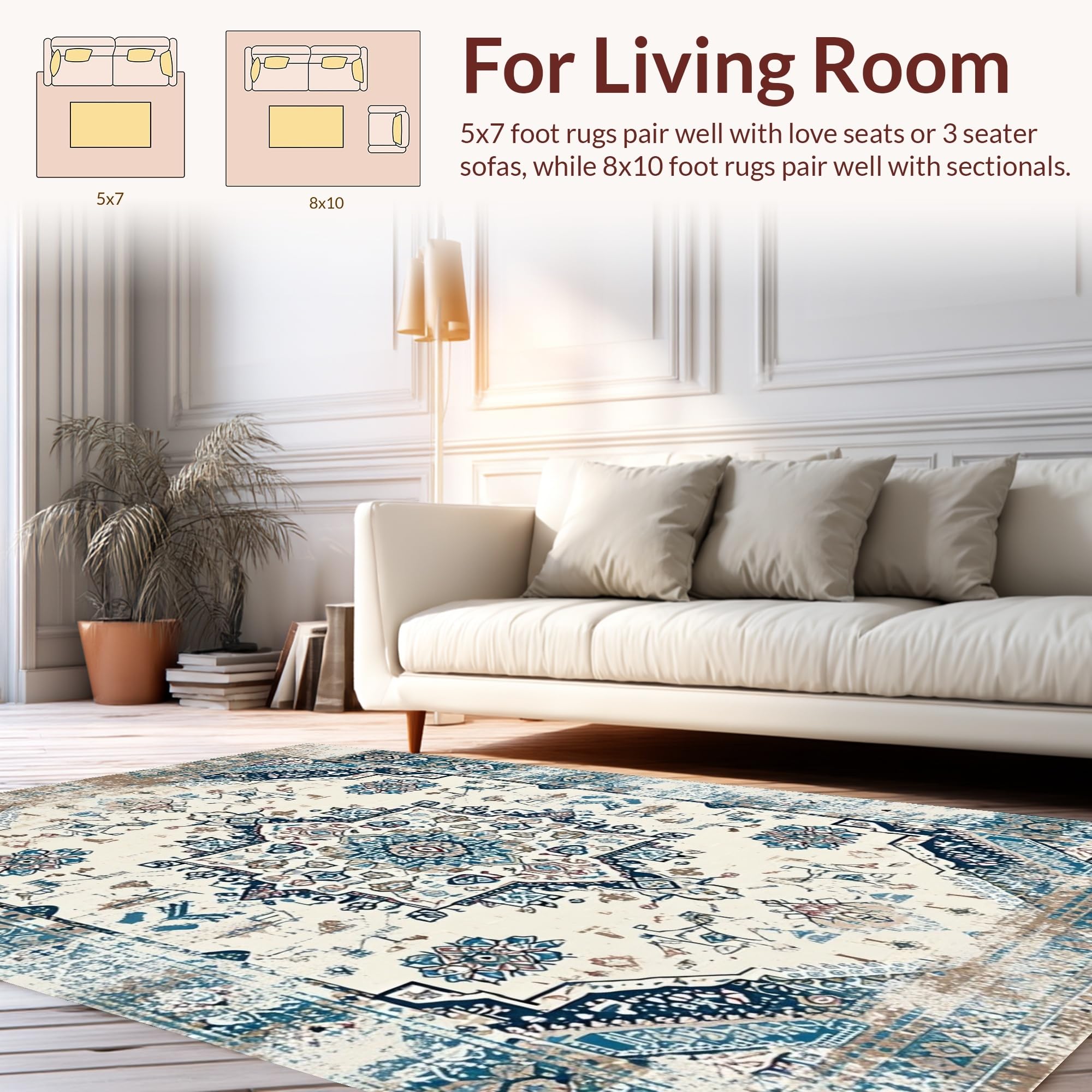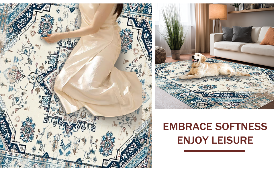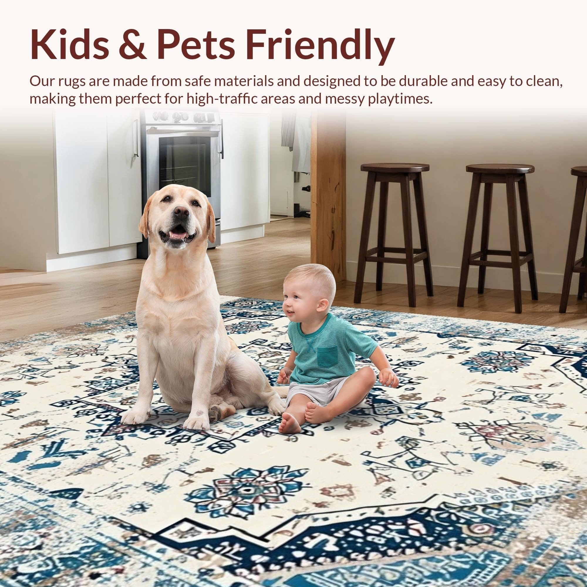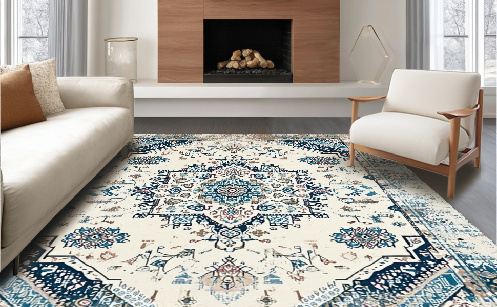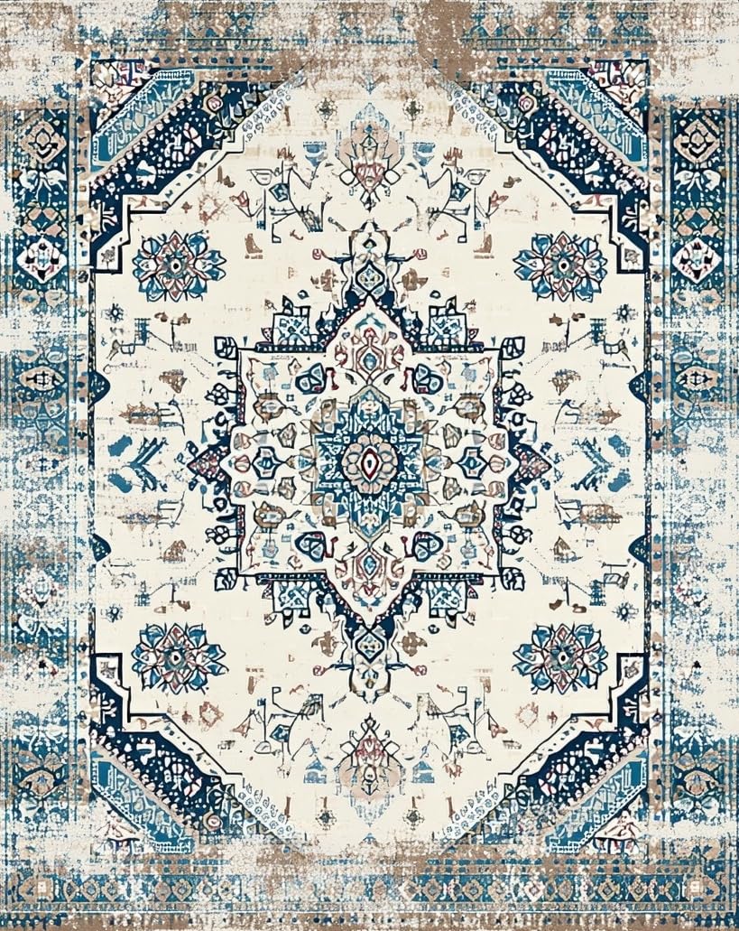 Ultra Soft Area Rug, Non Slip, Stain Resistant, Washable Area Rugs for Living Room, Bedroom, Contemporary Distressed Symmetrical Patterns(Beige) Overview: