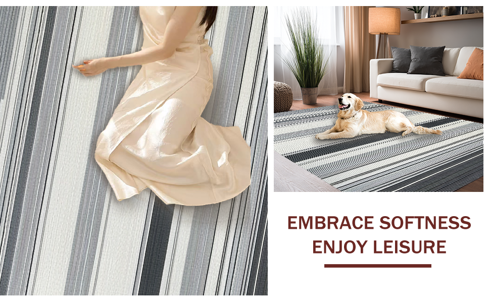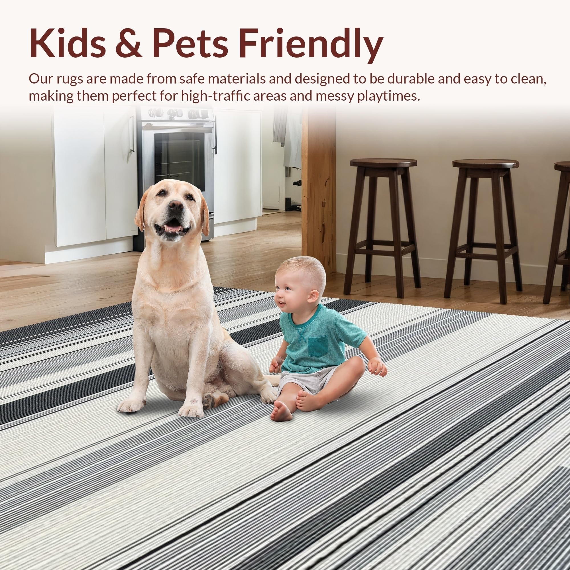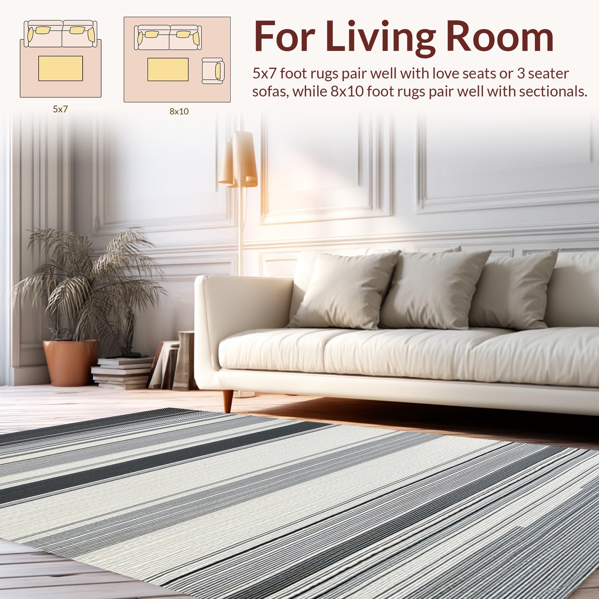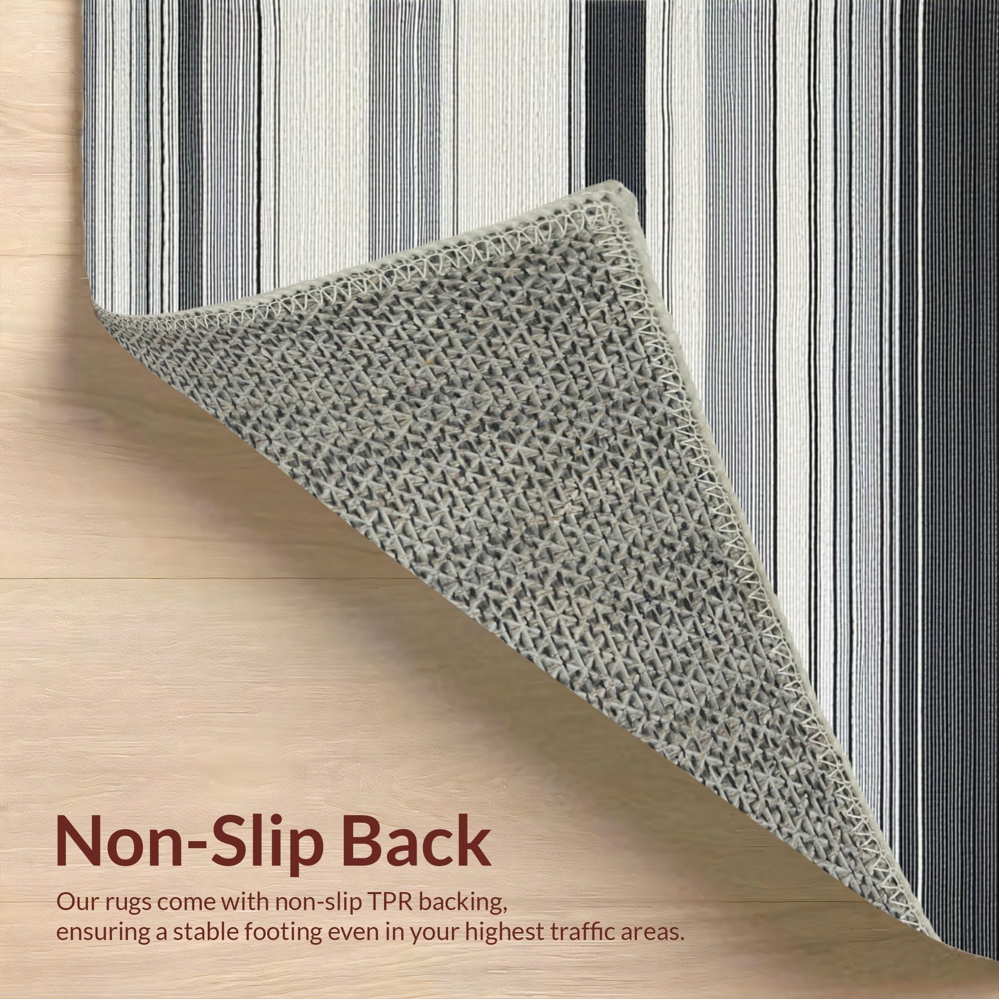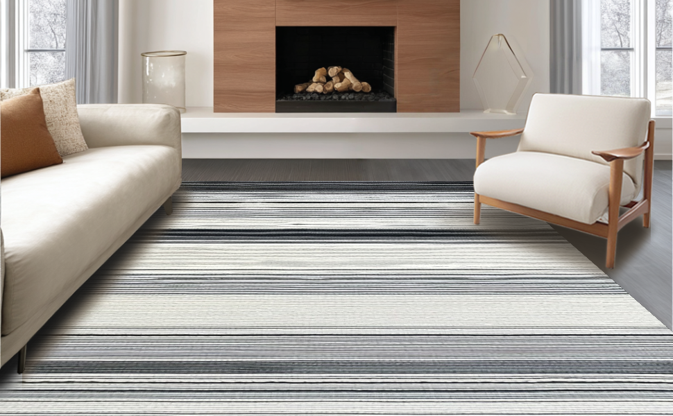 Ultra Soft Area Rug, Non Slip, Stain Resistant, Washable Area Rugs for Living Room, Bedroom, Contemporary Dual-Tone Linear Design(Black) Overview: