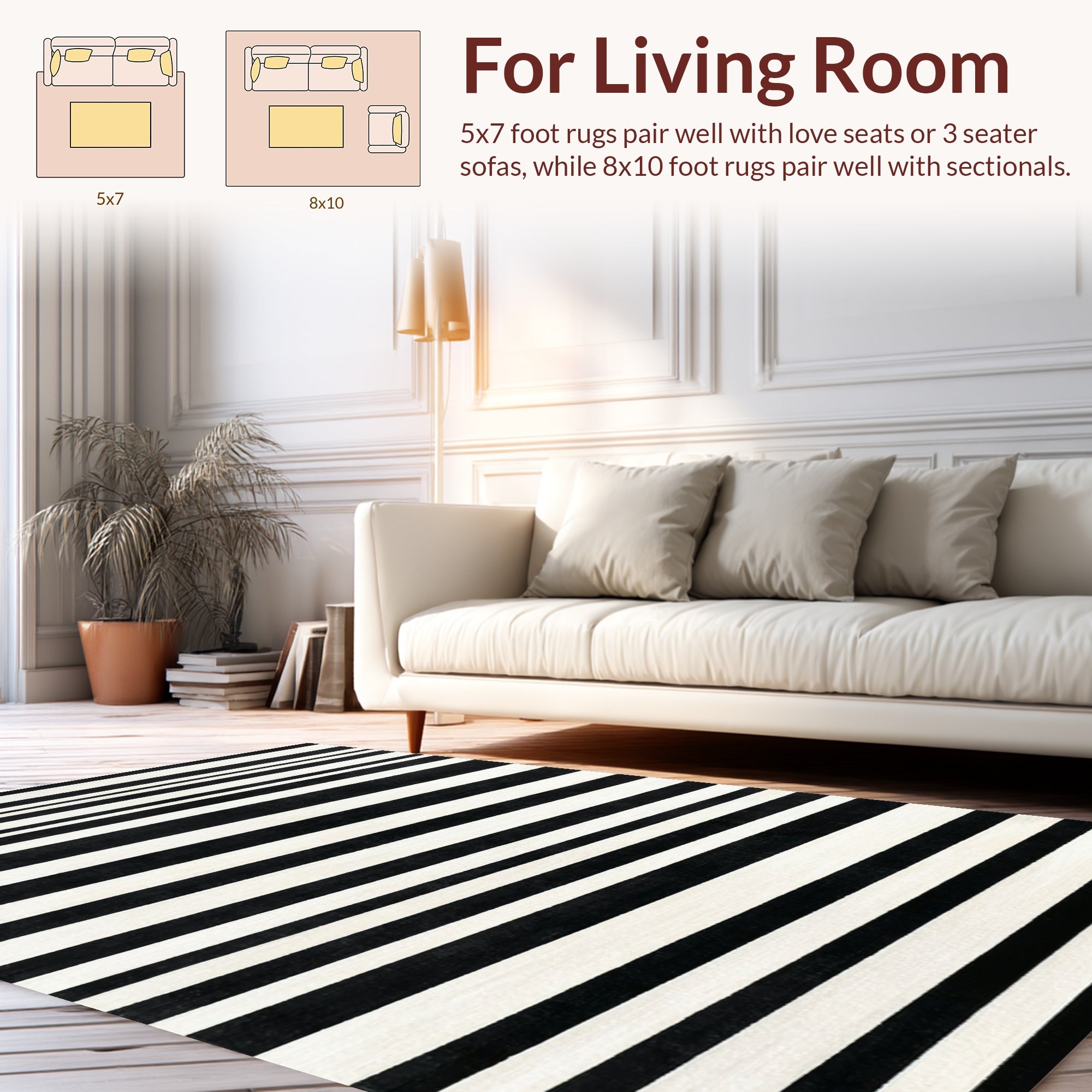 Ultra Soft Area Rug, Non Slip, Stain Resistant, Washable Area Rugs for Living Room, Bedroom, Contemporary Dual-Tone Linear Pattern Home Decor Floor Mat With Modern Look(Black) Overview: