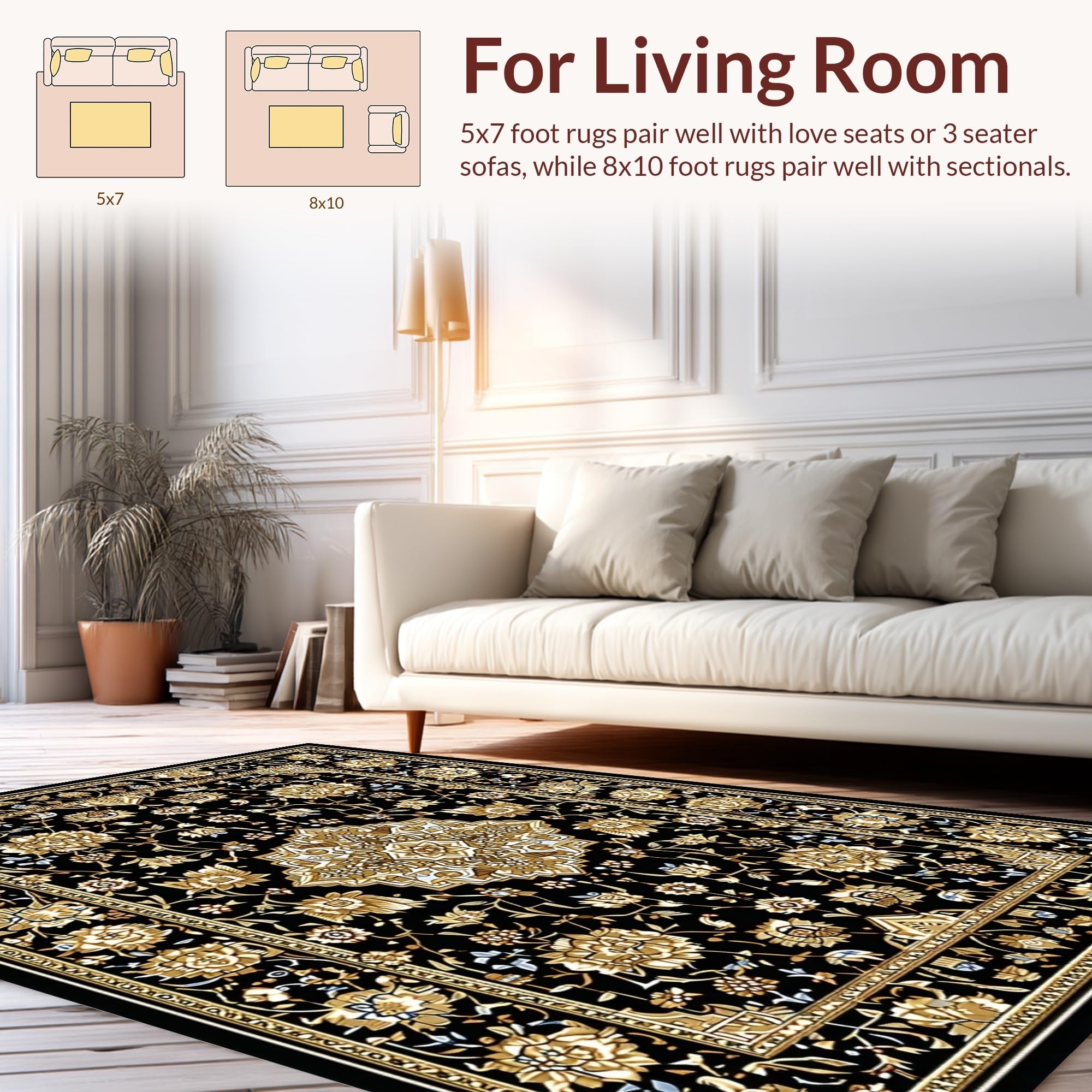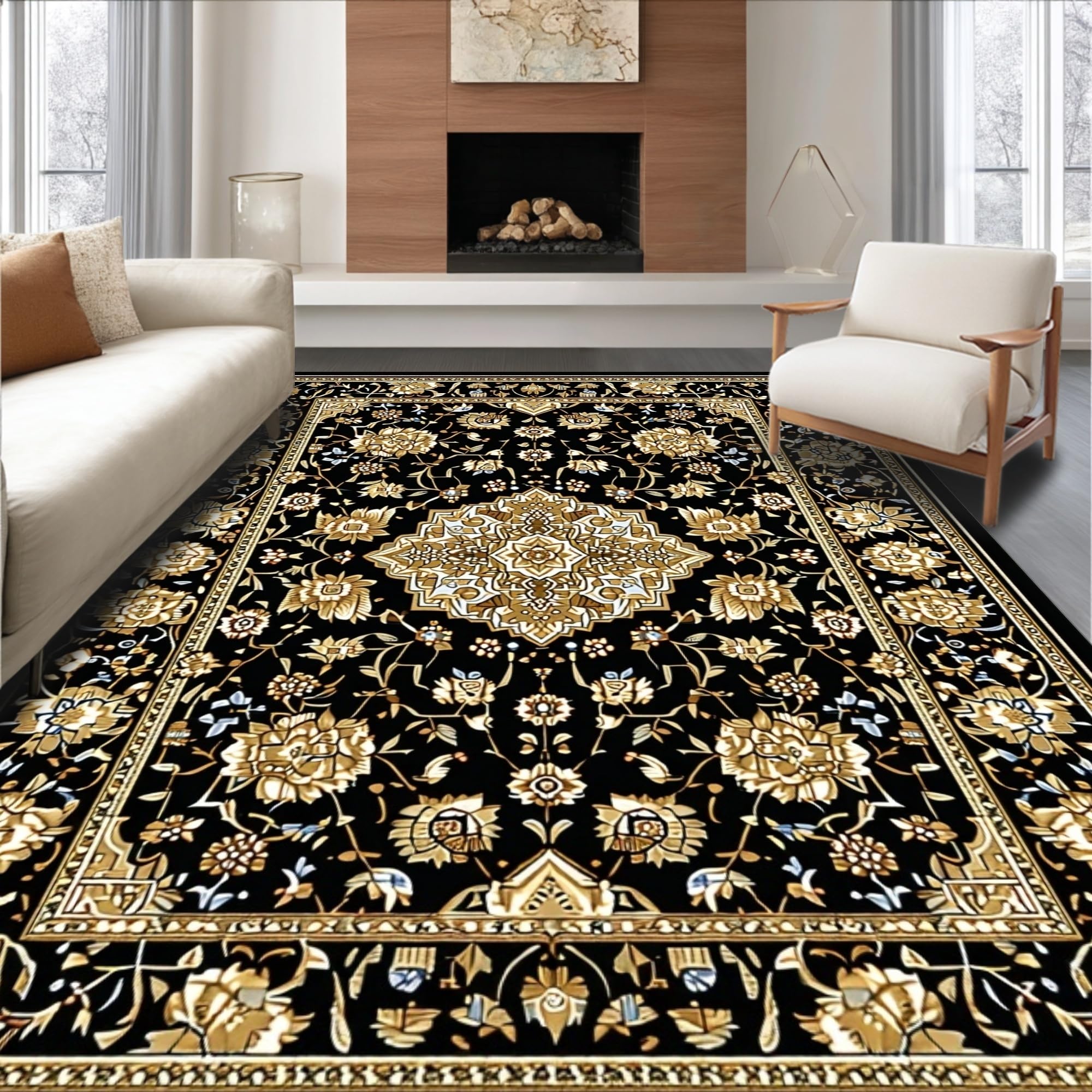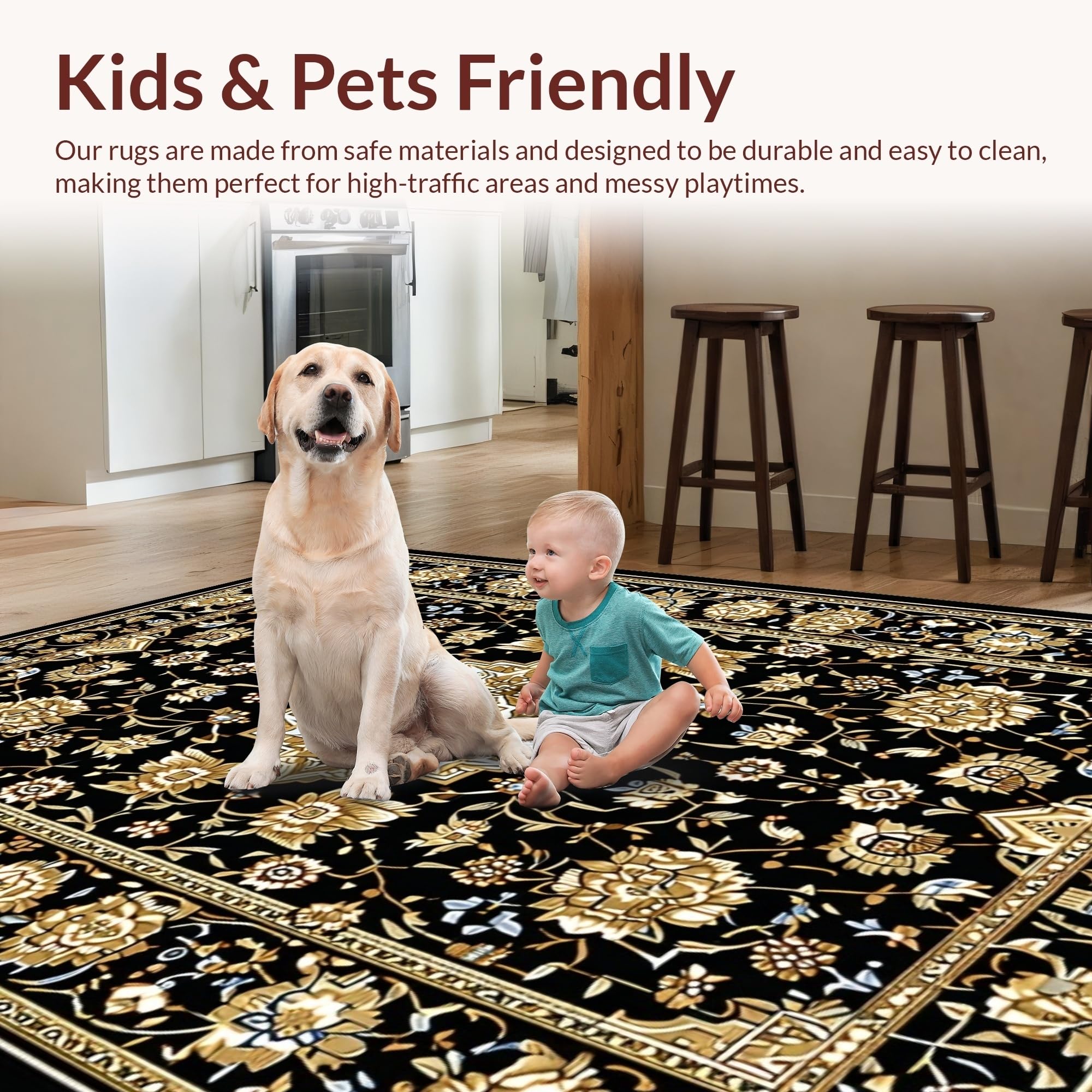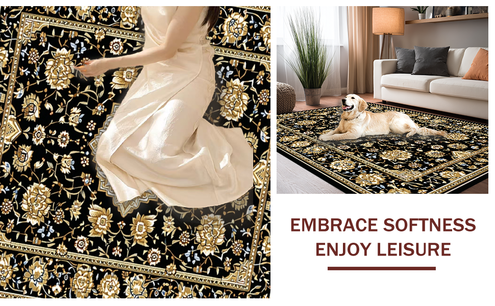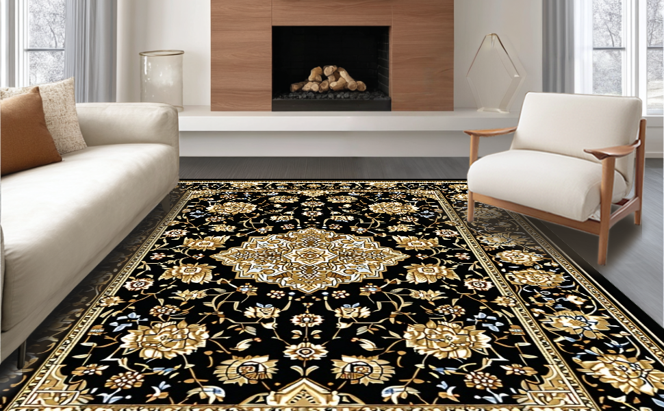 Ultra Soft Area Rug, Non Slip, Stain Resistant, Washable Area Rugs for Living Room, Bedroom, Contemporary Earth Tone Arrangement(Black) Overview: