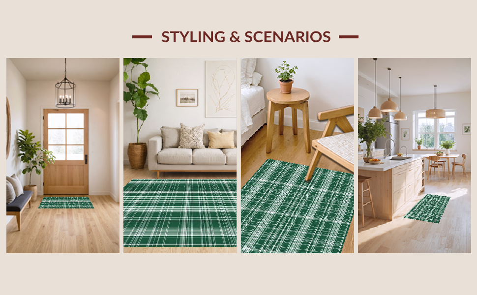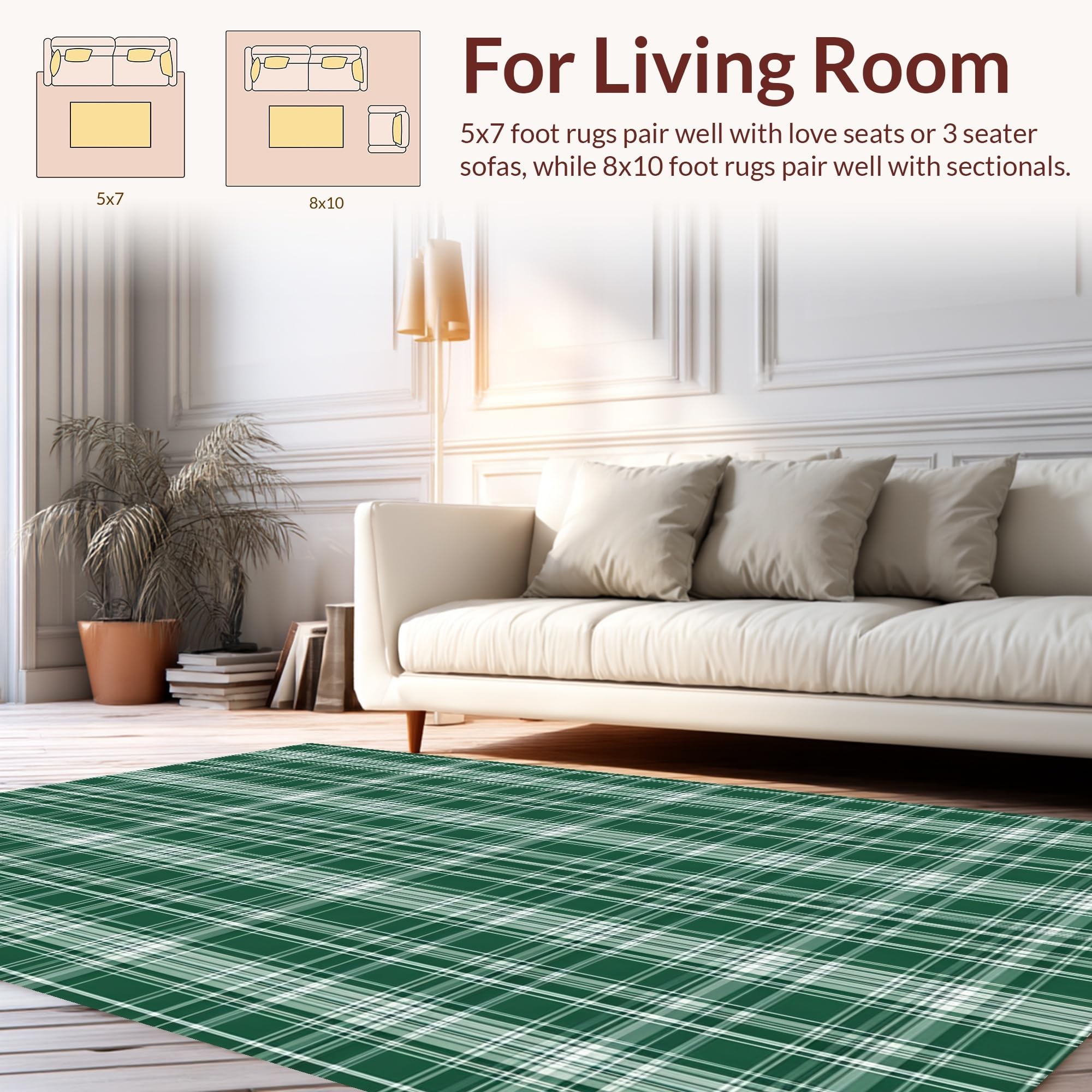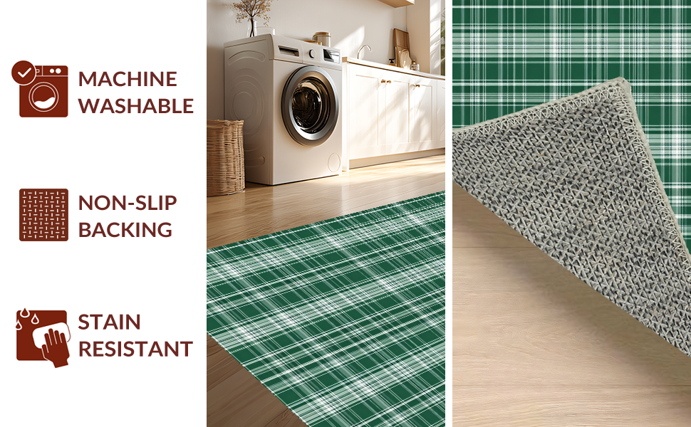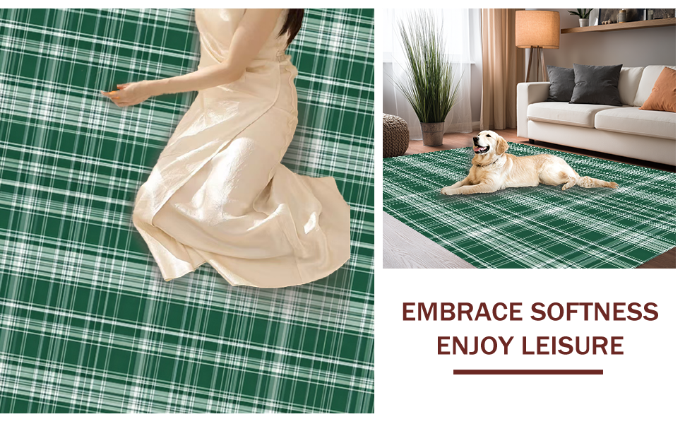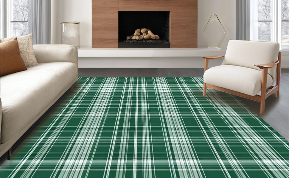 Ultra Soft Area Rug, Non Slip, Stain Resistant, Washable Area Rugs for Living Room, Bedroom, Contemporary Earth Tone Checkered(Green) Overview: