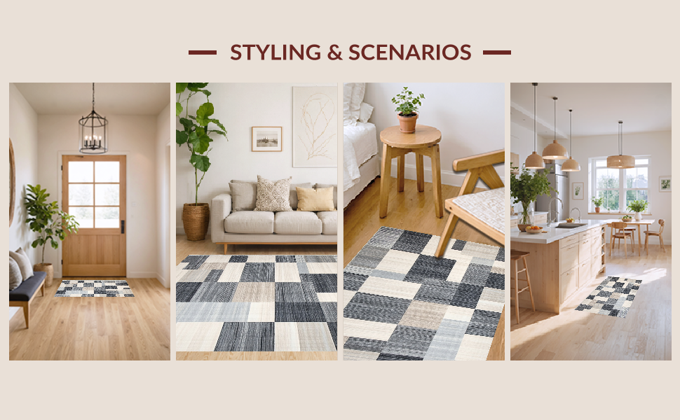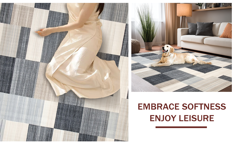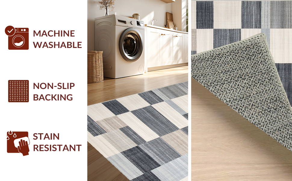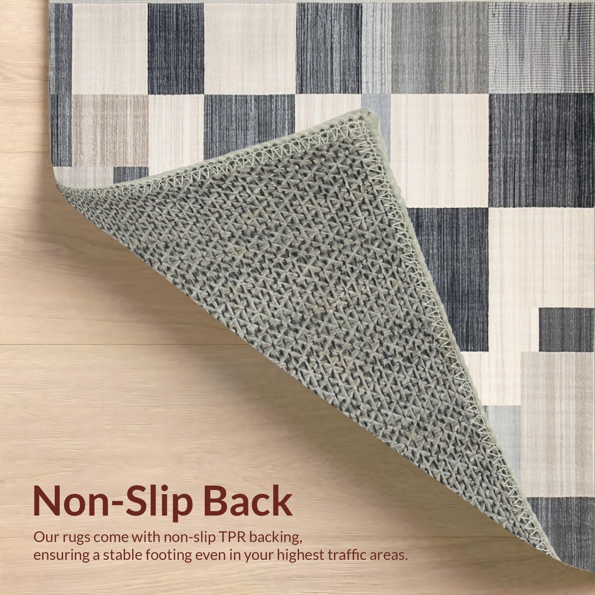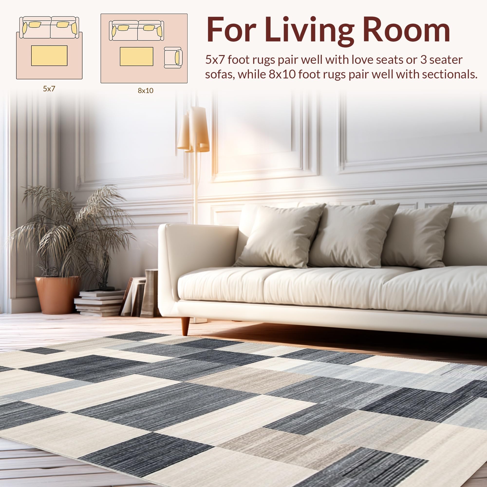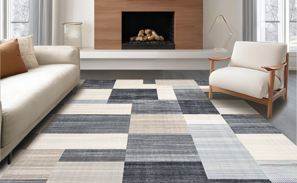 Ultra Soft Area Rug, Non Slip, Stain Resistant, Washable Area Rugs for Living Room, Bedroom, Contemporary Earth Tone Geometric Arrangement(Gray) Overview: