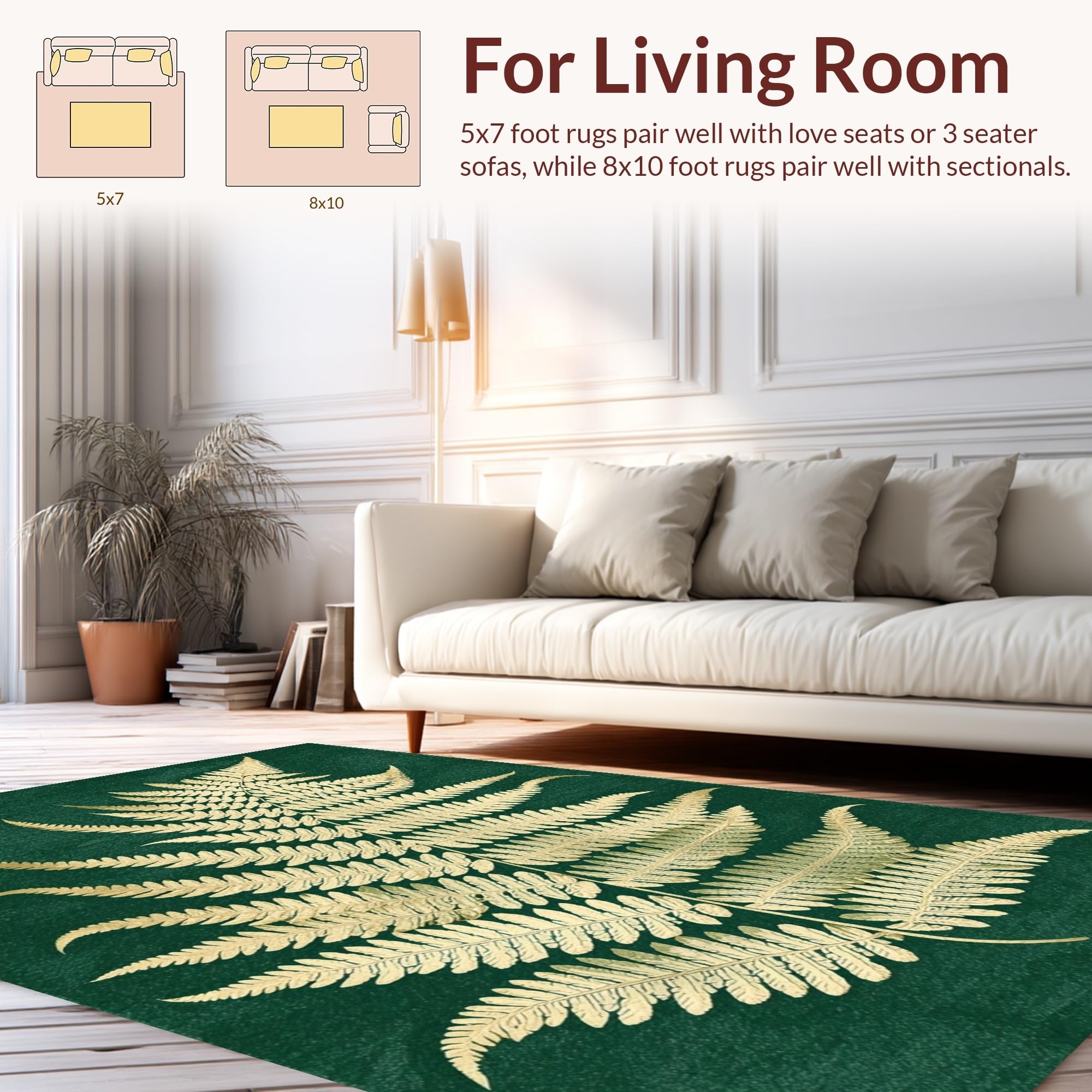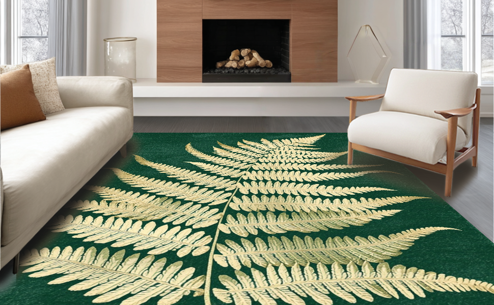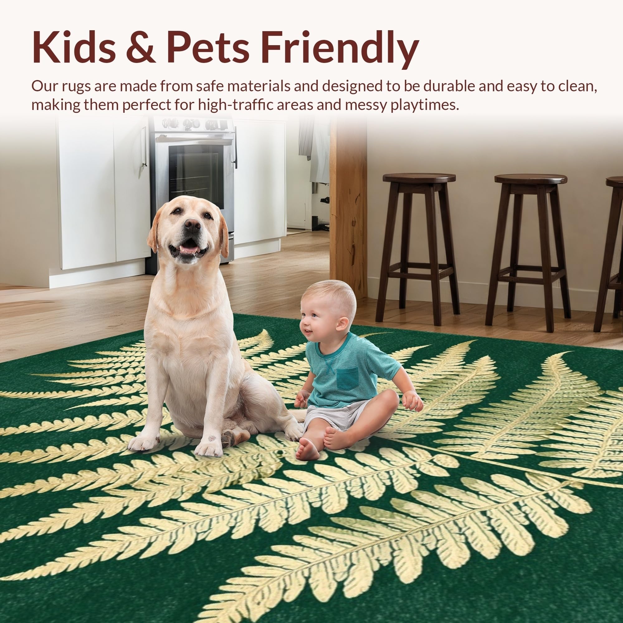 Ultra Soft Area Rug, Non Slip, Stain Resistant, Washable Area Rugs for Living Room, Bedroom, Contemporary Earth Toned Artistry(Green) Overview: