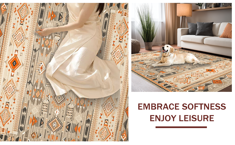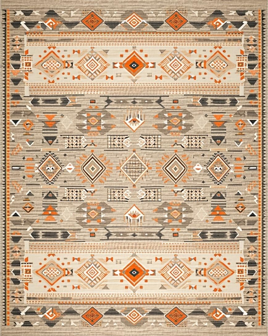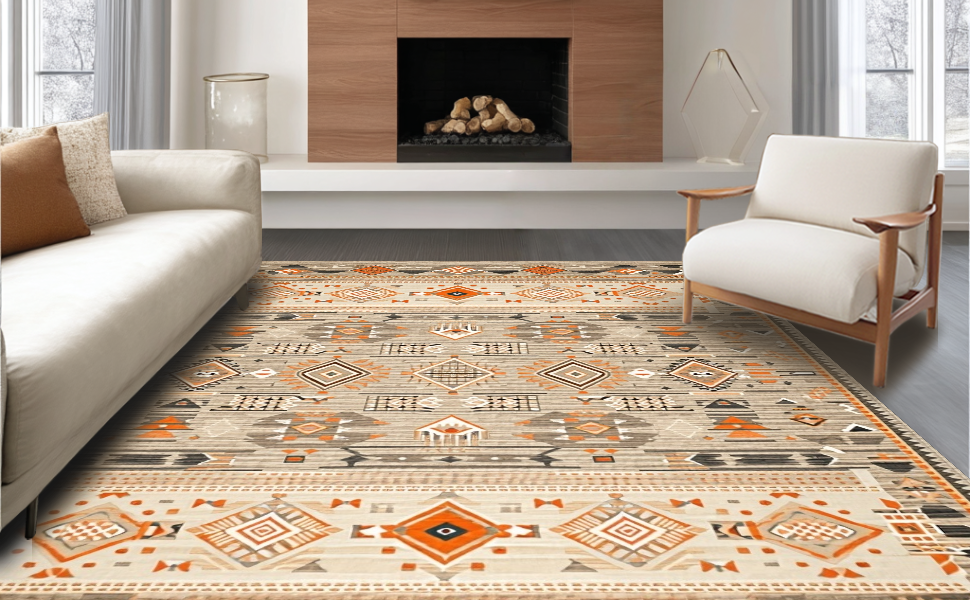 Ultra Soft Area Rug, Non Slip, Stain Resistant, Washable Area Rugs for Living Room, Bedroom, Contemporary Earth Tones Geometric Design(Beige) Overview: