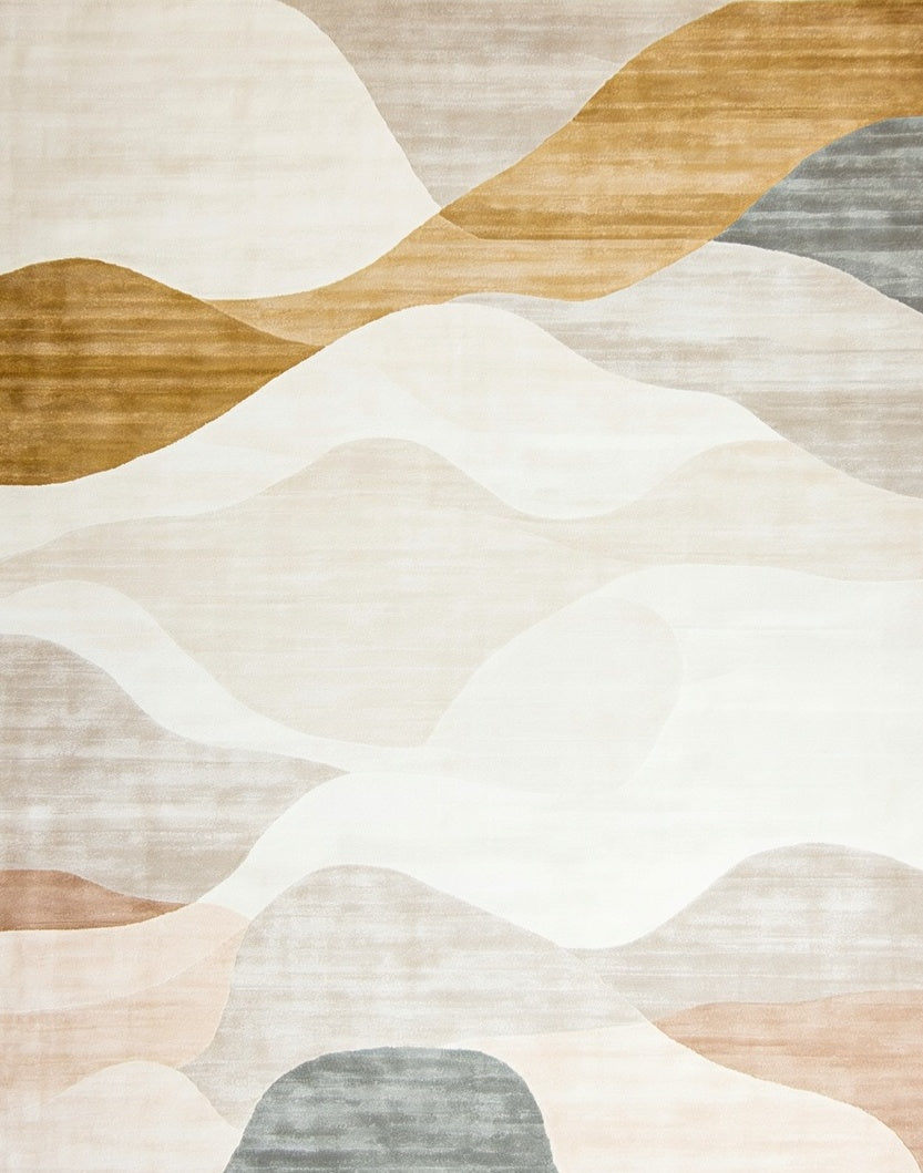 Contemporary Earthy Area with Abstract Wave Motifs and Muted Sand Hues(Beige)