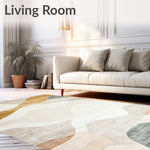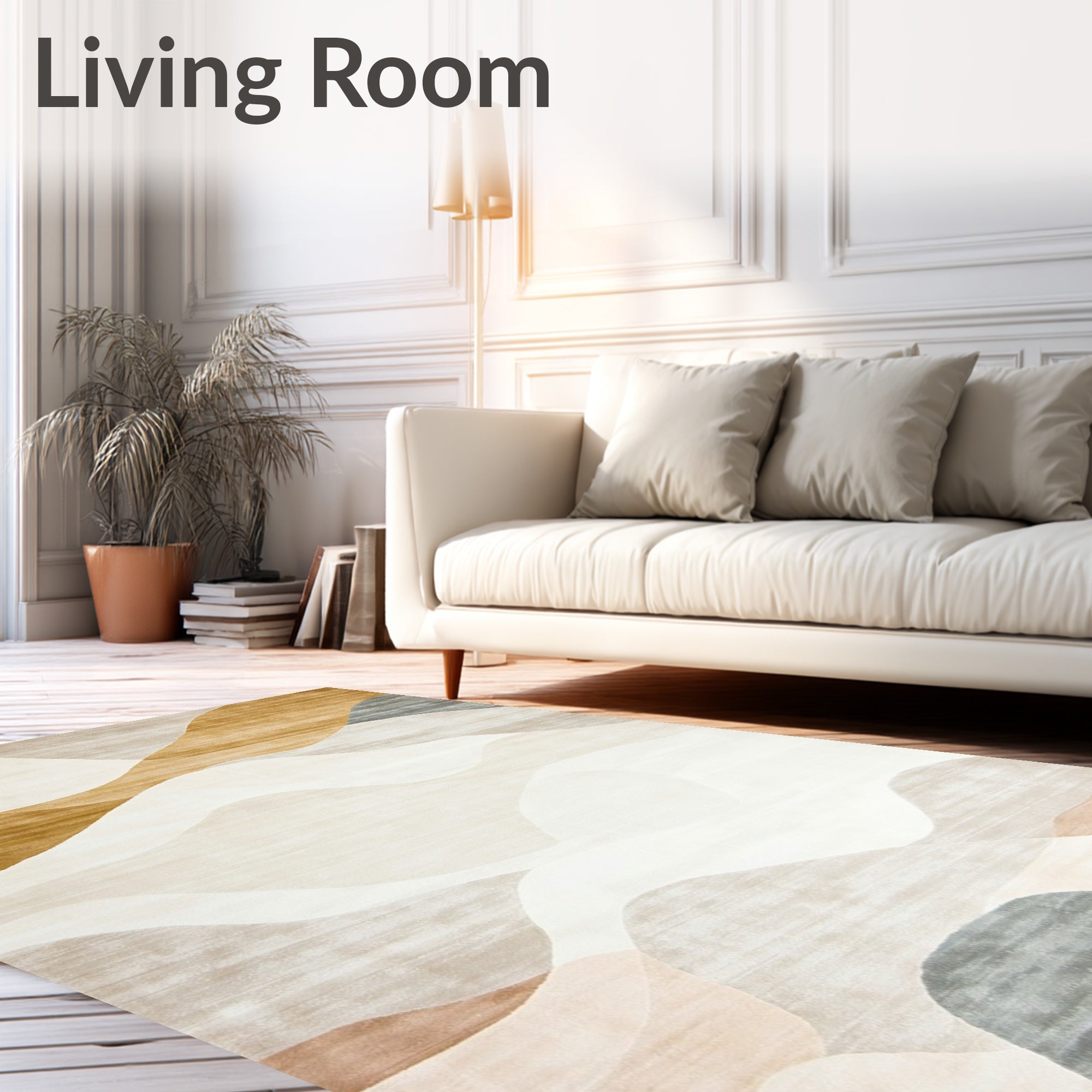 Ultra Soft Area Rug, Non Slip, Stain Resistant, Washable Area Rugs for Living Room, Bedroom, Contemporary Earthy Area with Abstract Wave Motifs and Muted Sand Hues(Beige) Overview: