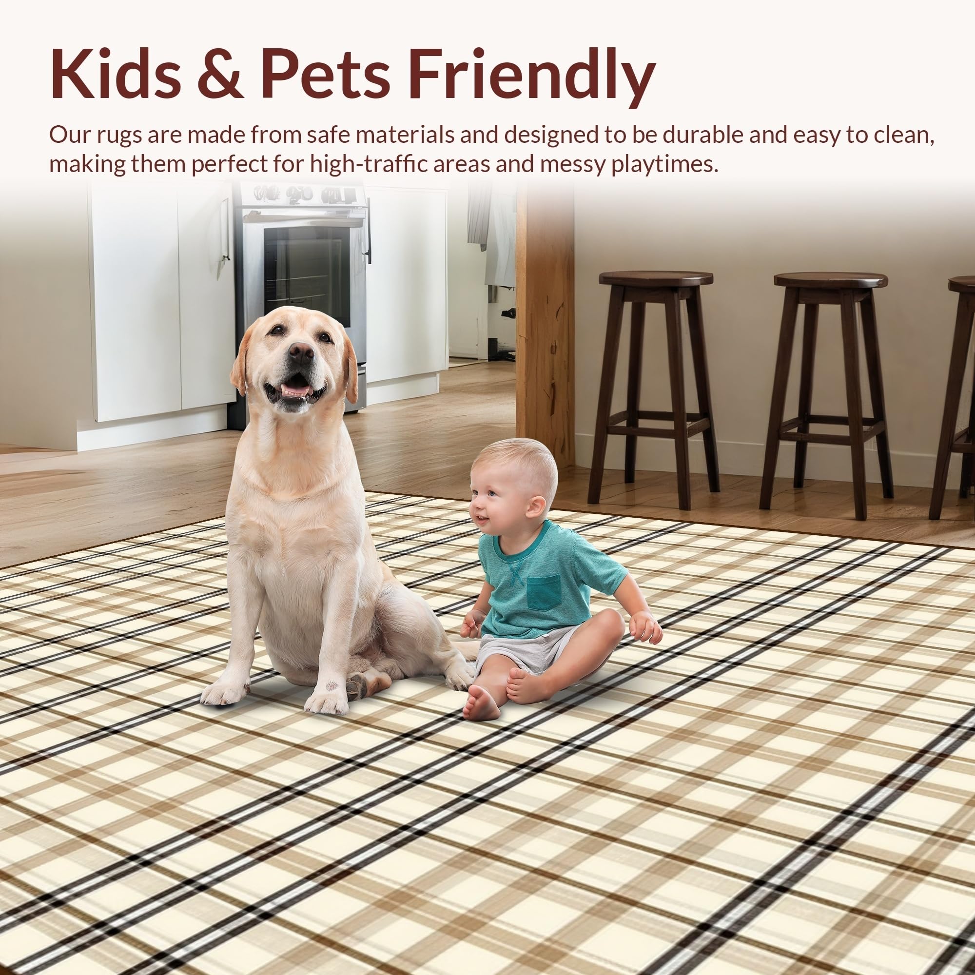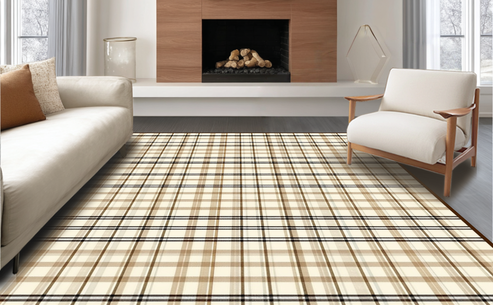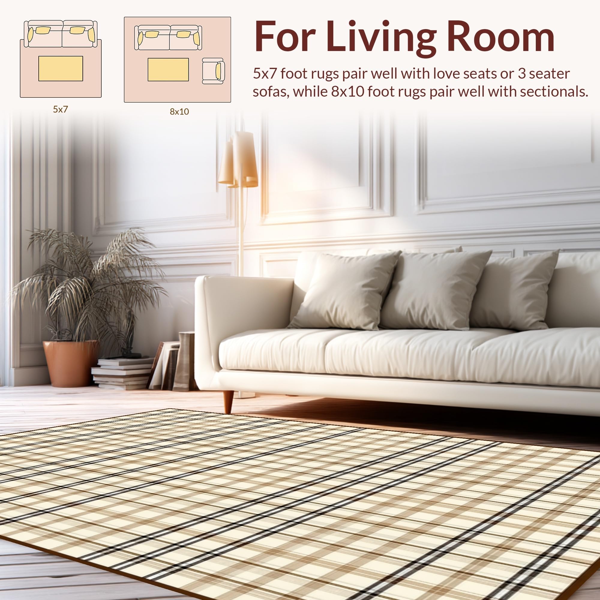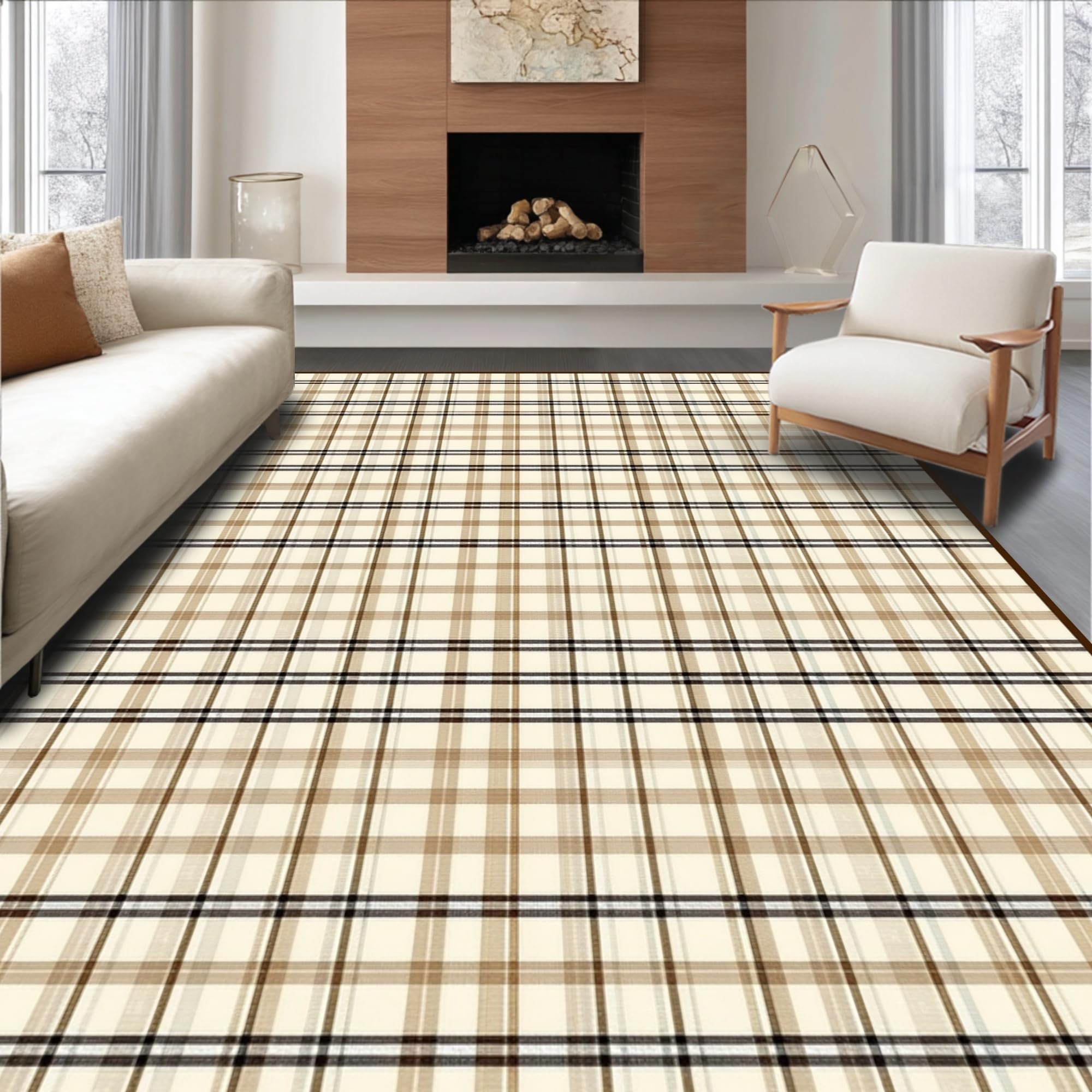 Ultra Soft Area Rug, Non Slip, Stain Resistant, Washable Area Rugs for Living Room, Bedroom, Contemporary Earthy Checkered Aesthetic(Beige) Overview:
