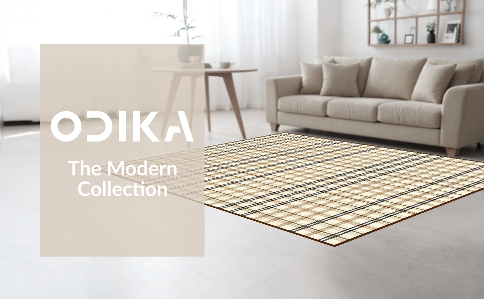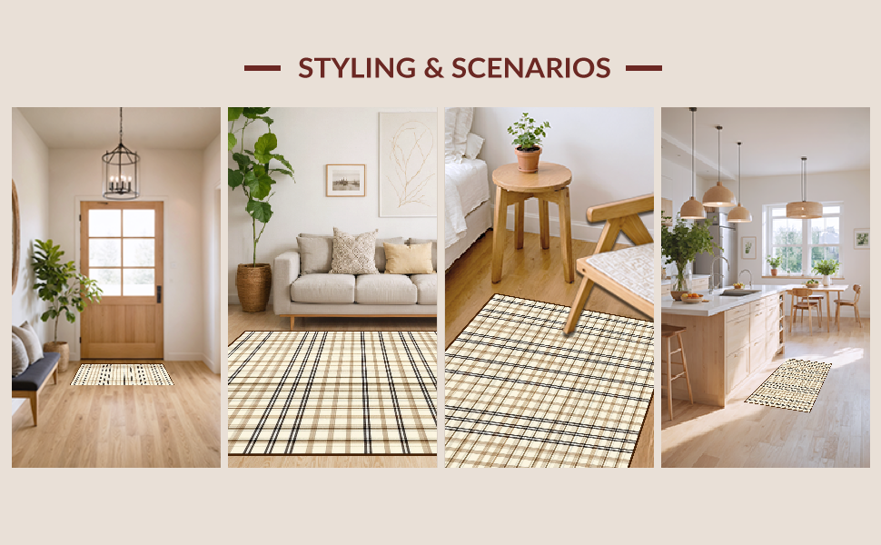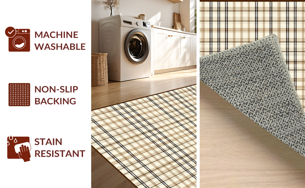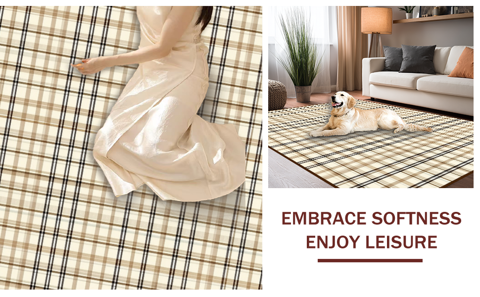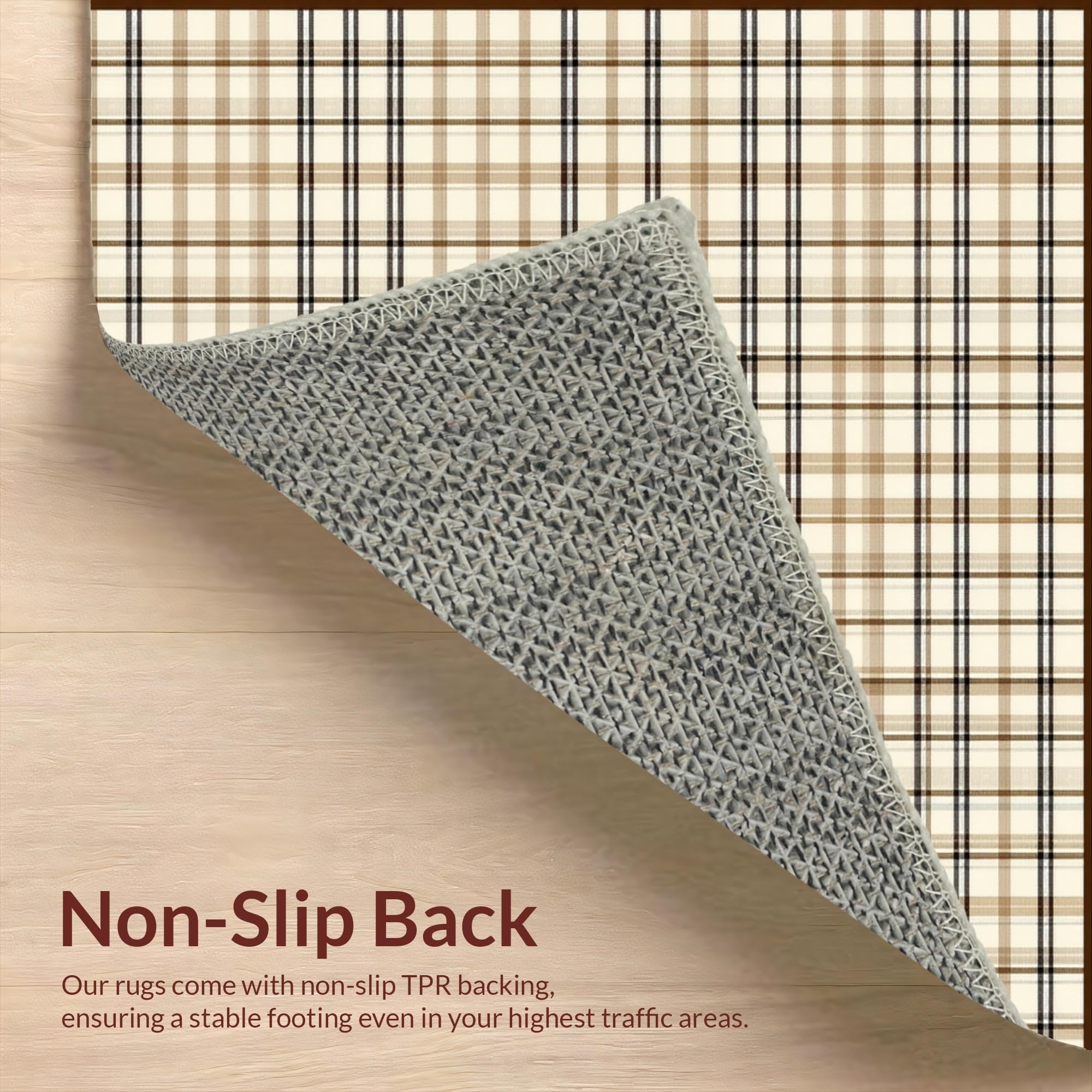 Ultra Soft Area Rug, Non Slip, Stain Resistant, Washable Area Rugs for Living Room, Bedroom, Contemporary Earthy Checkered Aesthetic(Beige) Overview: