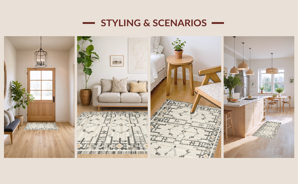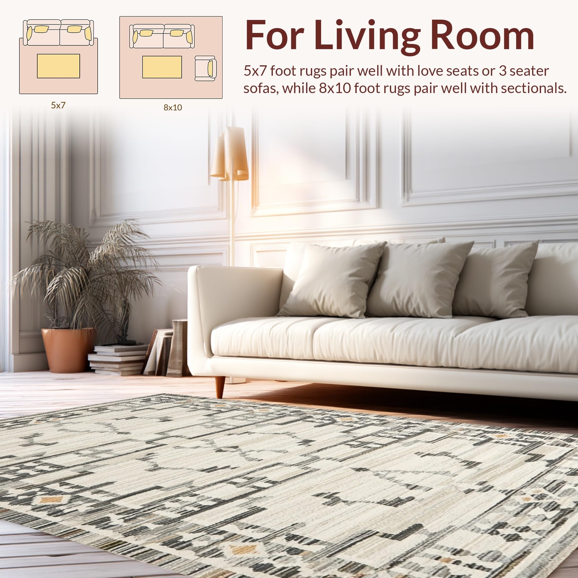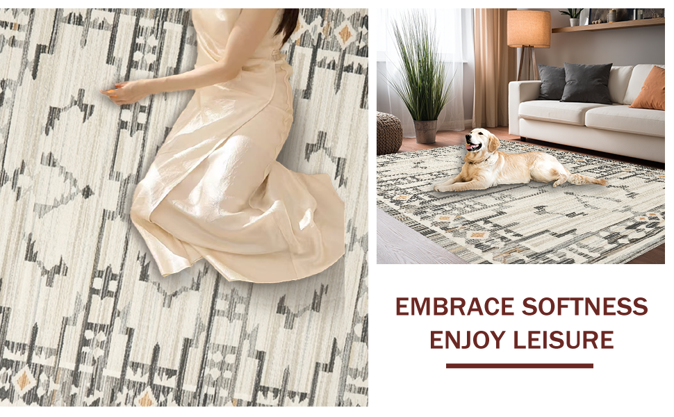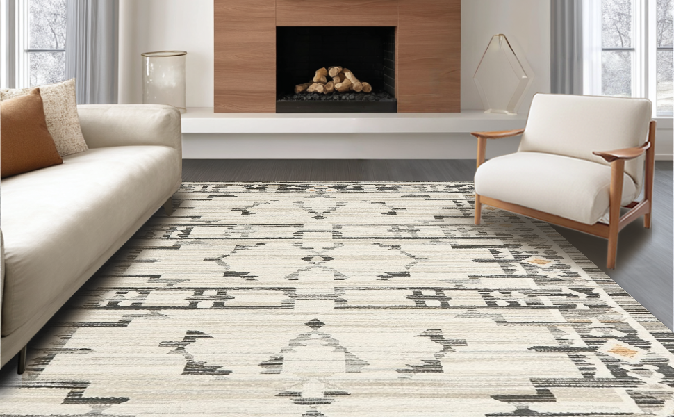 Ultra Soft Area Rug, Non Slip, Stain Resistant, Washable Area Rugs for Living Room, Bedroom, Contemporary Earthy Geometric Aesthetic(Gray) Overview: