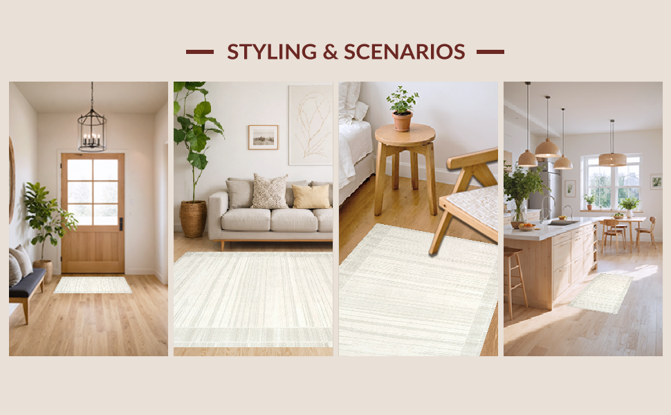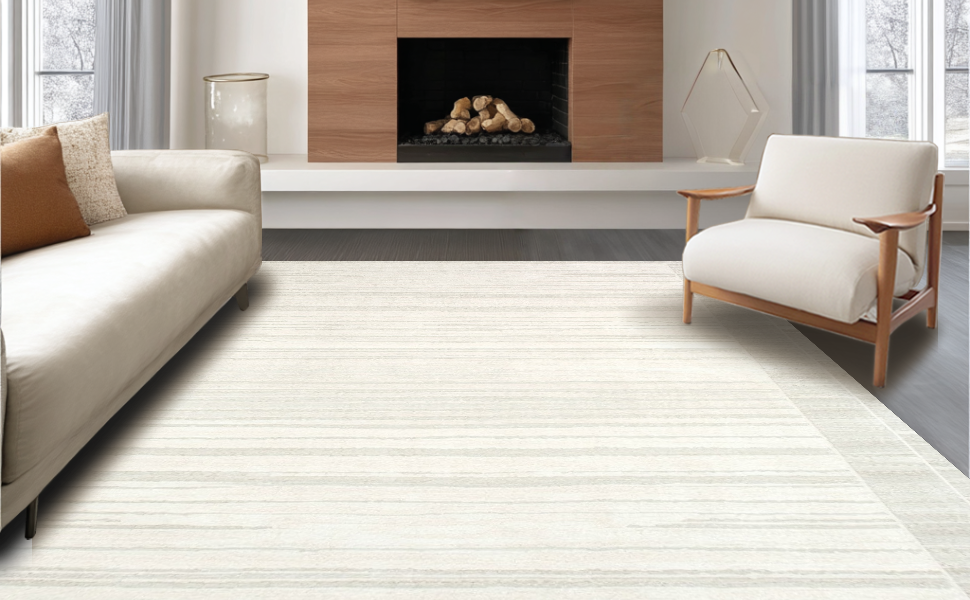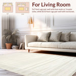 Ultra Soft Area Rug, Non Slip, Stain Resistant, Washable Area Rugs for Living Room, Bedroom, Contemporary Earthy Linear Aesthetics(Beige) Overview: