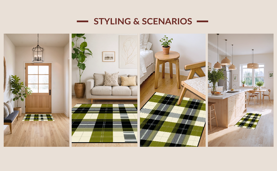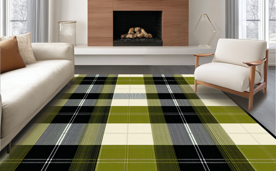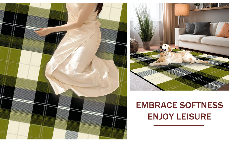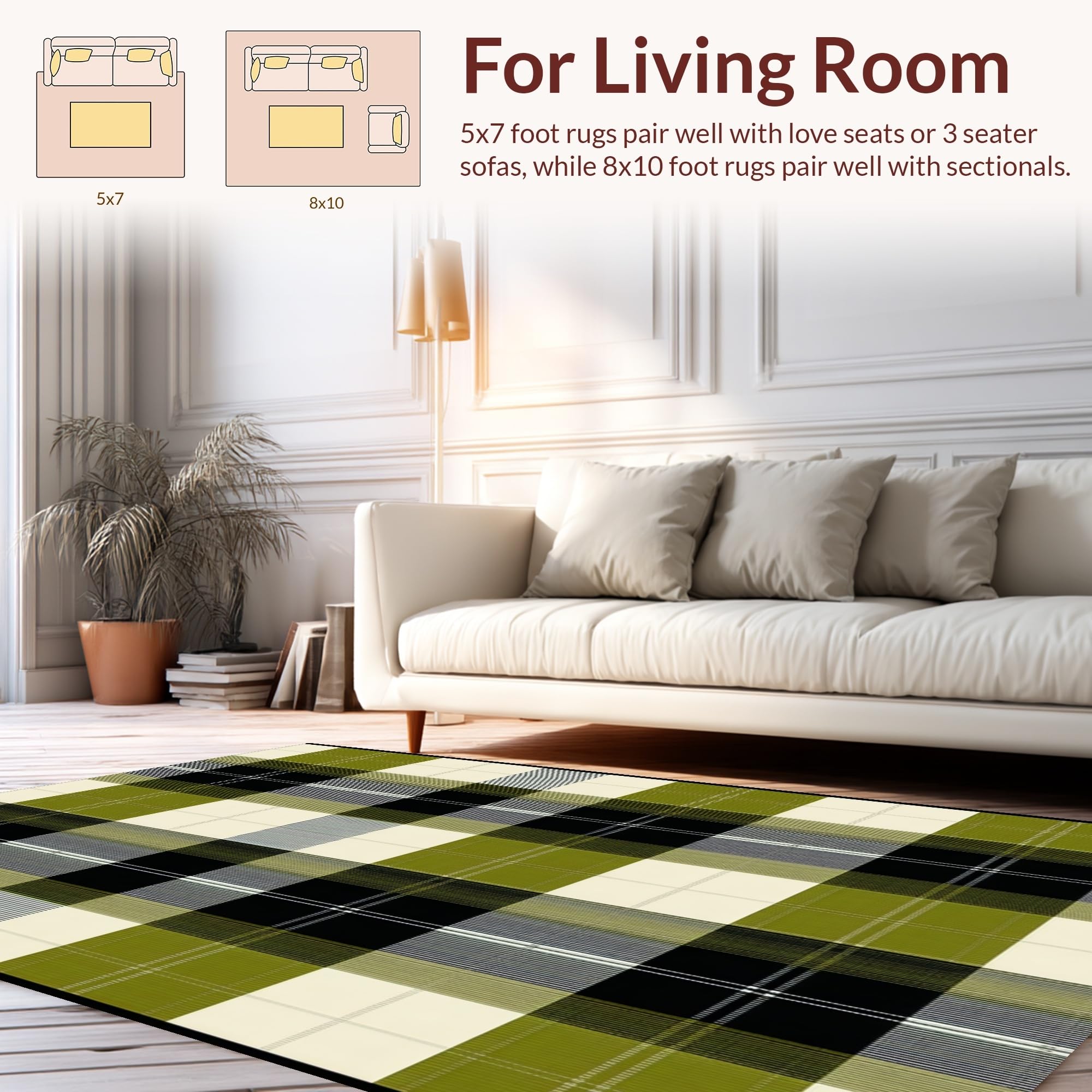 Ultra Soft Area Rug, Non Slip, Stain Resistant, Washable Area Rugs for Living Room, Bedroom, Contemporary Earthy Plaid Charm(Beige) Overview:
