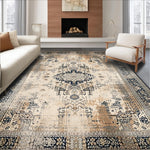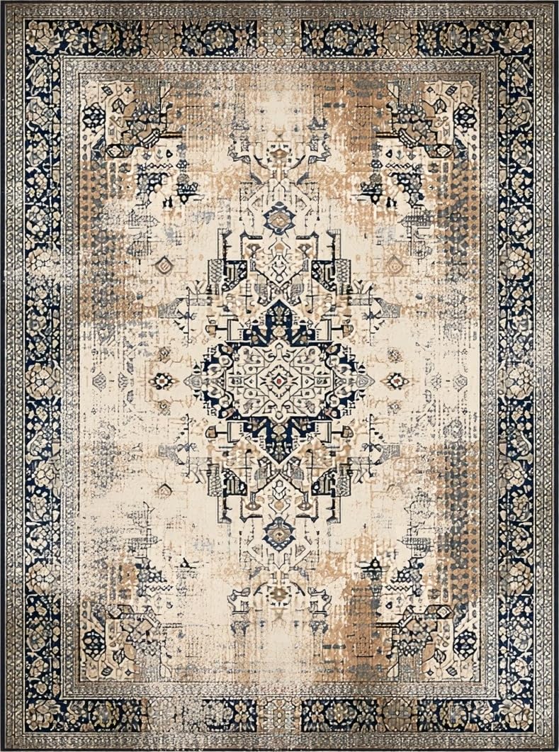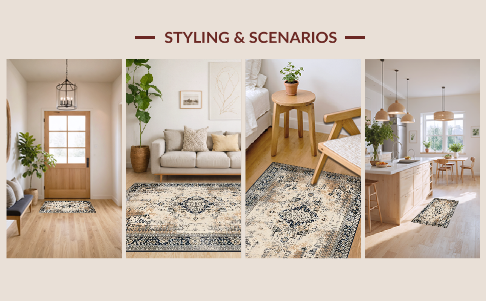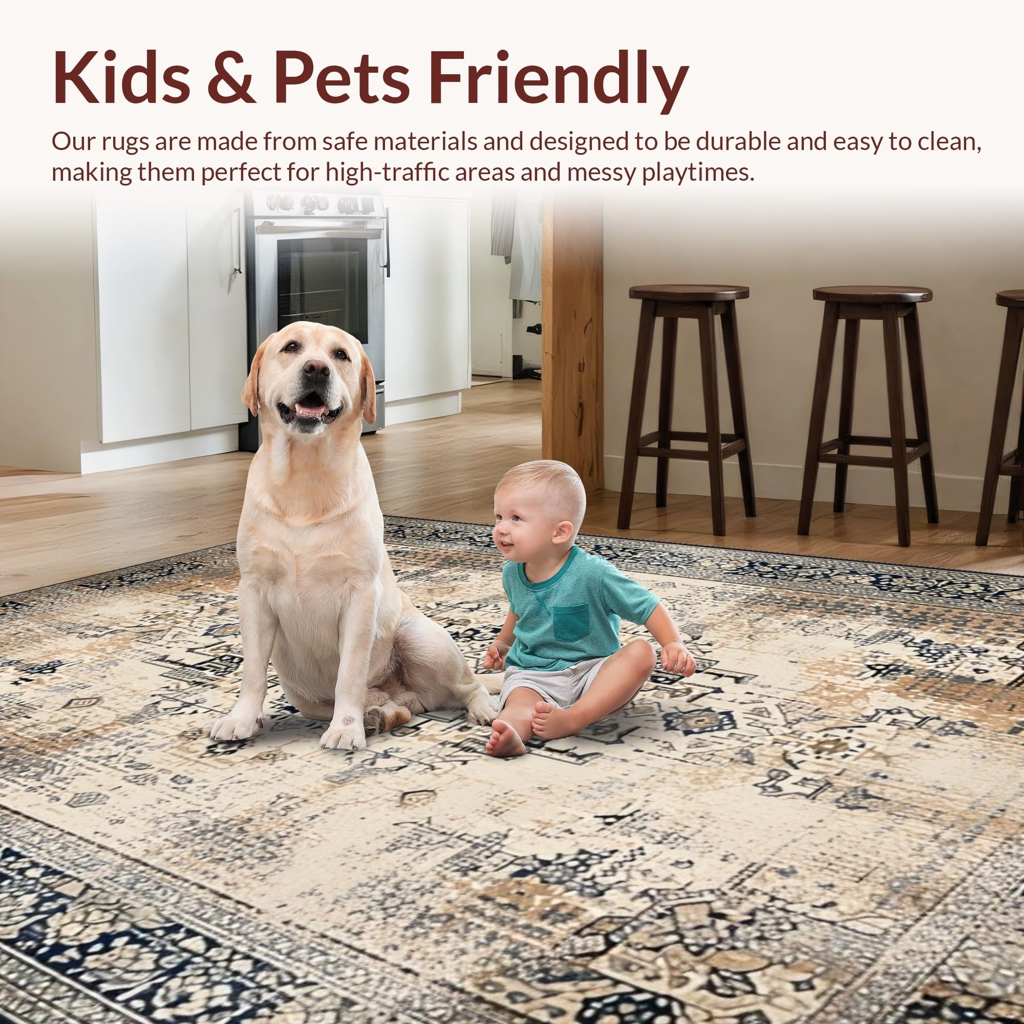 Ultra Soft Area Rug, Non Slip, Stain Resistant, Washable Area Rugs for Living Room, Bedroom, Contemporary Earthy Striped Elements(Beige) Overview:
