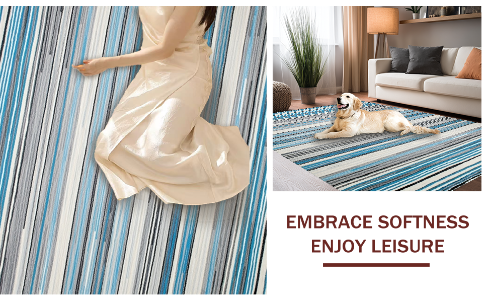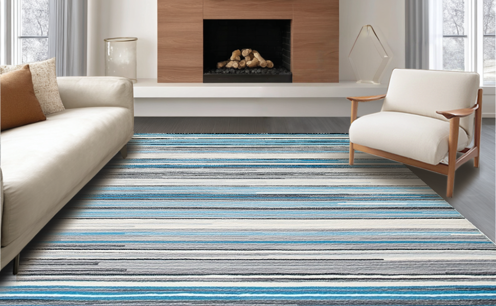 Ultra Soft Area Rug, Non Slip, Stain Resistant, Washable Area Rugs for Living Room, Bedroom, Contemporary Earthy Textured Design(Blue) Overview: