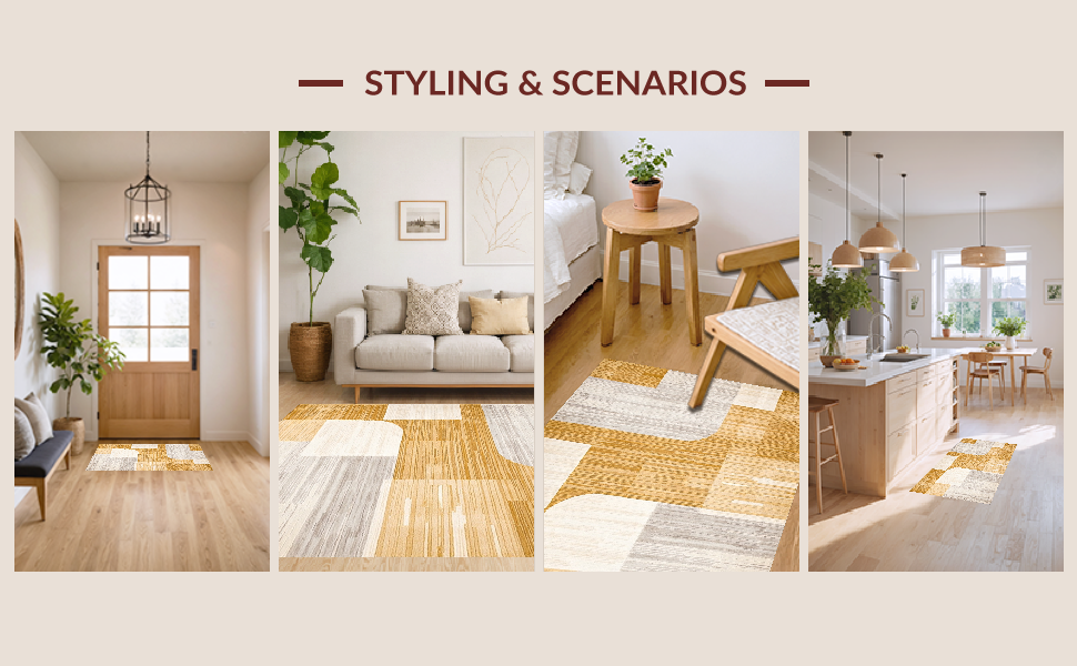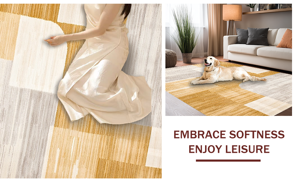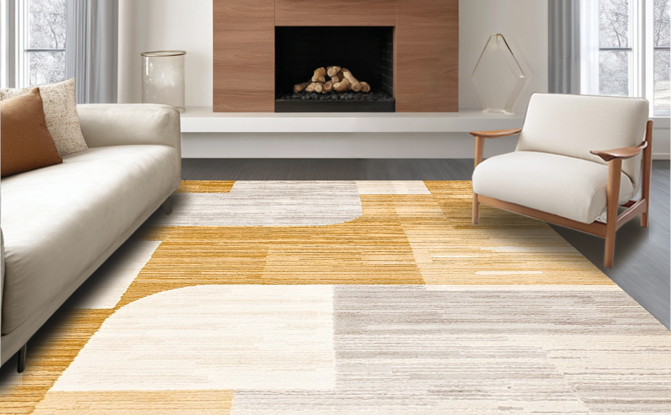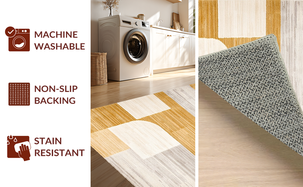 Ultra Soft Area Rug, Non Slip, Stain Resistant, Washable Area Rugs for Living Room, Bedroom, Contemporary Earthy Tone Design(Beige) Overview: