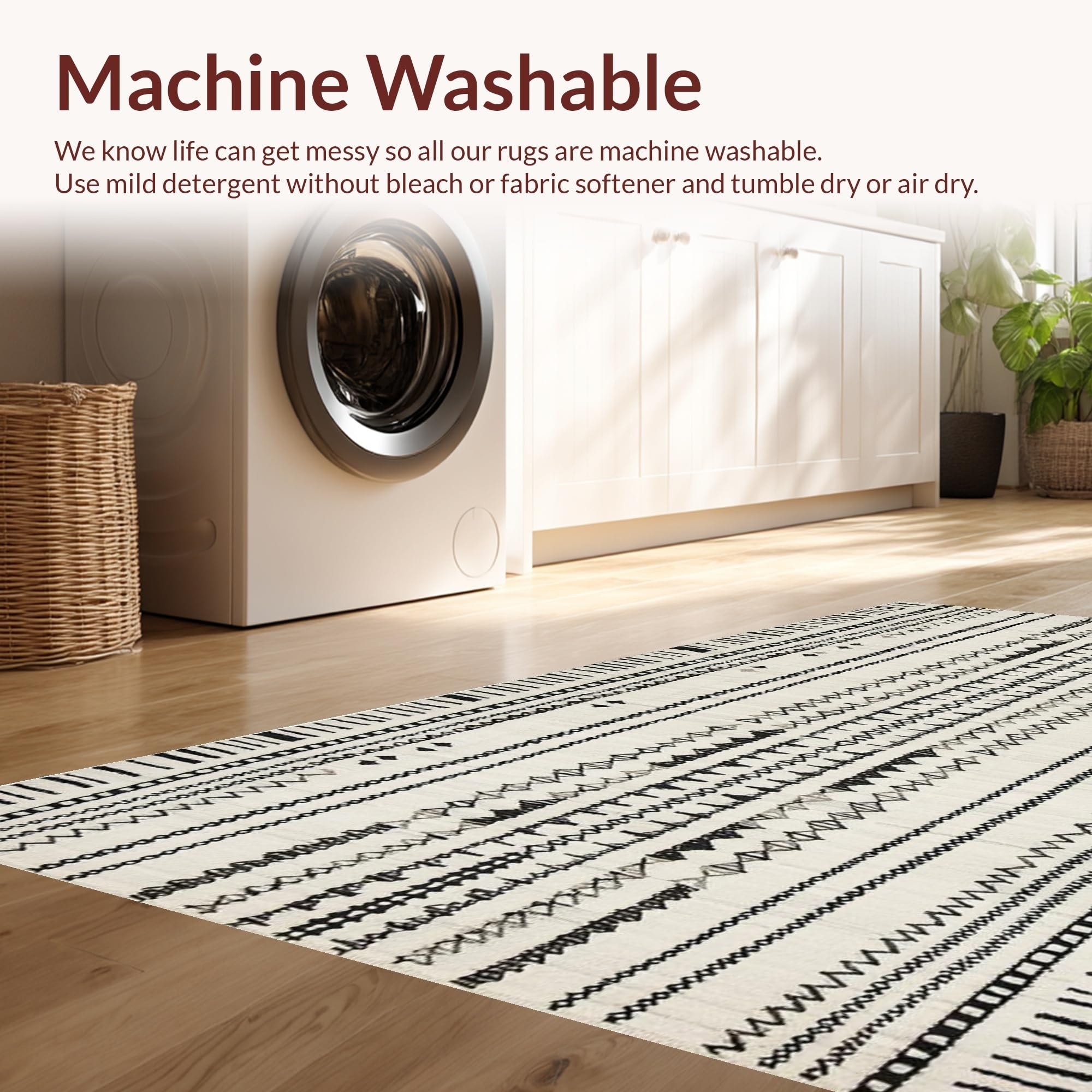 - Machine Washable: Our rugs can be easily thrown in the wash machine.