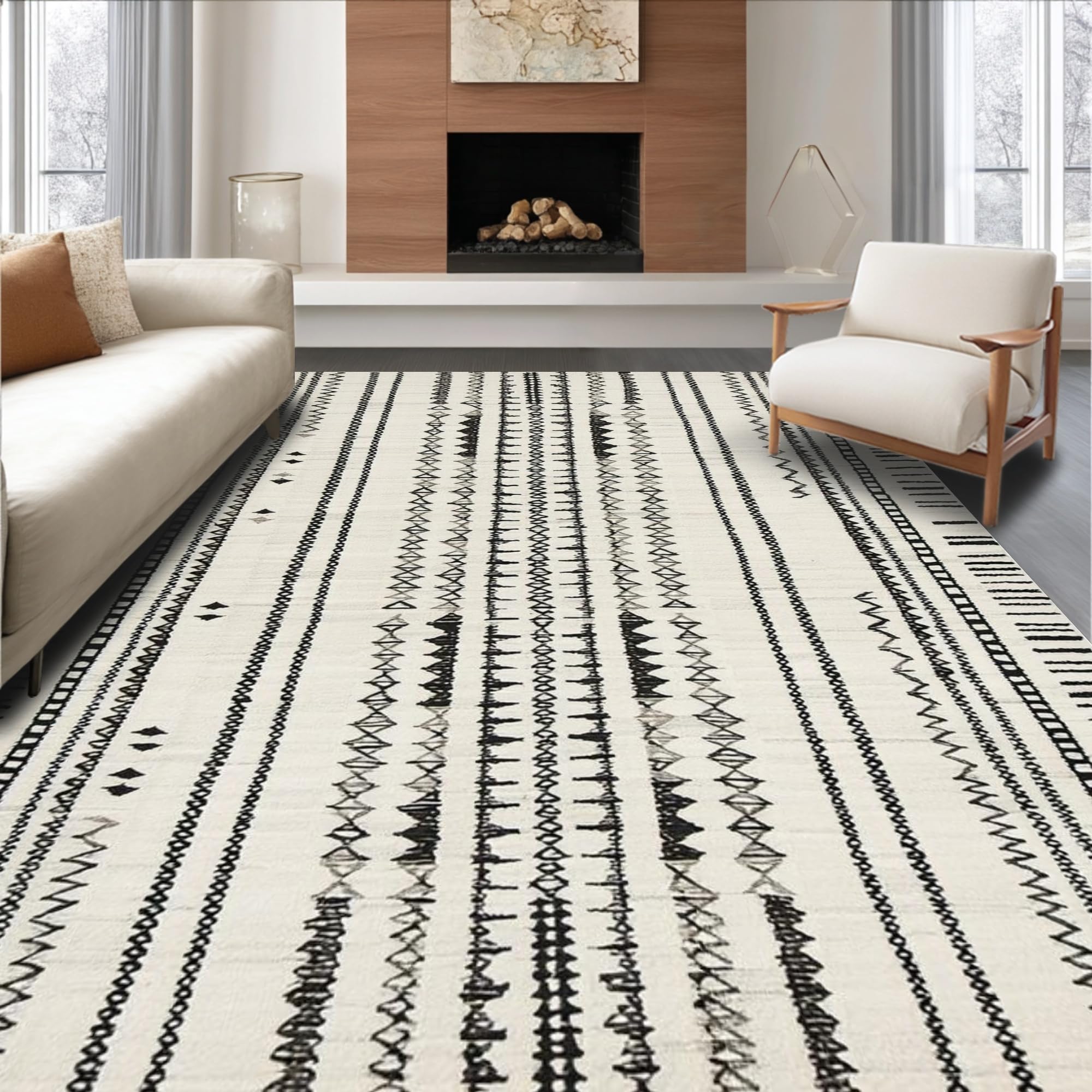 Ultra Soft Area Rug, Non Slip, Stain Resistant, Washable Area Rugs for Living Room, Bedroom, Contemporary Earthy Toned Lines(Gray) Overview: