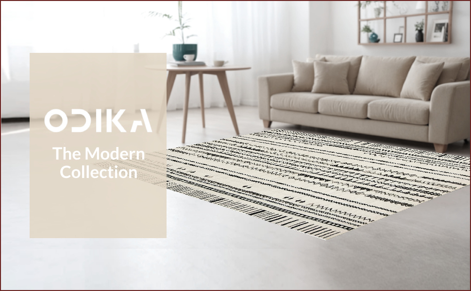 - Modern, artistic: Add a piece of modern charm from ODIKA to your bedroom collection. Designed with the art of minimalism, this rug is sure to provide your bedroom with coziness.