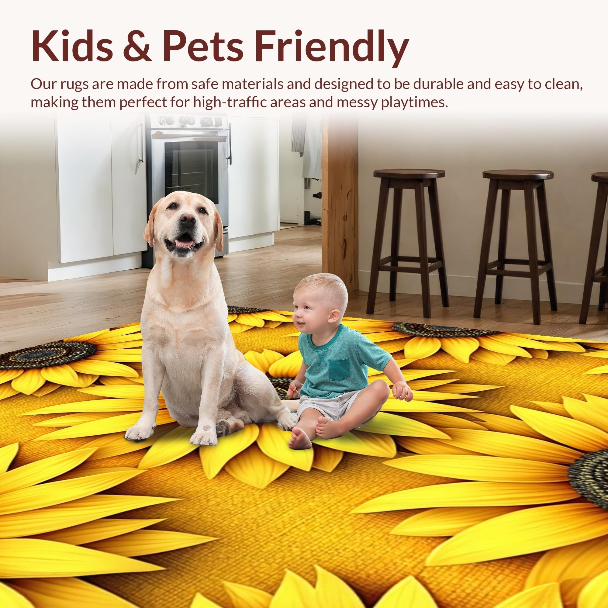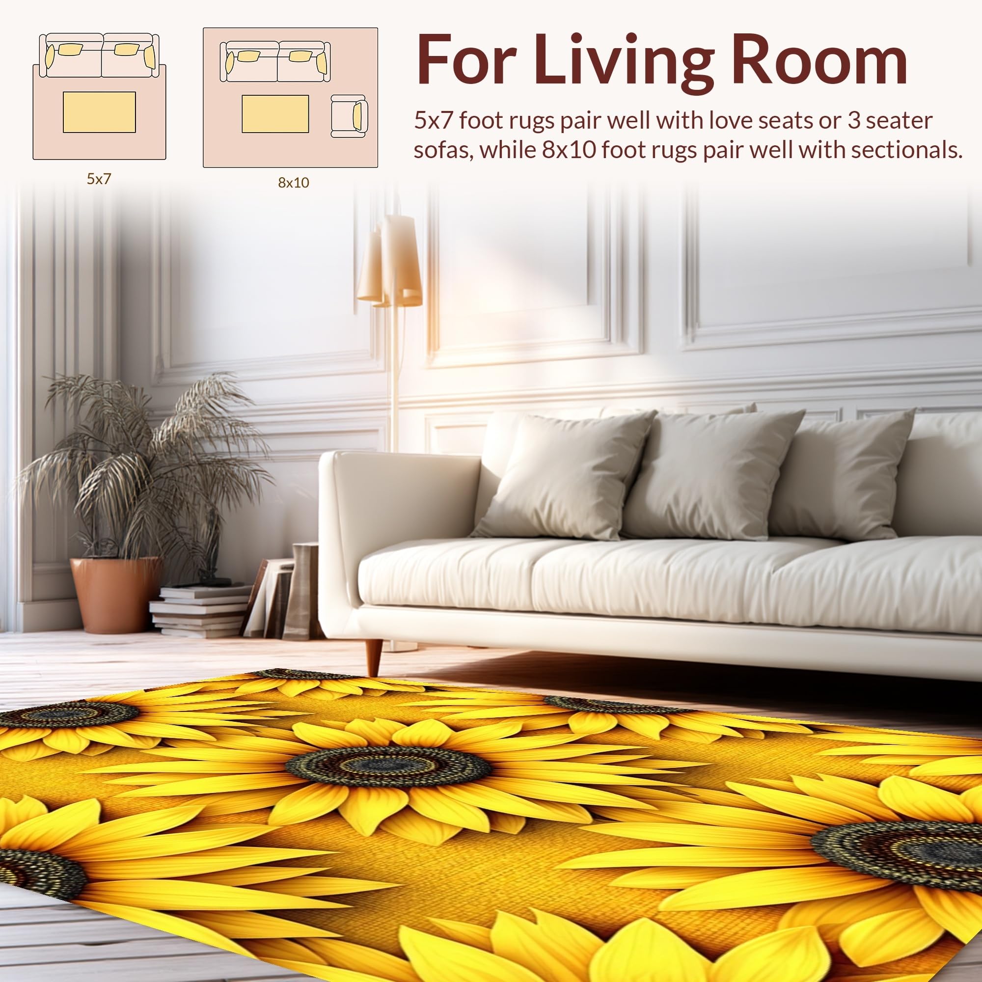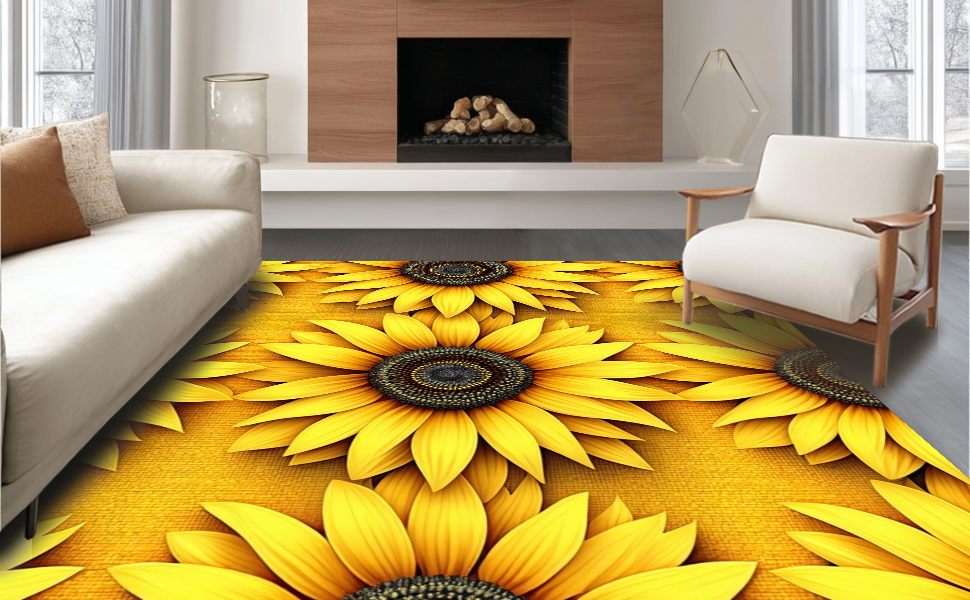 Ultra Soft Area Rug, Non Slip, Stain Resistant, Washable Area Rugs for Living Room, Bedroom, Contemporary Elegant Floral Arrangement(Yellow) Overview: