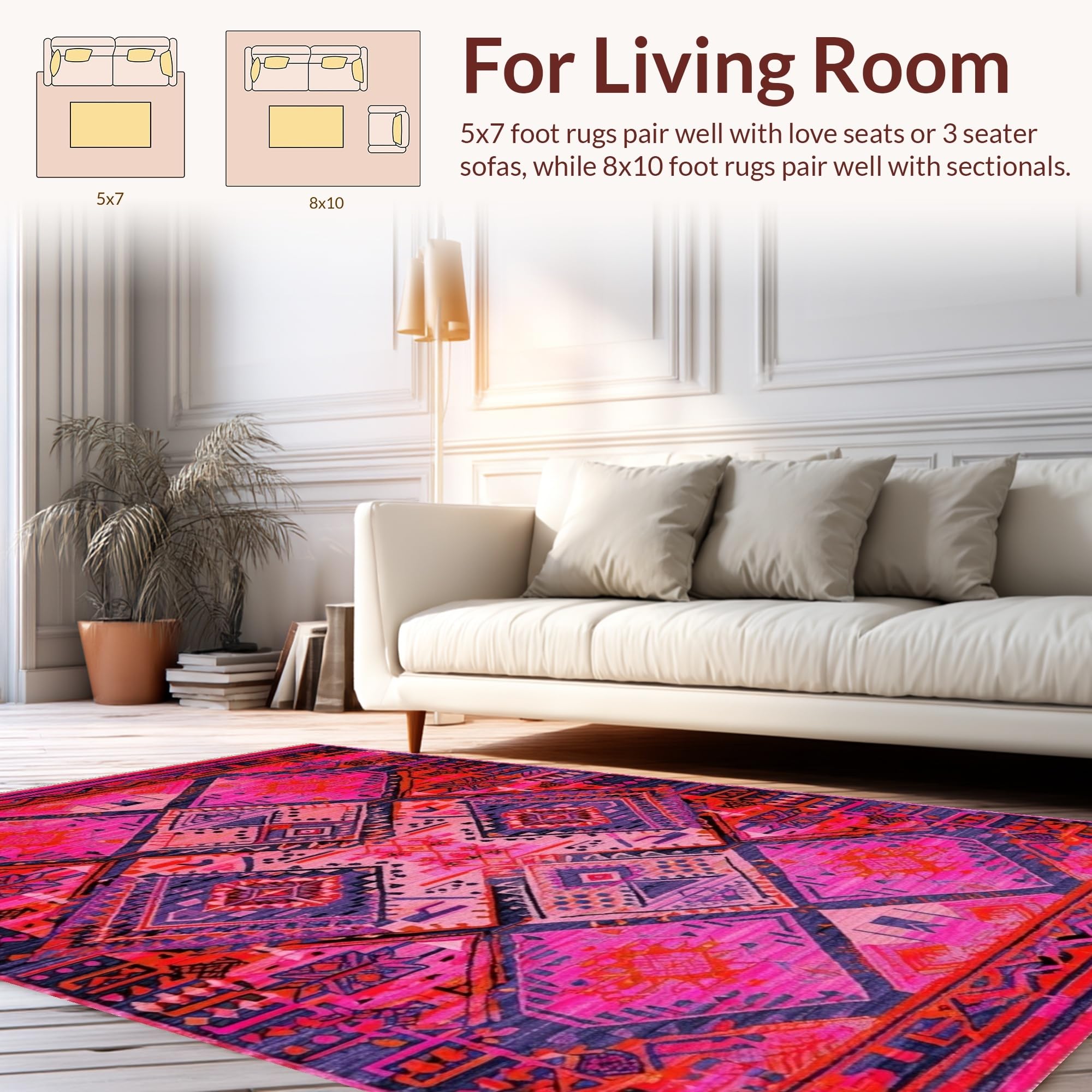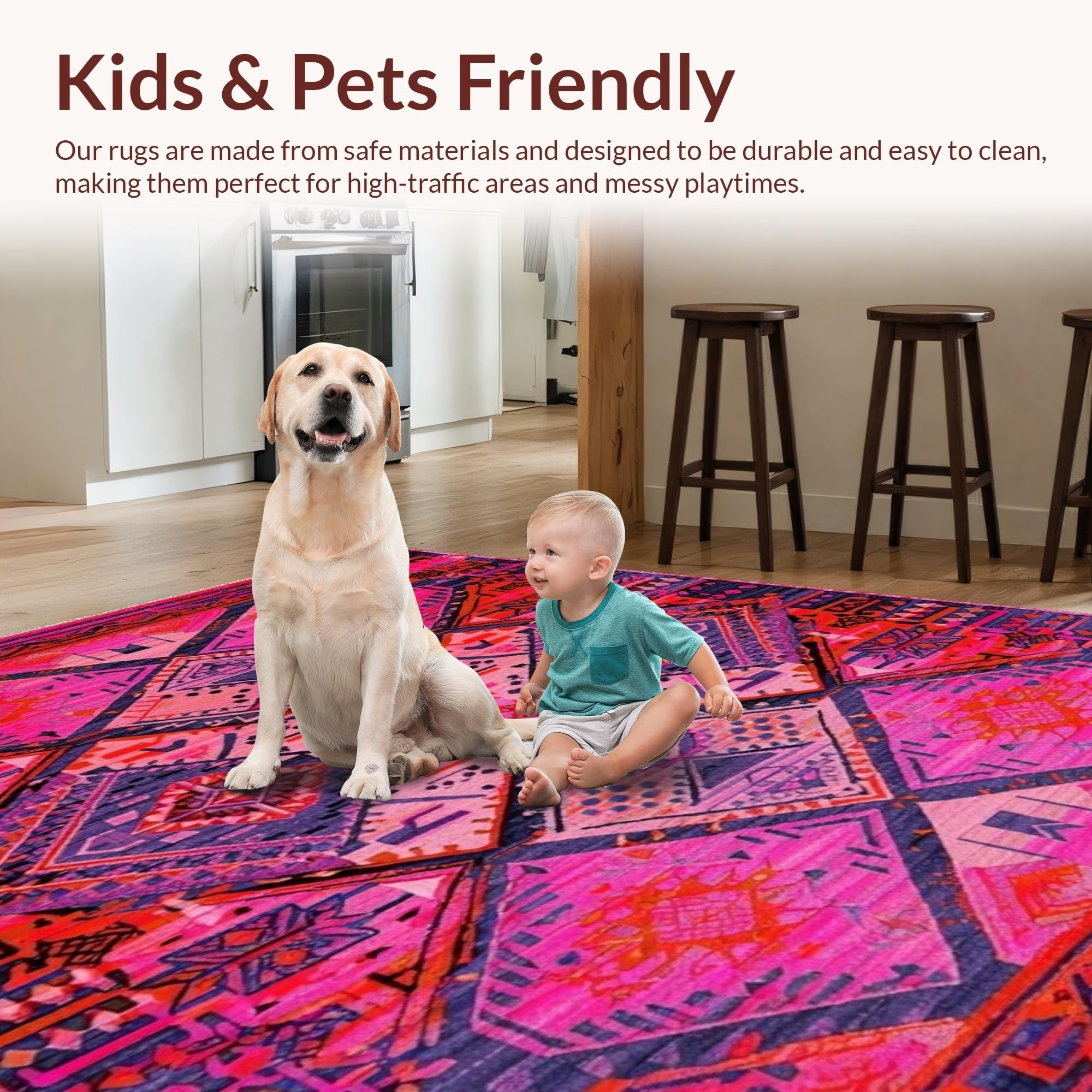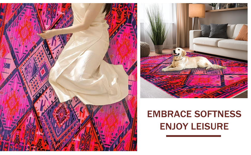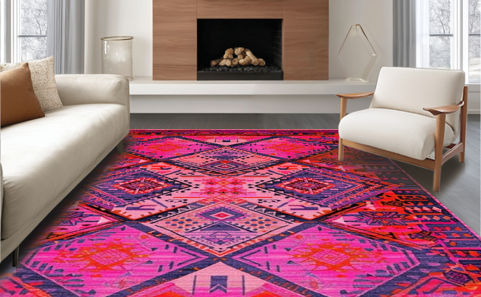 Ultra Soft Area Rug, Non Slip, Stain Resistant, Washable Area Rugs for Living Room, Bedroom, Contemporary Elegant Striped Composition(Pink) Overview: