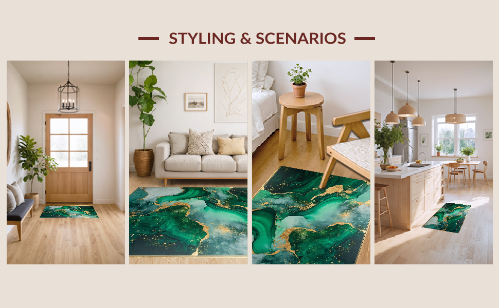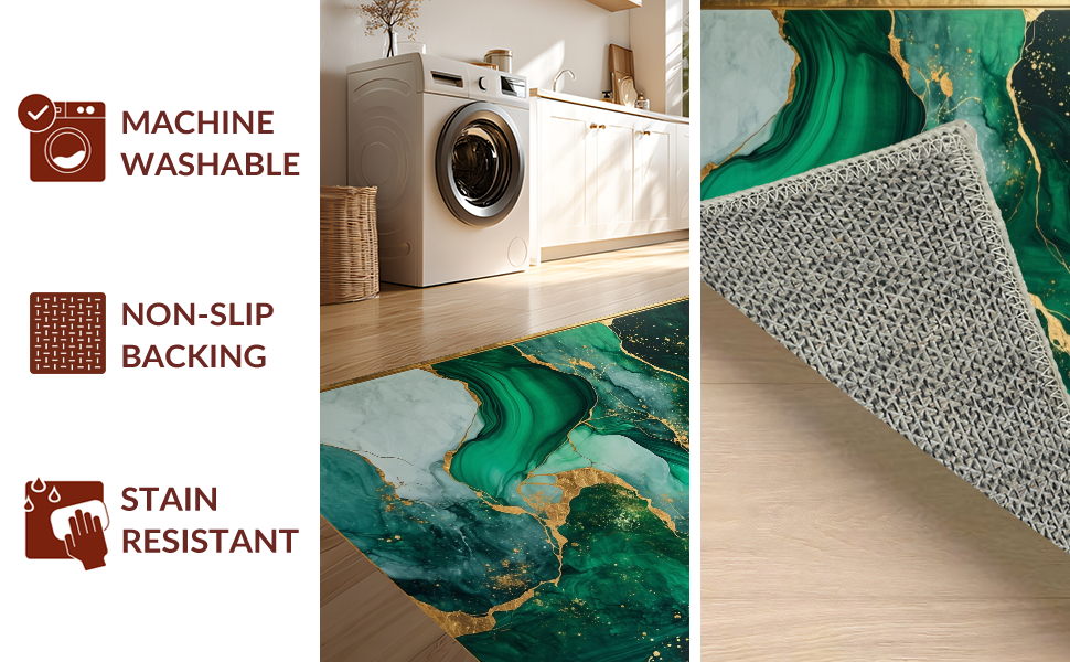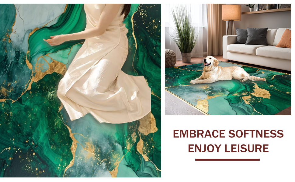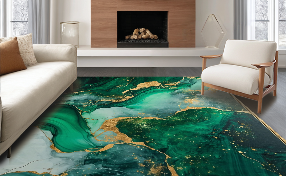 Ultra Soft Area Rug, Non Slip, Stain Resistant, Washable Area Rugs for Living Room, Bedroom, Contemporary Emerald Elegance Pattern(Green) Overview: