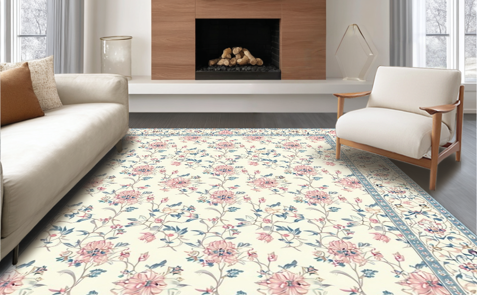 Ultra Soft Area Rug, Non Slip, Stain Resistant, Washable Area Rugs for Living Room, Bedroom, Contemporary Ethereal Trellis Style(Ivory) Overview: