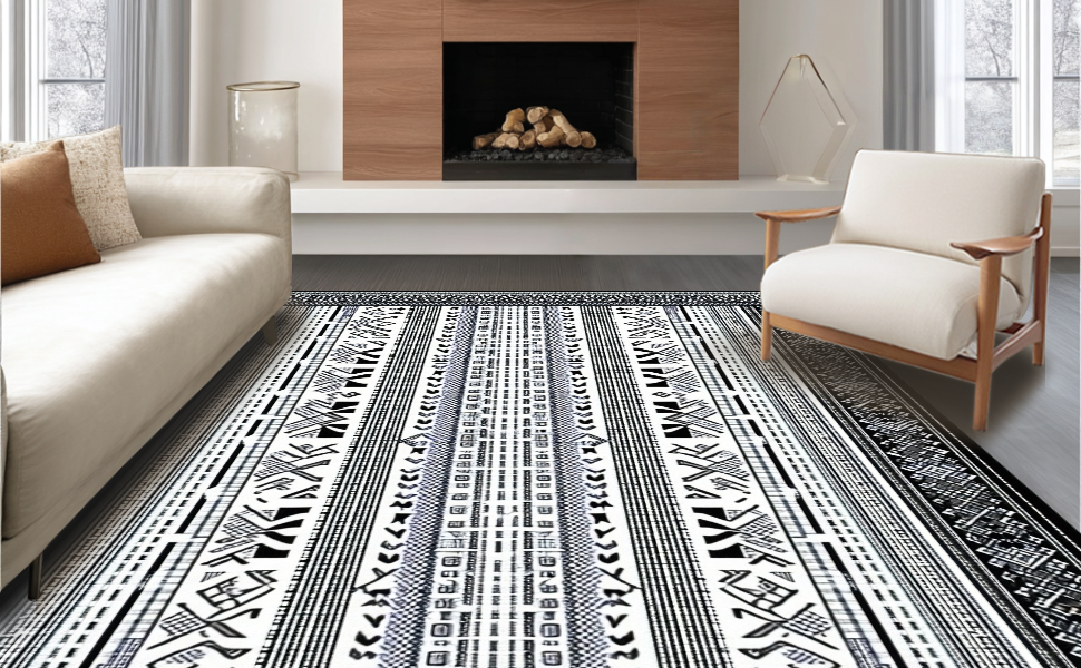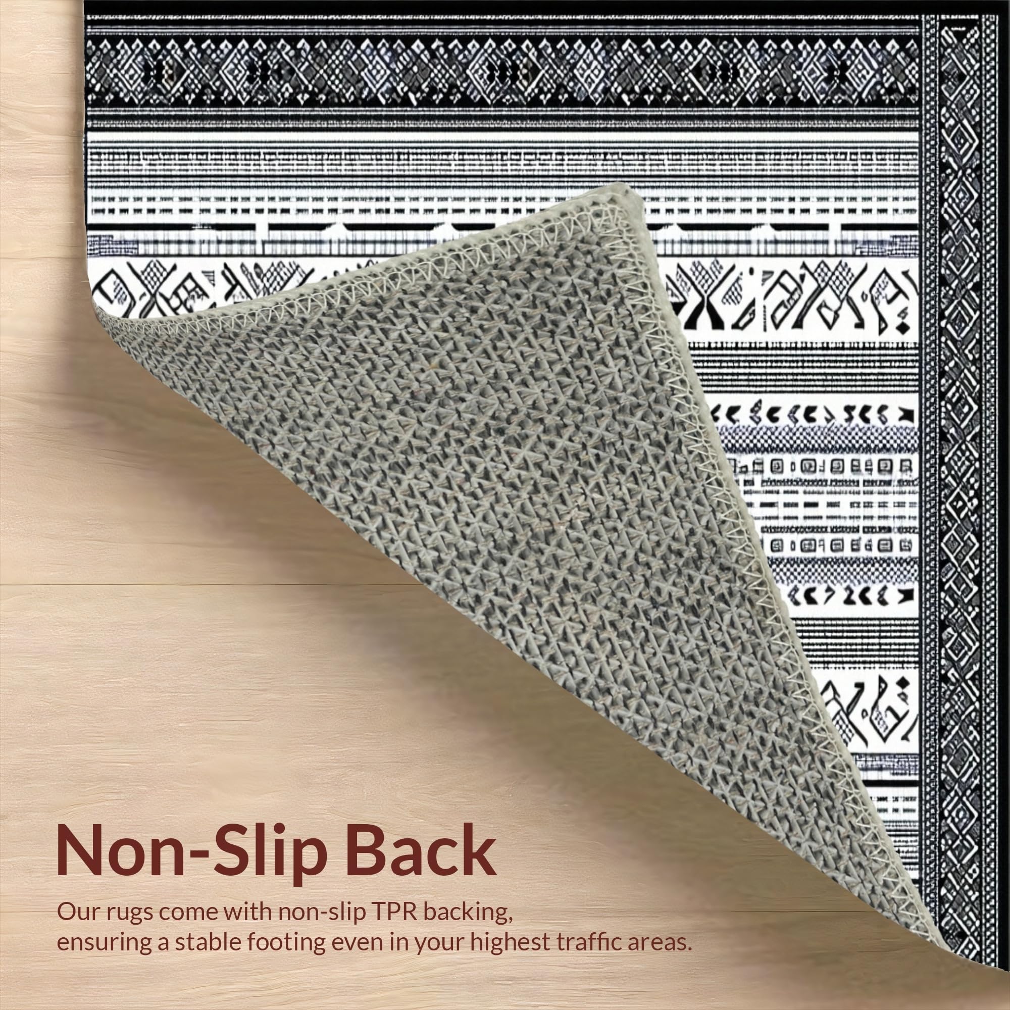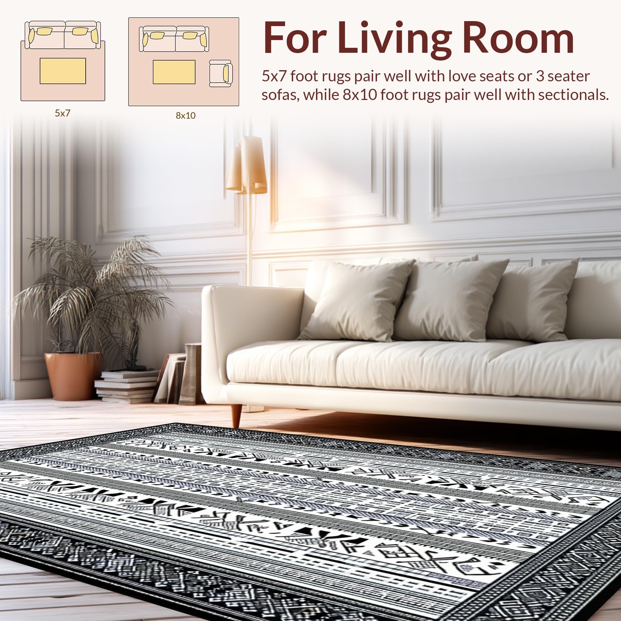 Ultra Soft Area Rug, Non Slip, Stain Resistant, Washable Area Rugs for Living Room, Bedroom, Contemporary Ethnic Textured Accent(Black) Overview: