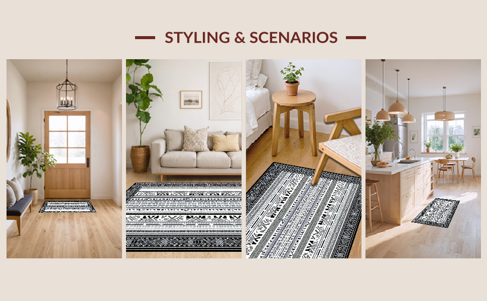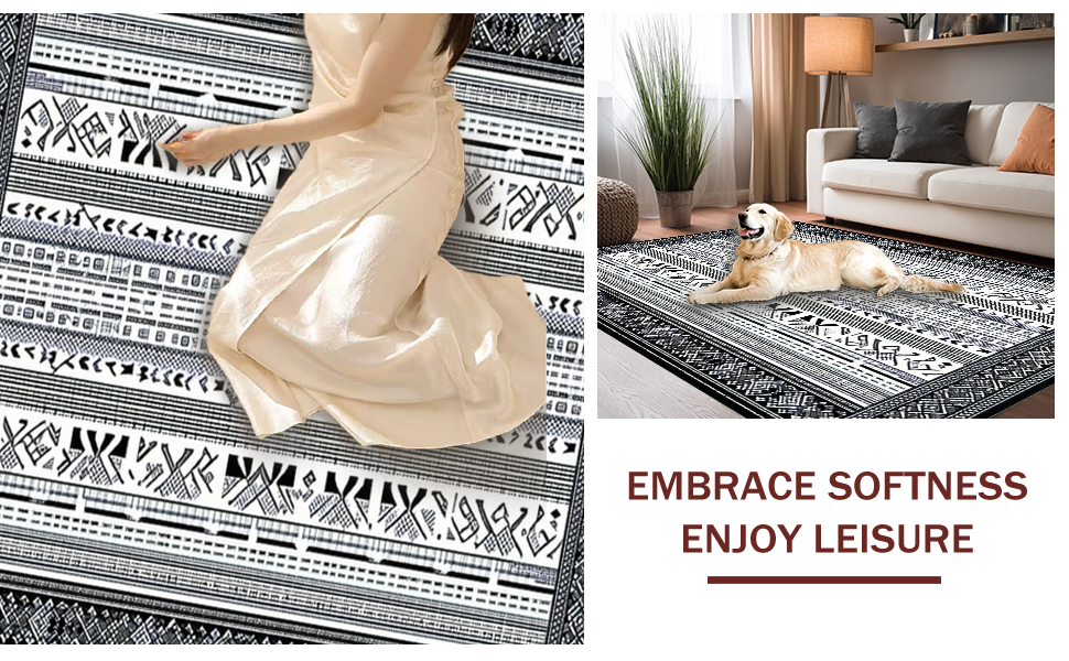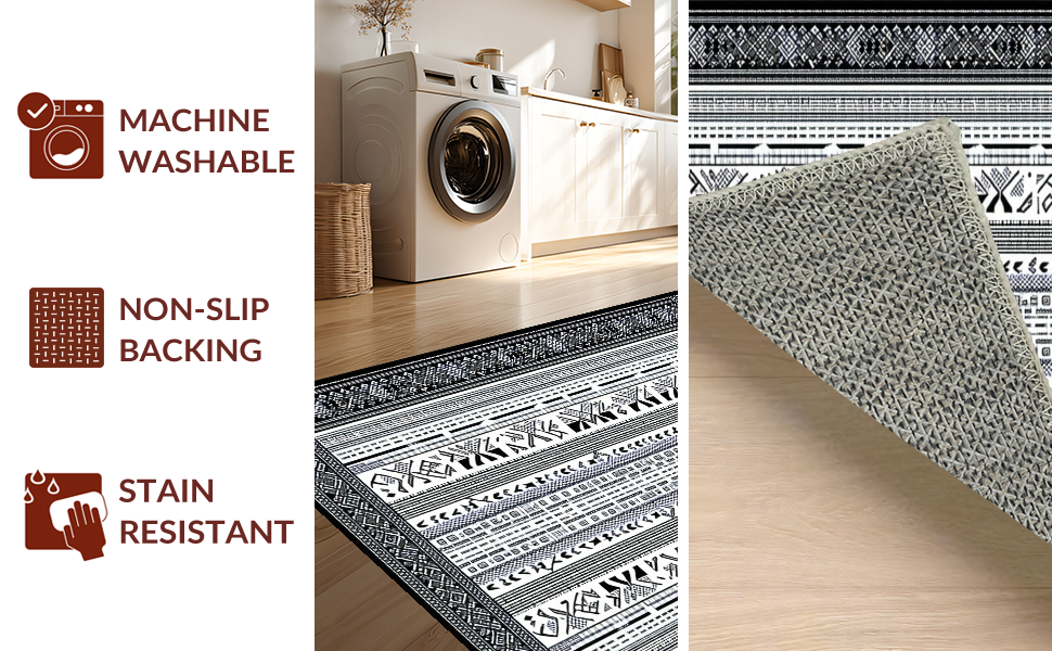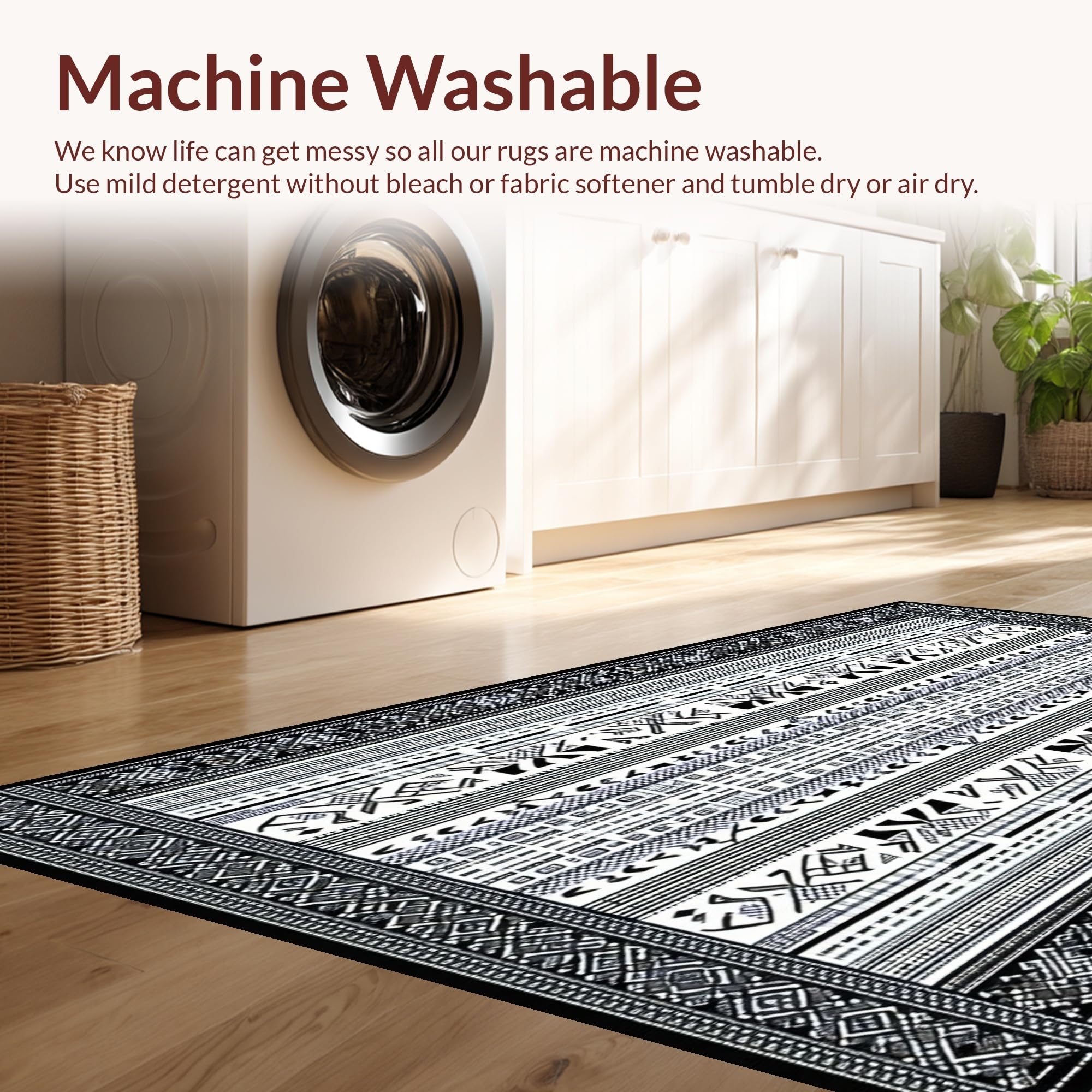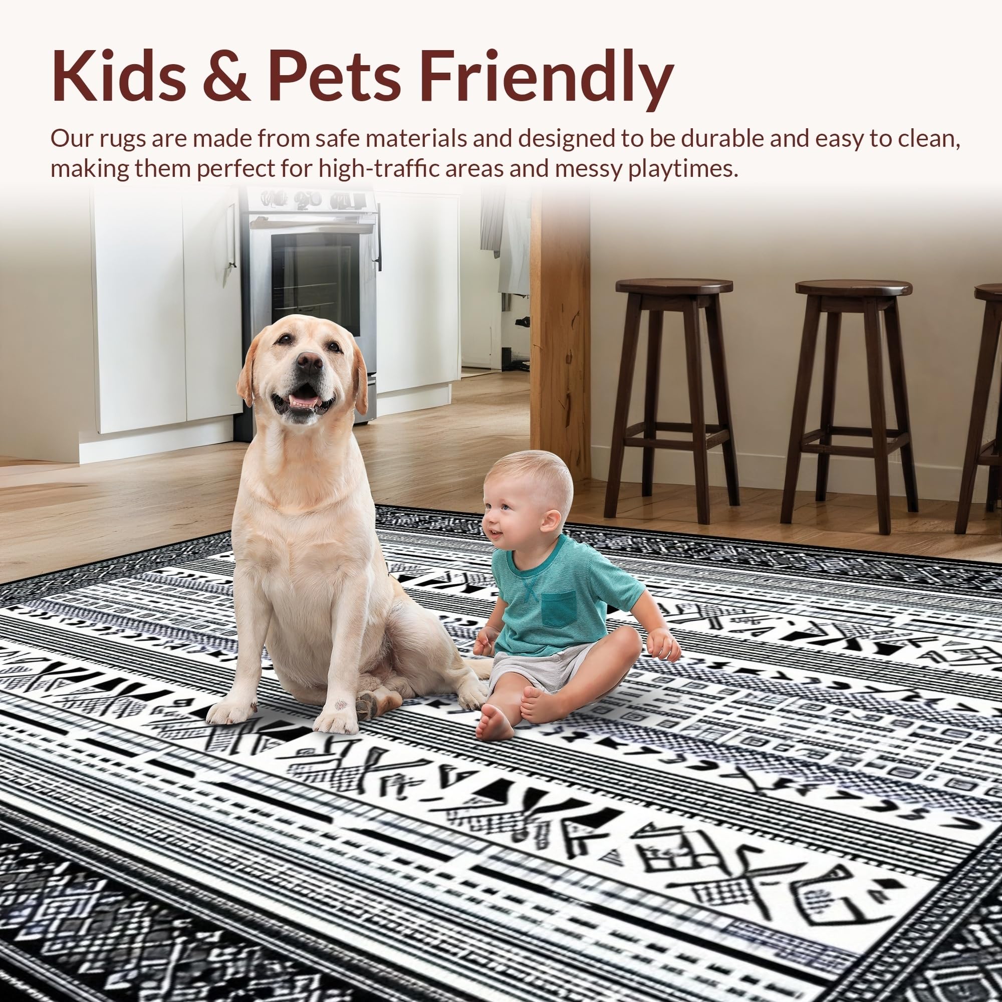 Ultra Soft Area Rug, Non Slip, Stain Resistant, Washable Area Rugs for Living Room, Bedroom, Contemporary Ethnic Textured Accent(Black) Overview: