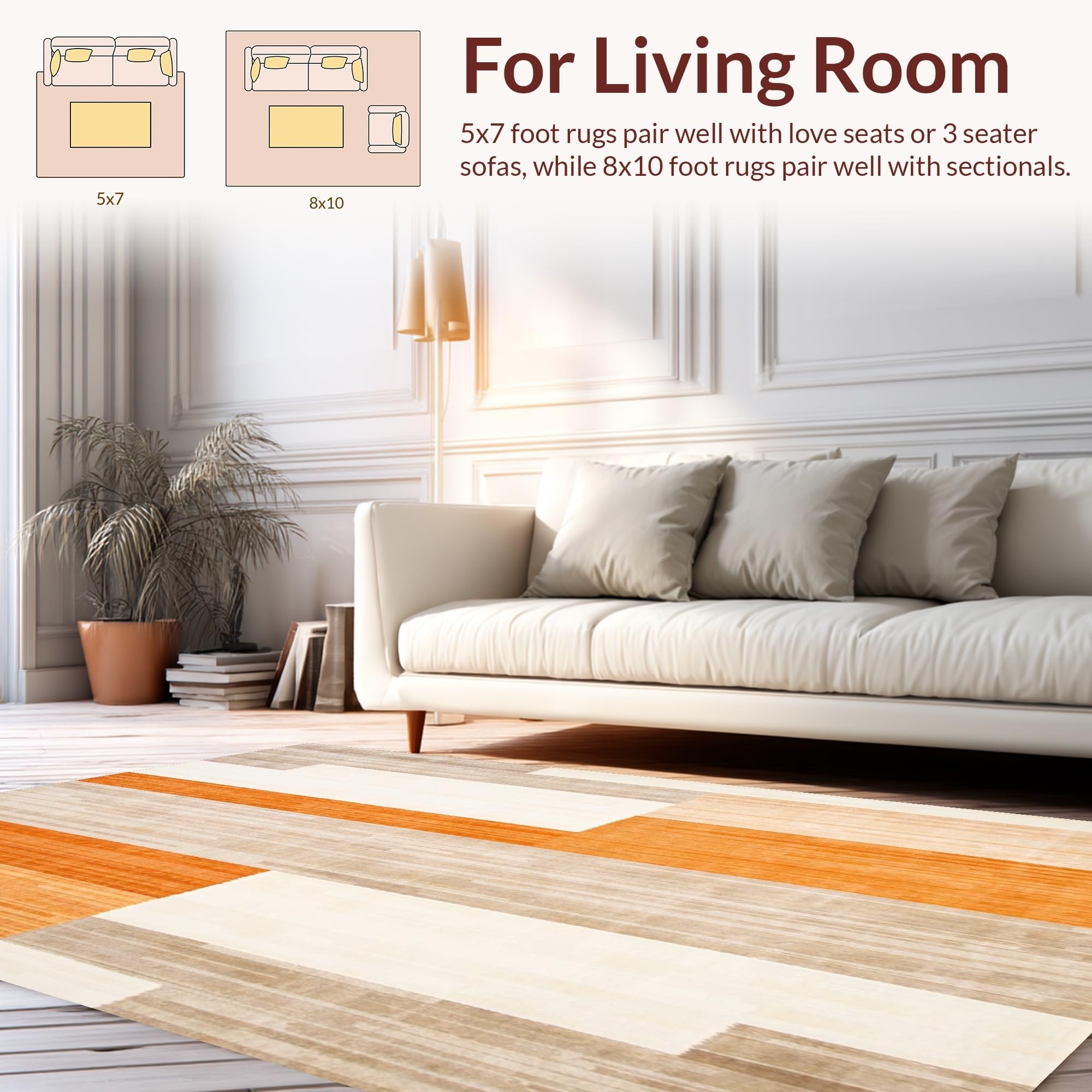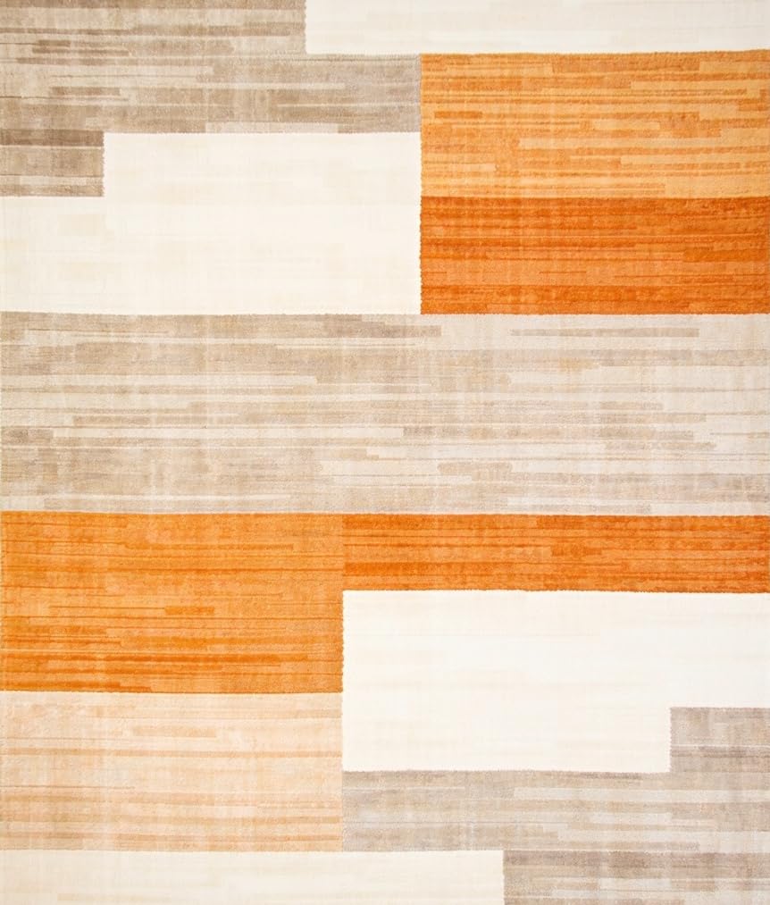 Ultra Soft Area Rug, Non Slip, Stain Resistant, Washable Area Rugs for Living Room, Bedroom, Contemporary Fall Area Beige & Orange Geometric(Beige) Overview: