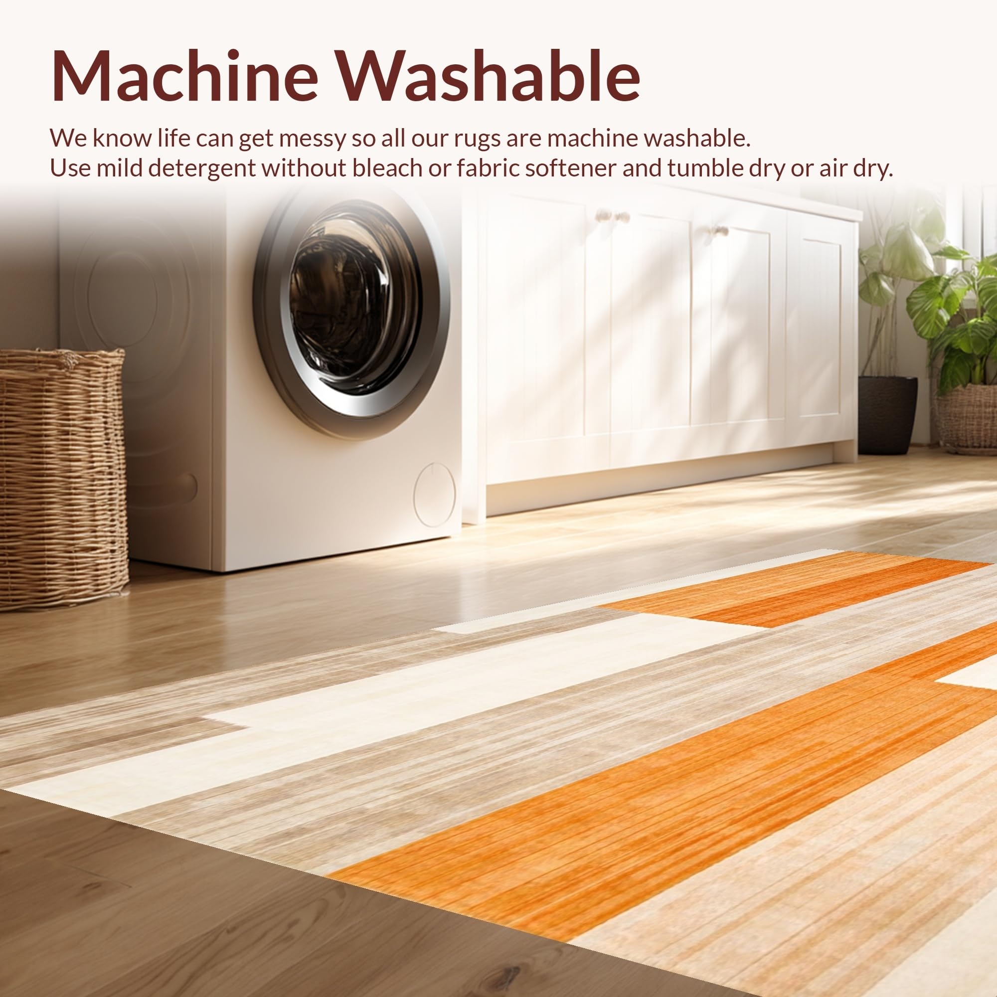 - Machine Washable: Our rugs can be easily thrown in the wash machine.