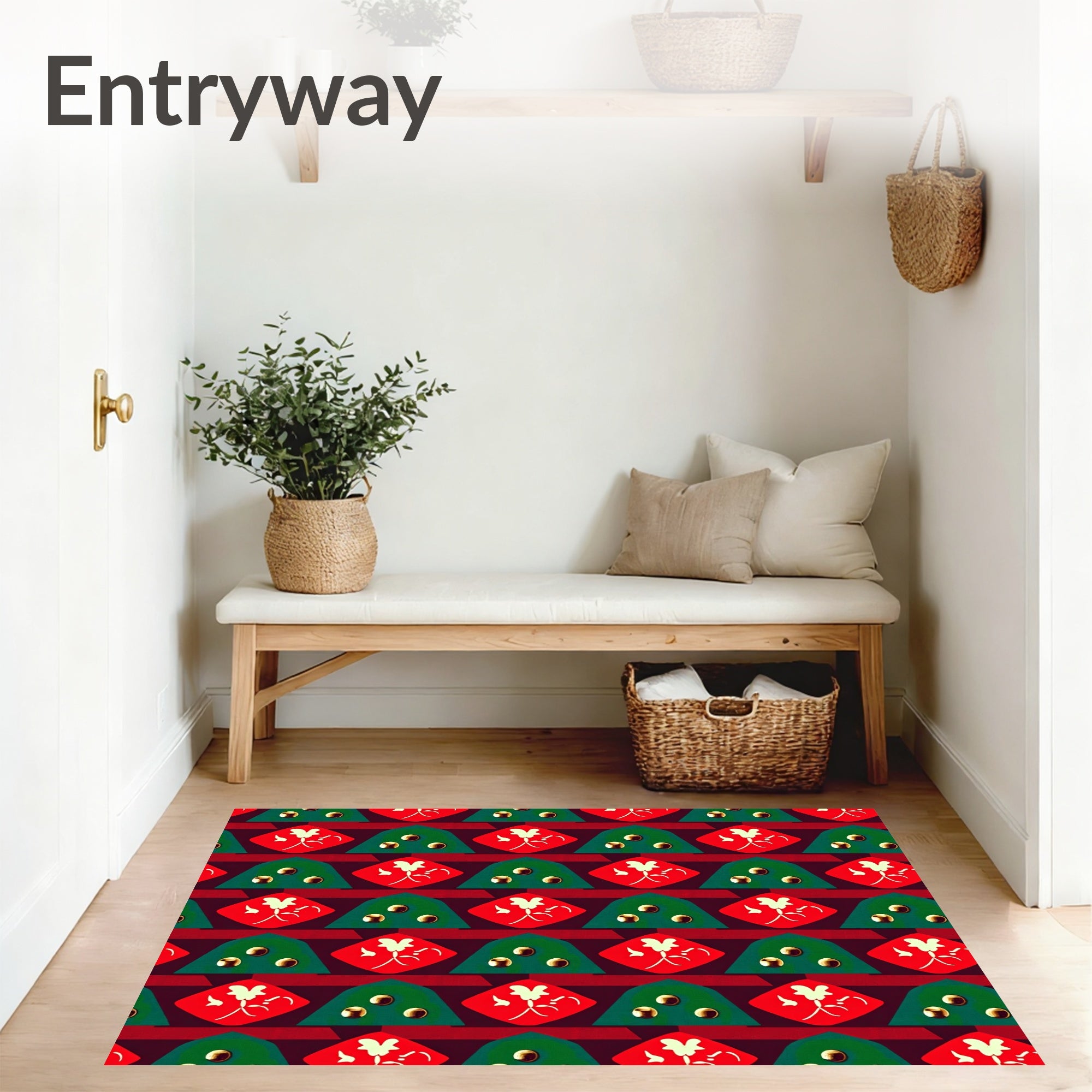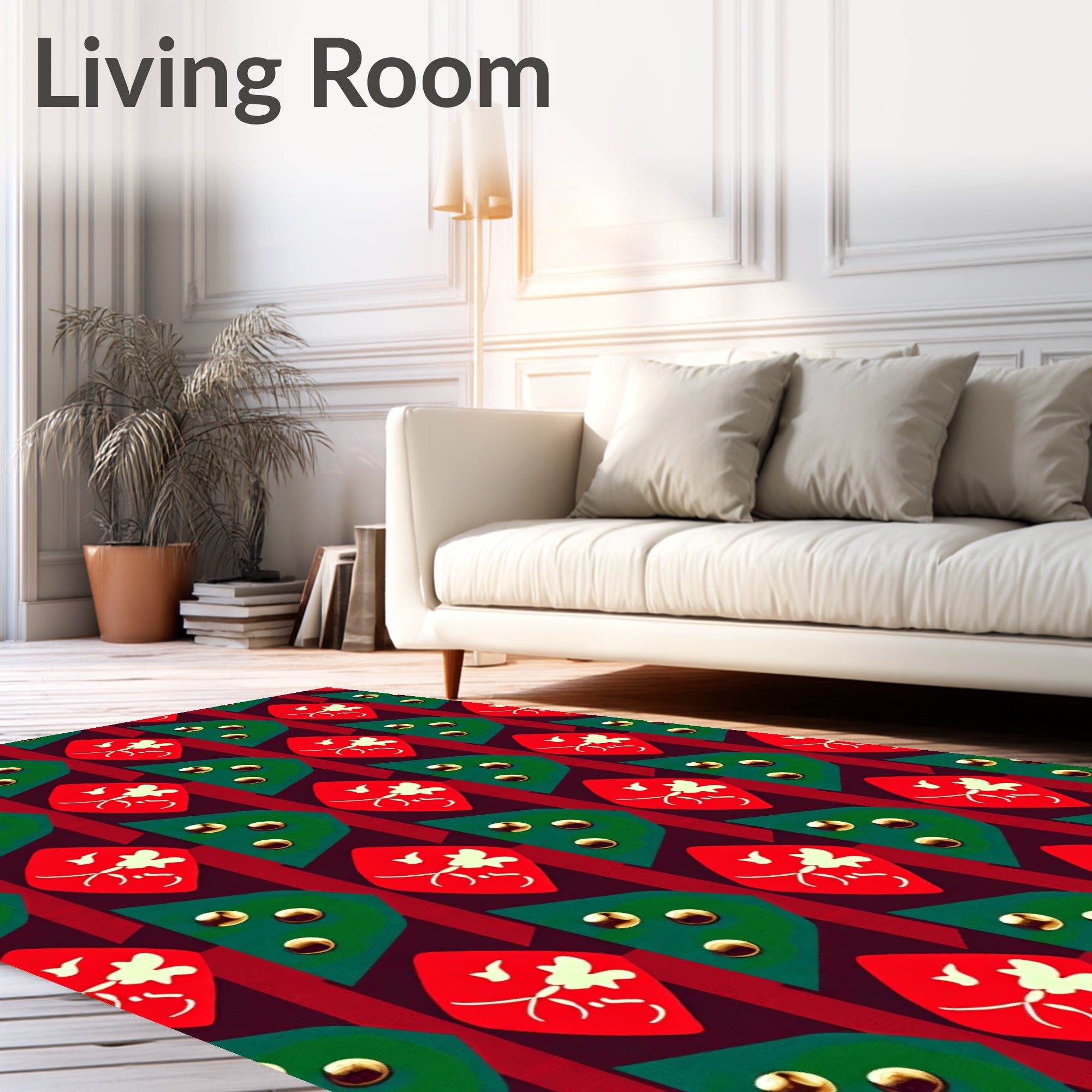 Ultra Soft Area Rug, Non Slip, Stain Resistant, Washable Area Rugs for Living Room, Bedroom, Contemporary Festive Interlocking with Abstract Ornament Accents(Red) Overview: