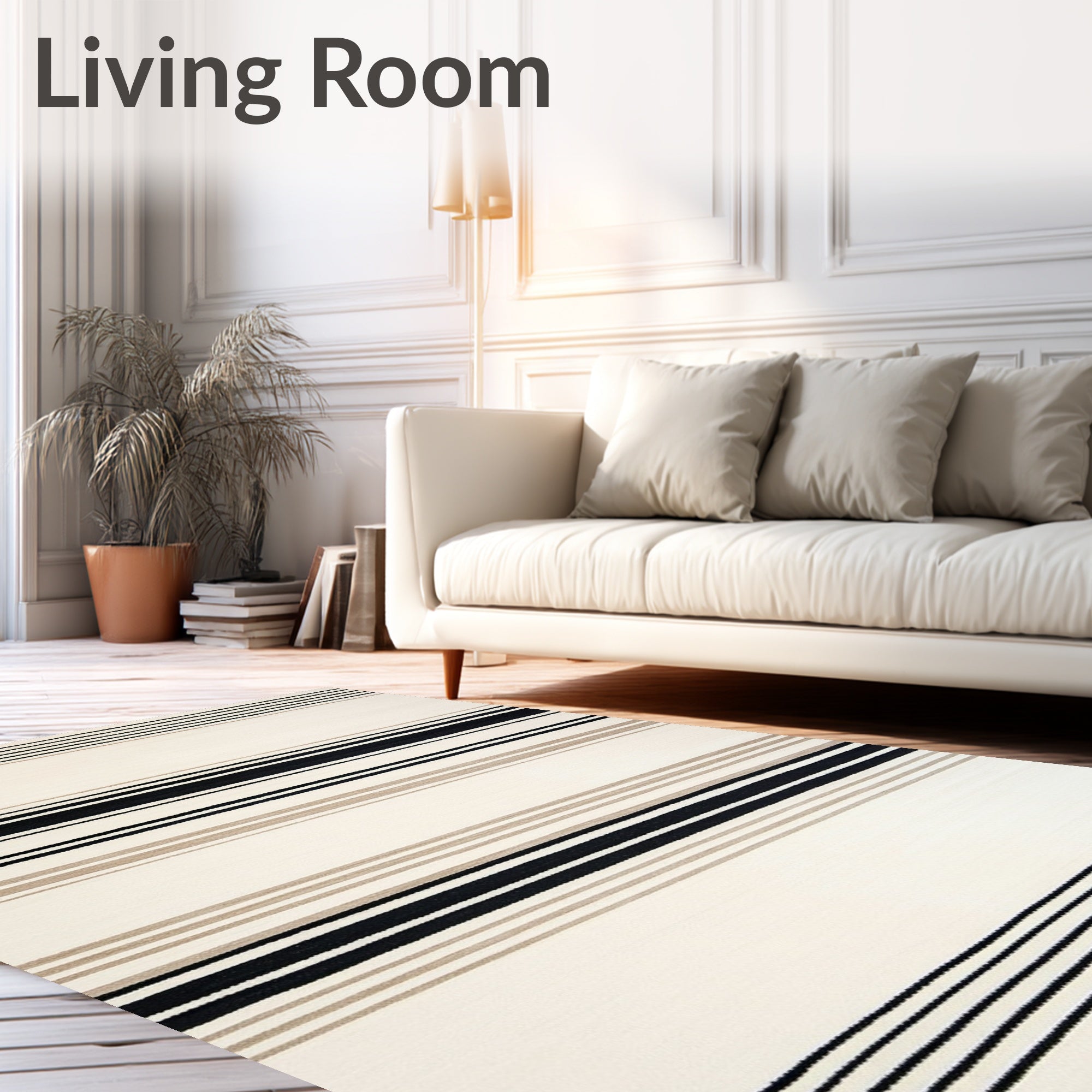 Ultra Soft Area Rug, Non Slip, Stain Resistant, Washable Area Rugs for Living Room, Bedroom, Contemporary Floor Mat Striped Area(Black) Overview: