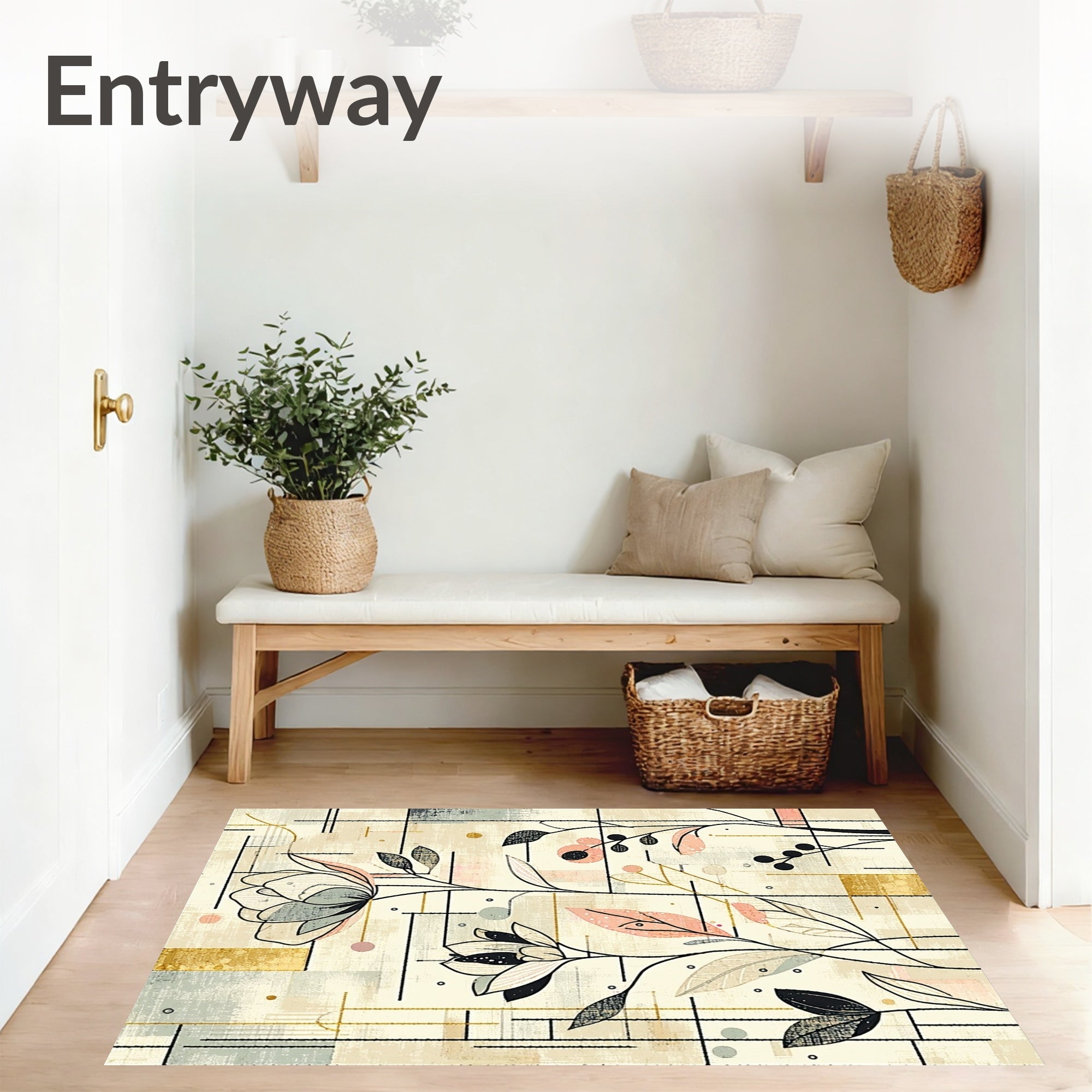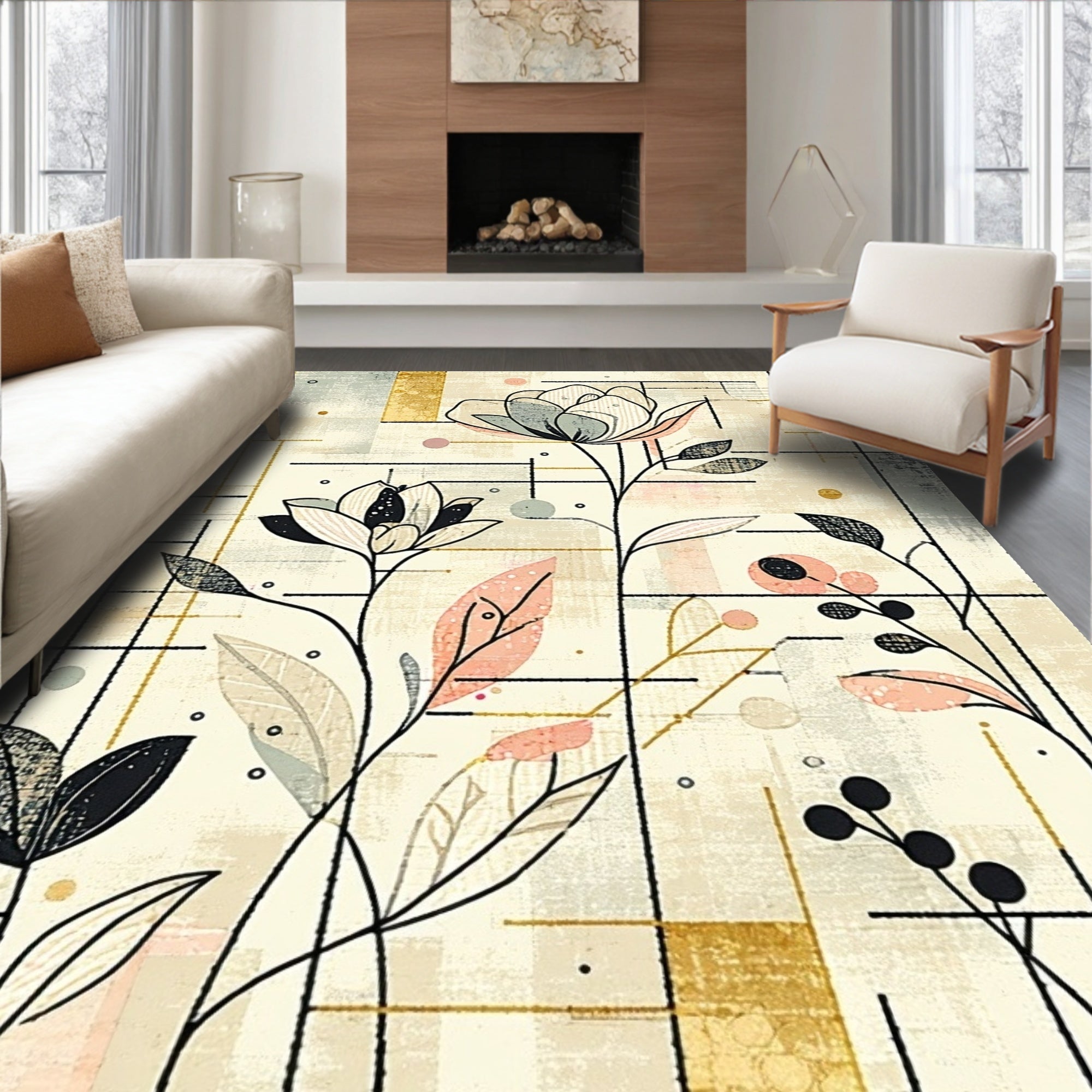 Ultra Soft Area Rug, Non Slip, Stain Resistant, Washable Area Rugs for Living Room, Bedroom, Contemporary Floral Area(Beige) Overview: