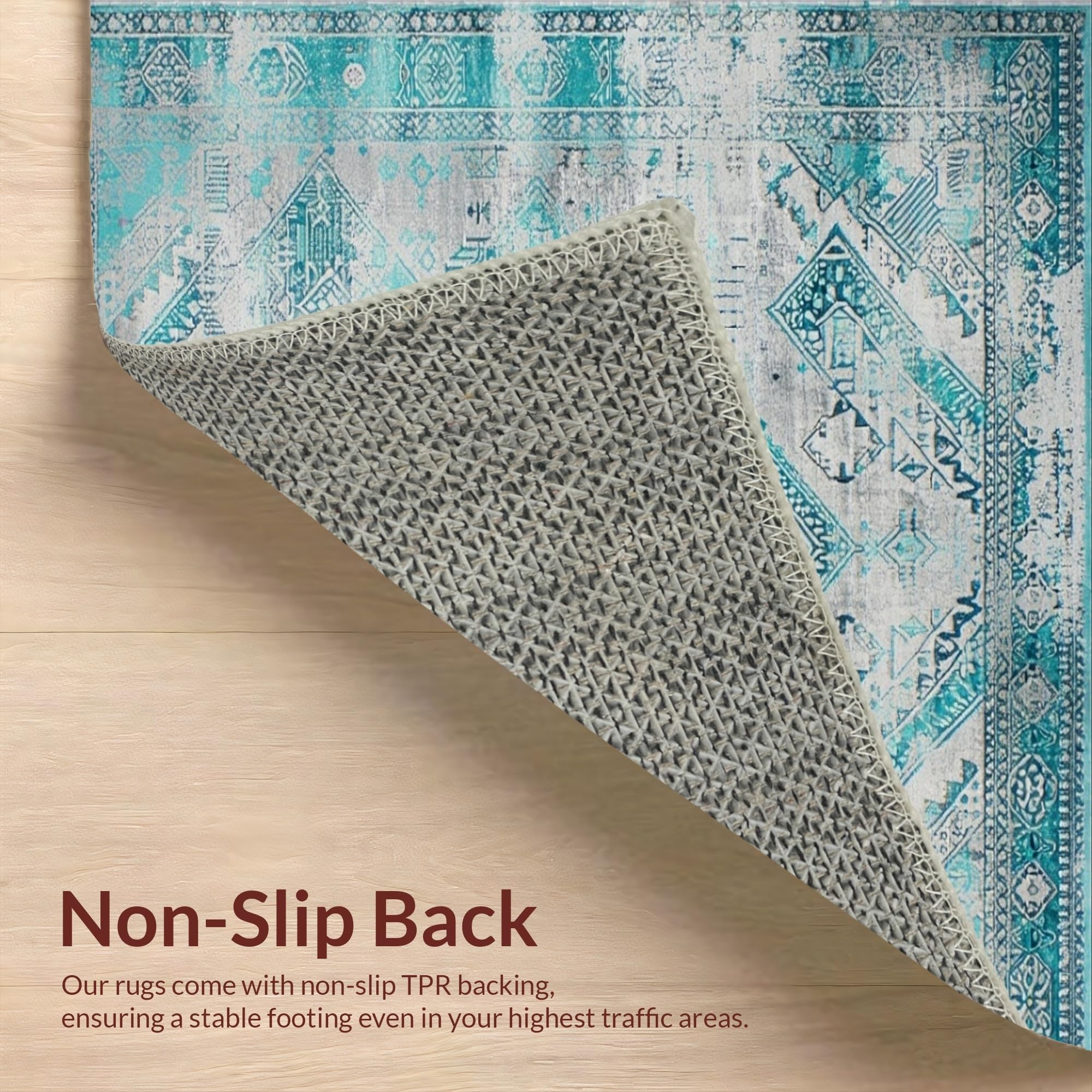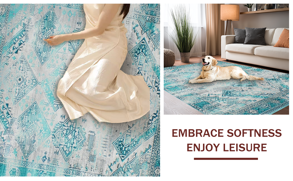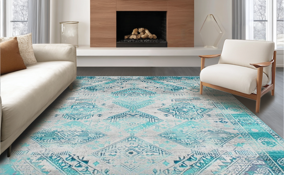 Ultra Soft Area Rug, Non Slip, Stain Resistant, Washable Area Rugs for Living Room, Bedroom, Contemporary Floral Textural Fusion(Blue) Overview: