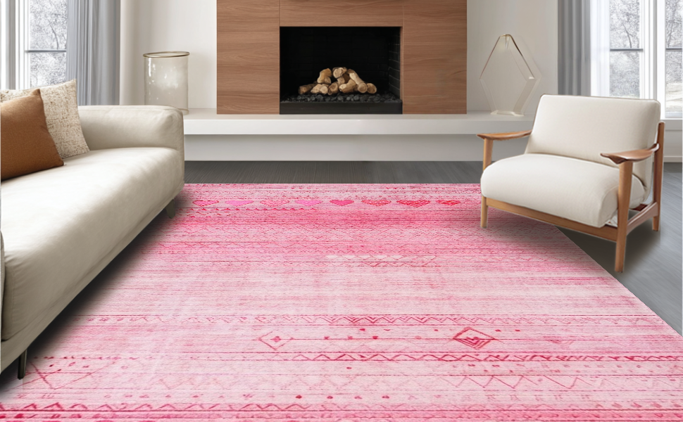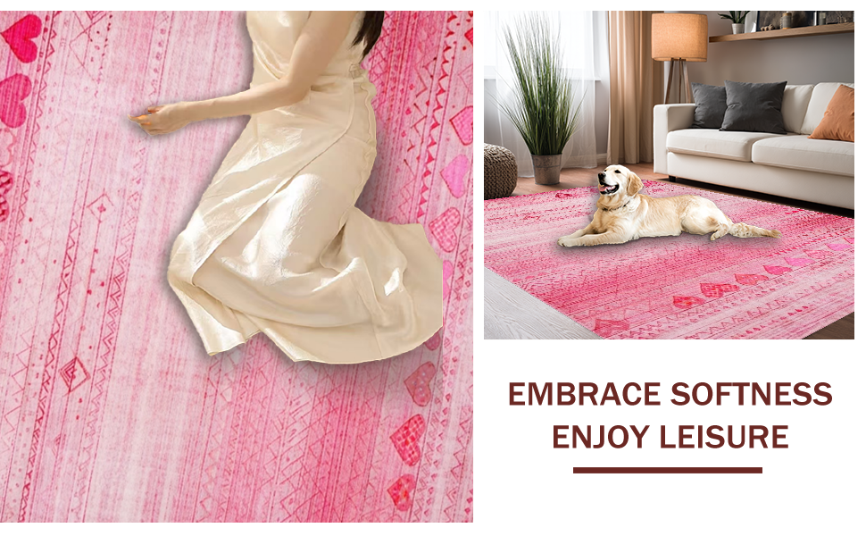 Ultra Soft Area Rug, Non Slip, Stain Resistant, Washable Area Rugs for Living Room, Bedroom, Contemporary Fluffy Playful Shape(Pink) Overview: