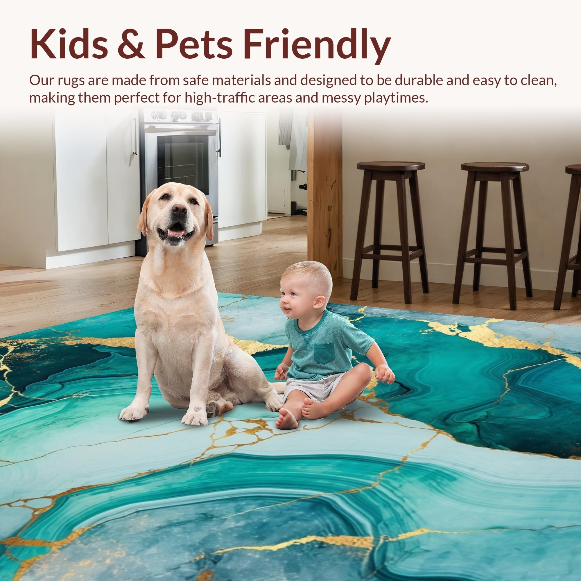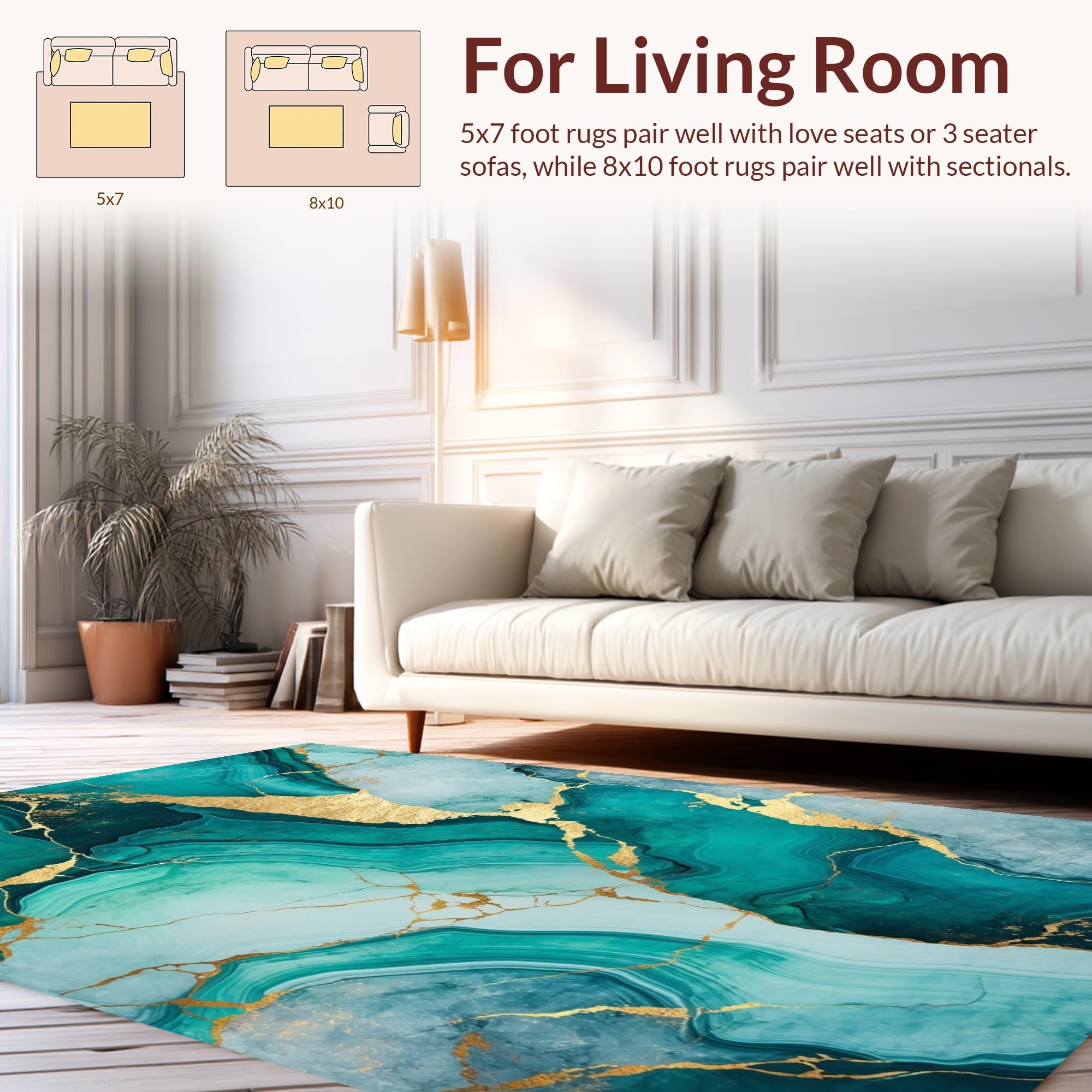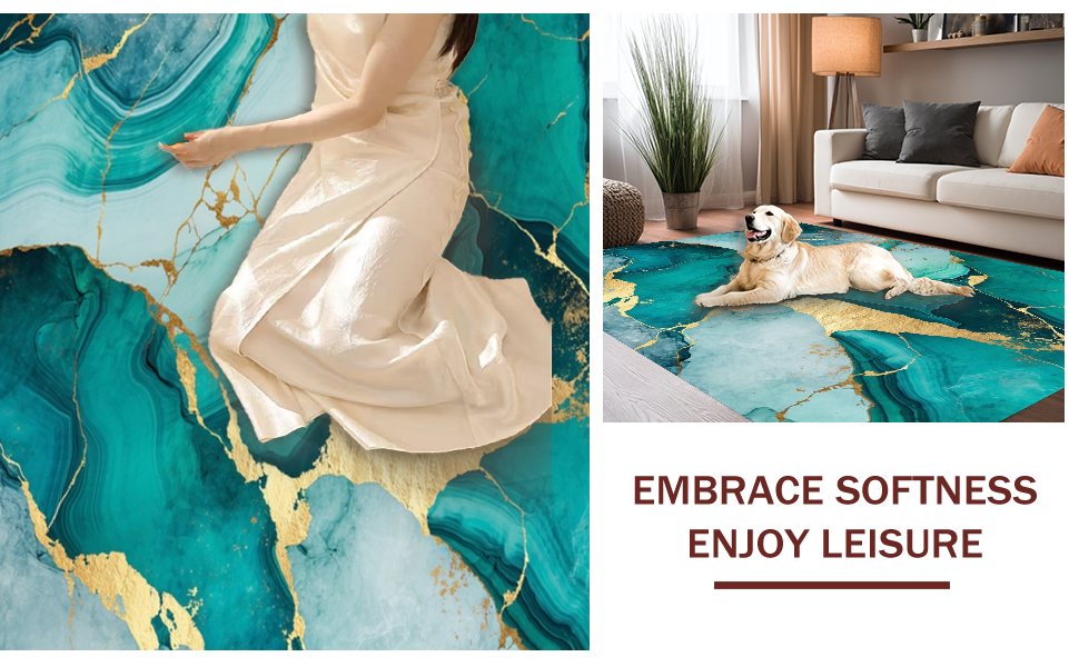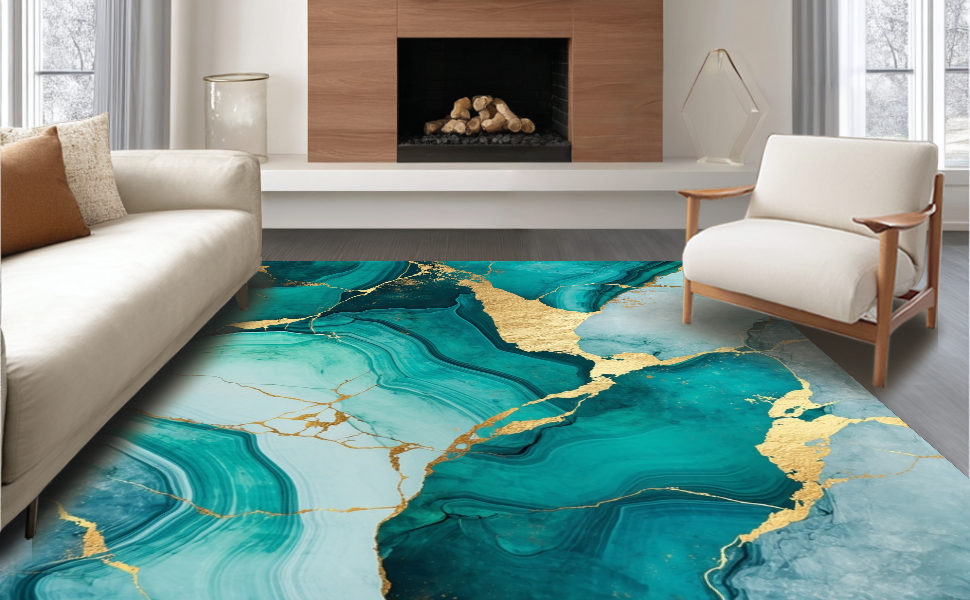 Ultra Soft Area Rug, Non Slip, Stain Resistant, Washable Area Rugs for Living Room, Bedroom, Contemporary Fluid Abstract Design(Blue) Overview: