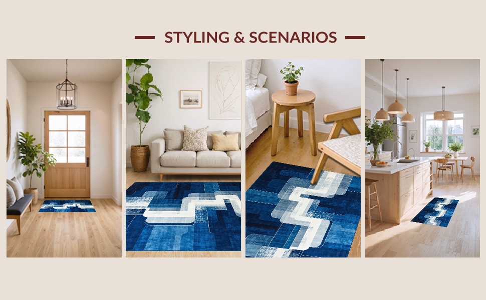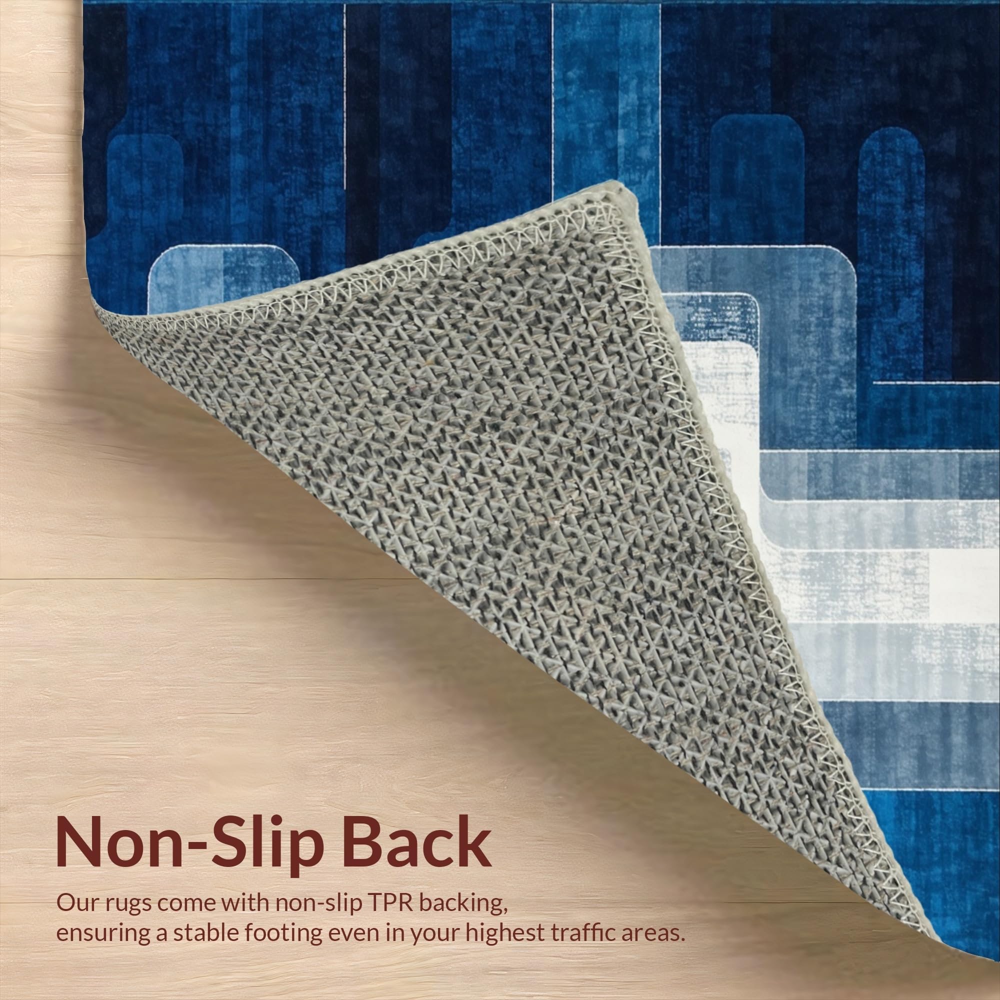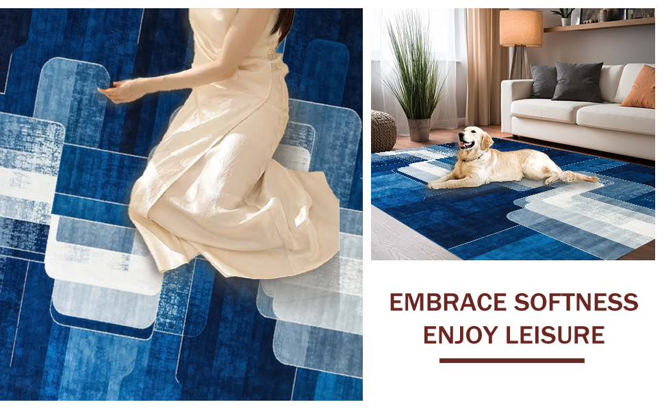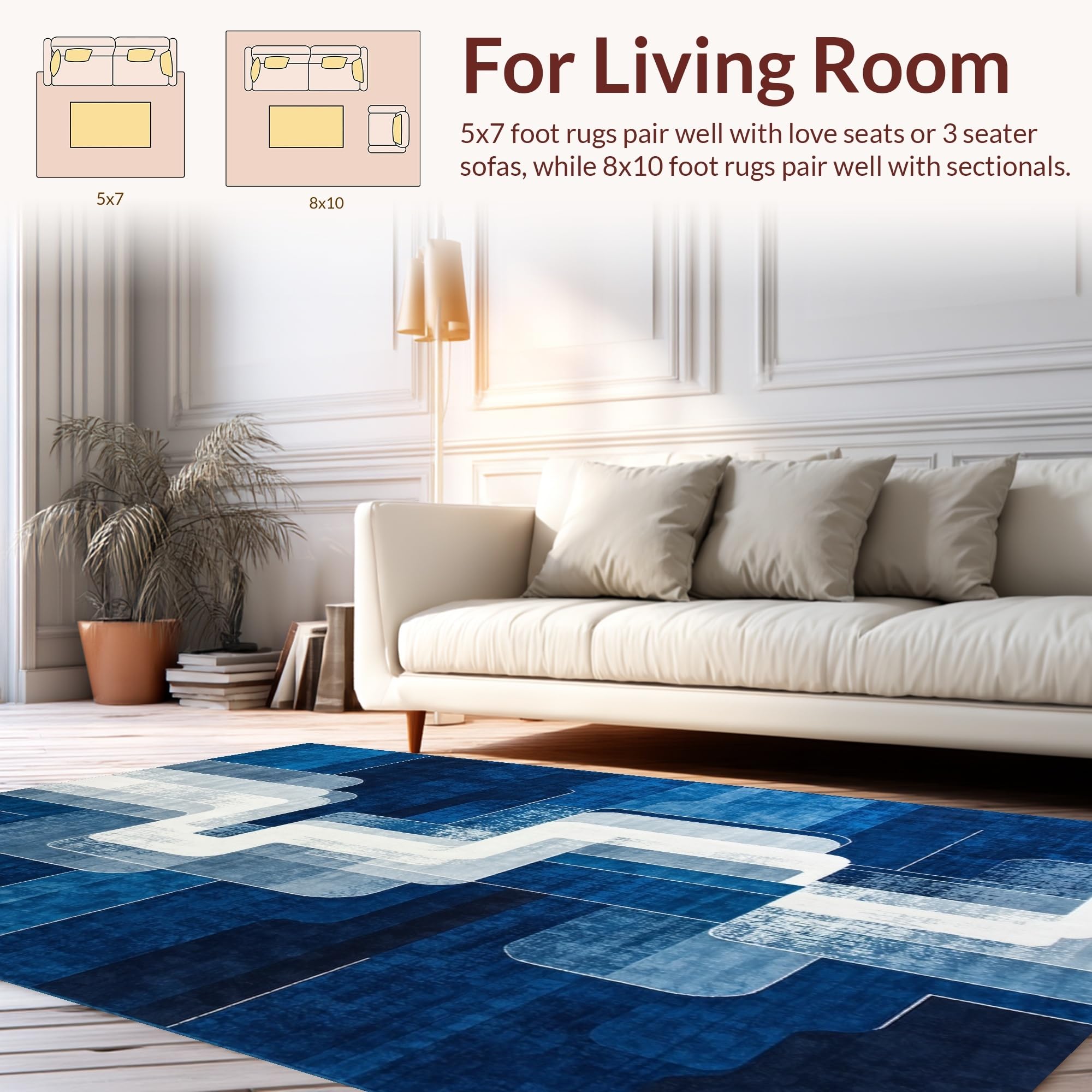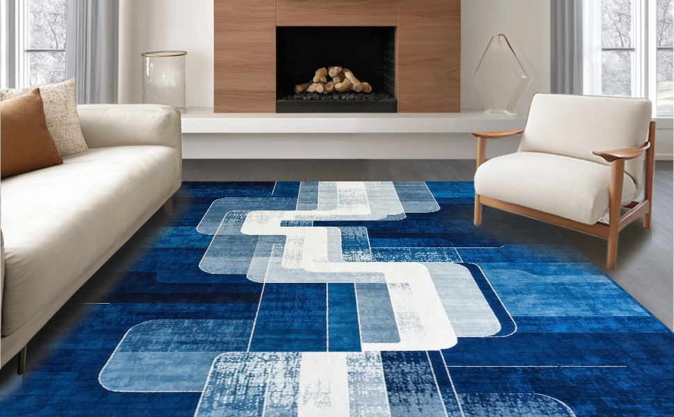 Ultra Soft Area Rug, Non Slip, Stain Resistant, Washable Area Rugs for Living Room, Bedroom, Contemporary Fluid Art Style(Blue) Overview: