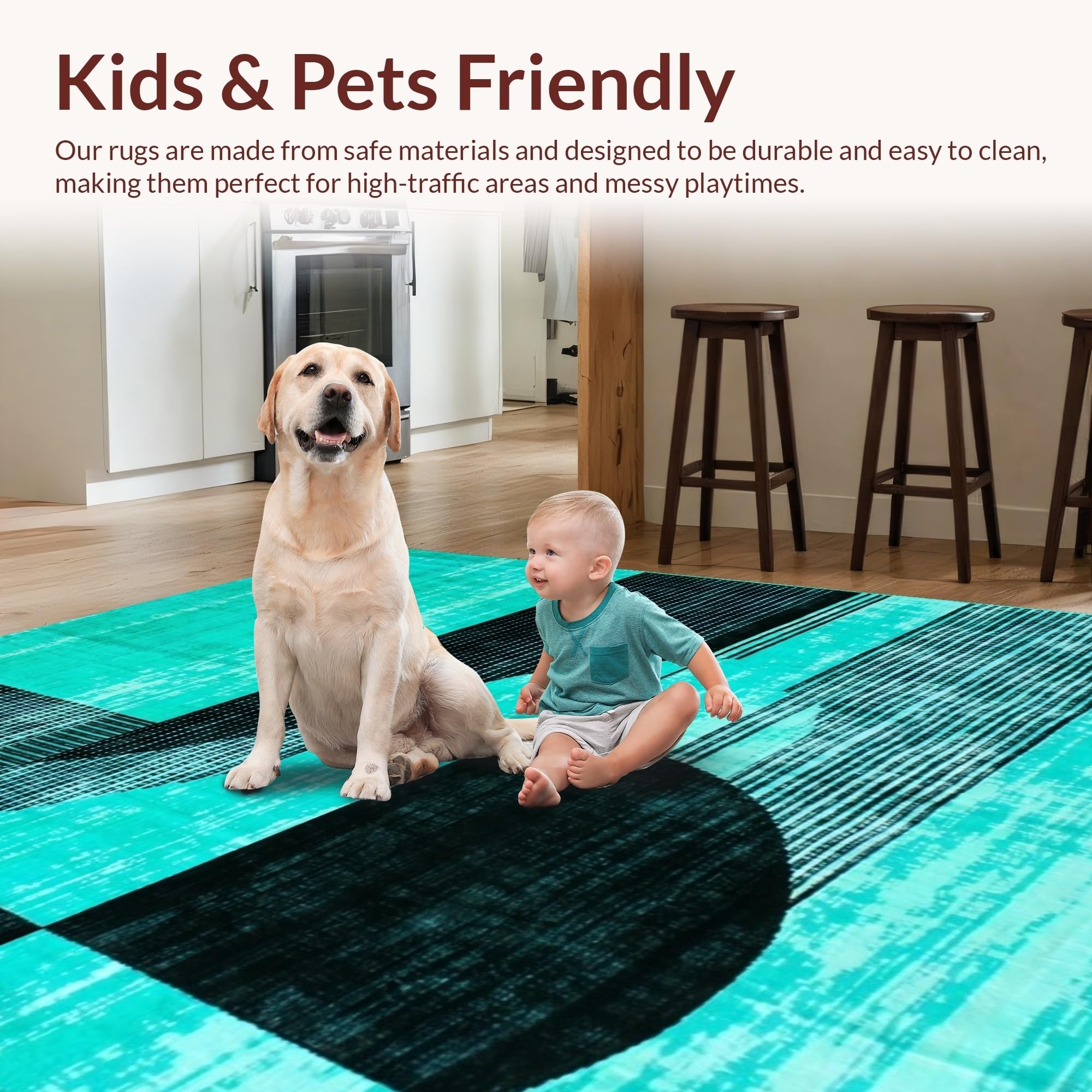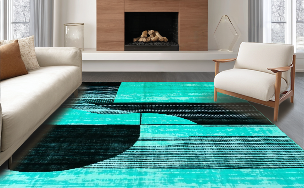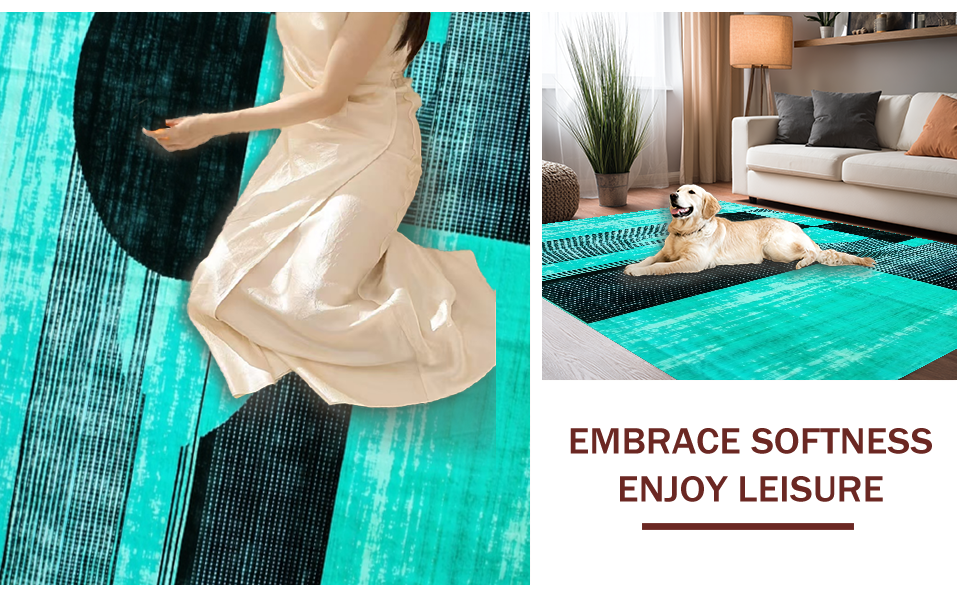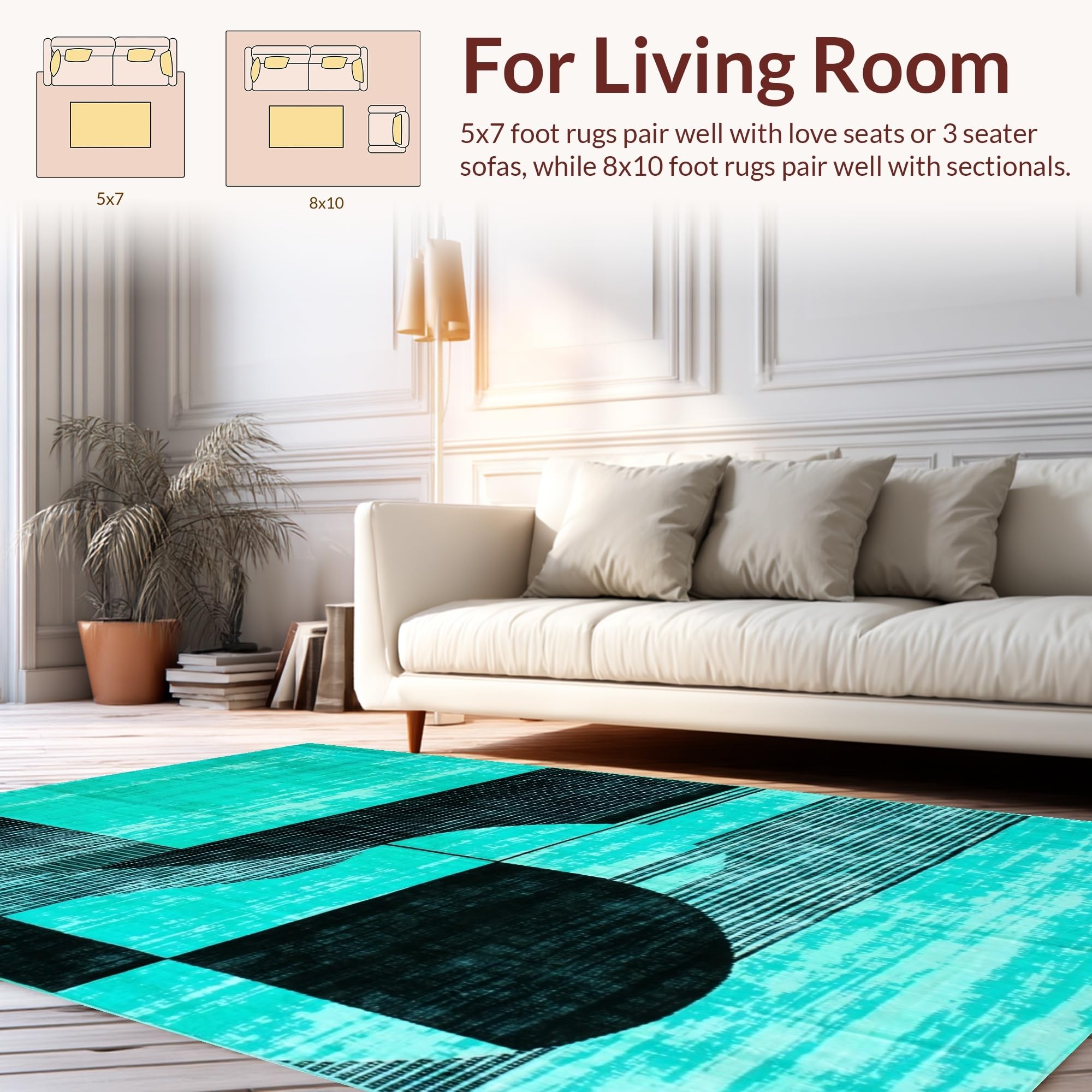 Ultra Soft Area Rug, Non Slip, Stain Resistant, Washable Area Rugs for Living Room, Bedroom, Contemporary Free-form Abstract Aesthetic(Blue) Overview: