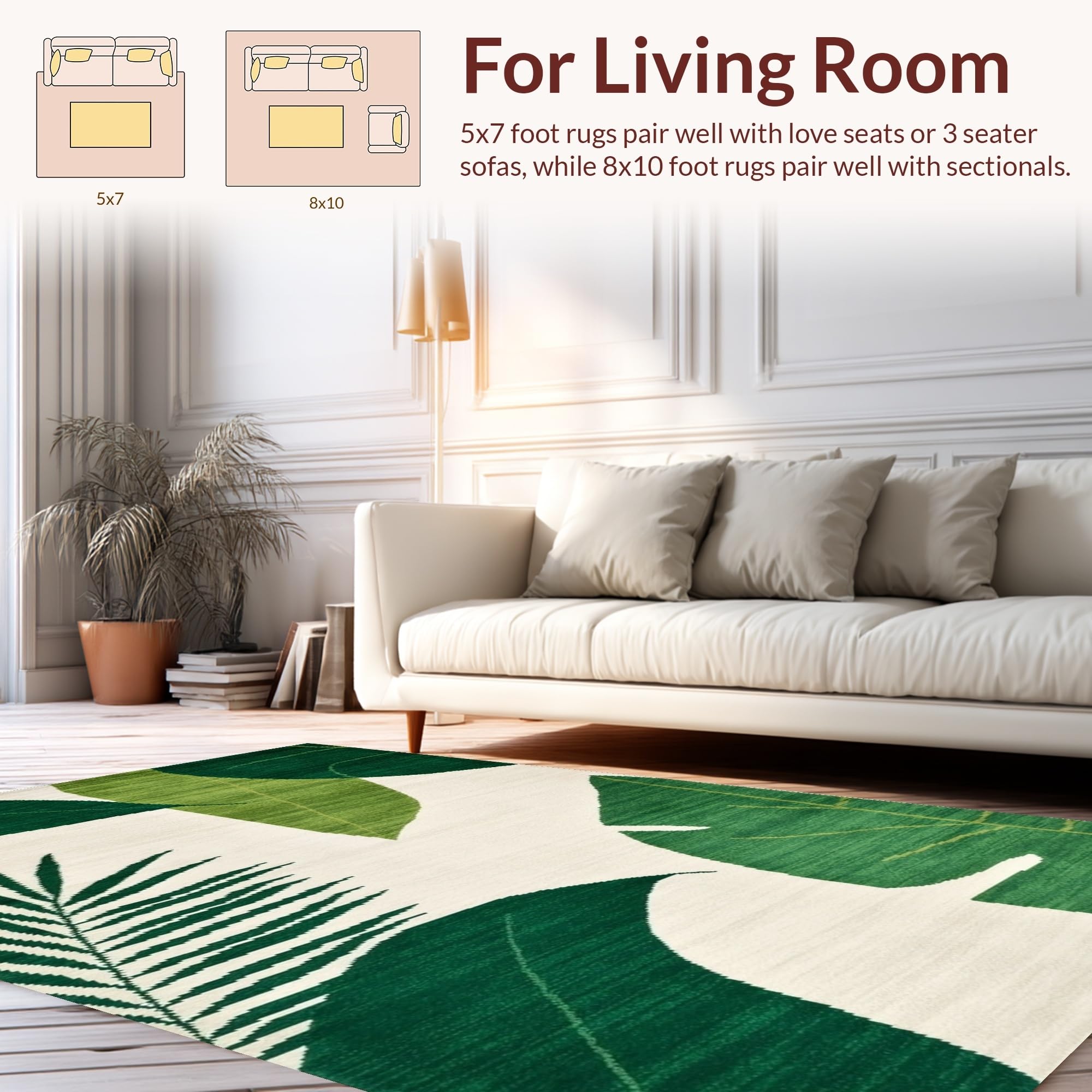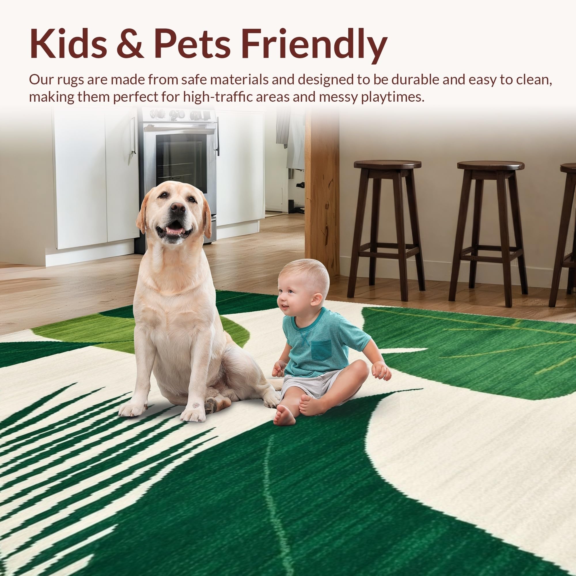 Ultra Soft Area Rug, Non Slip, Stain Resistant, Washable Area Rugs for Living Room, Bedroom, Contemporary Fresh Color Palette(Green) Overview: