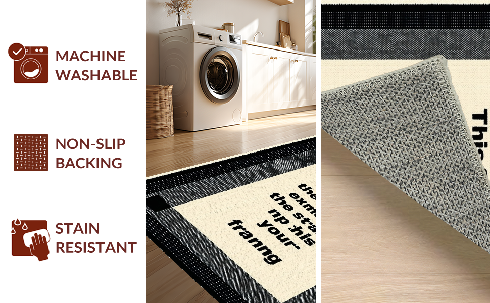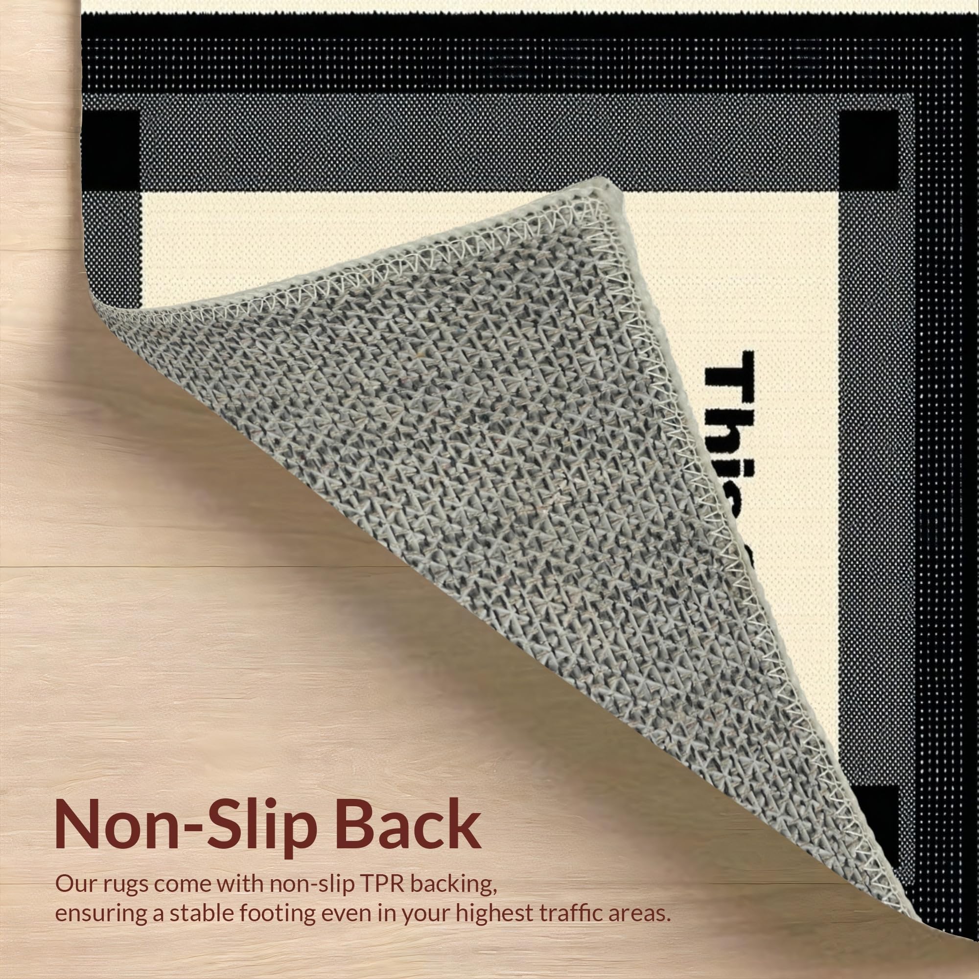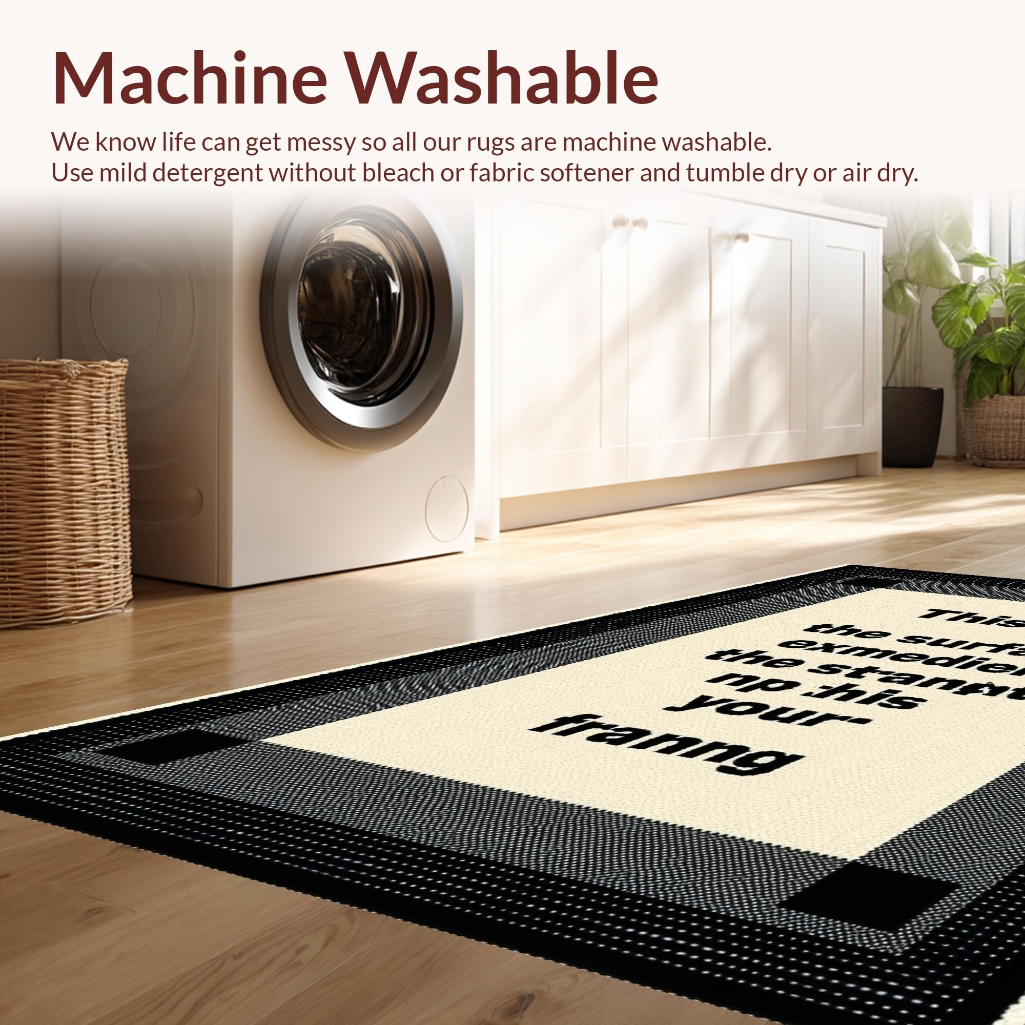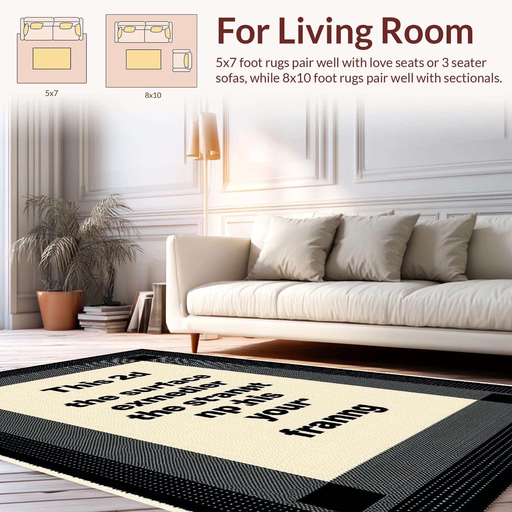 Ultra Soft Area Rug, Non Slip, Stain Resistant, Washable Area Rugs for Living Room, Bedroom, Contemporary Funny Phrase Decor(Beige) Overview: