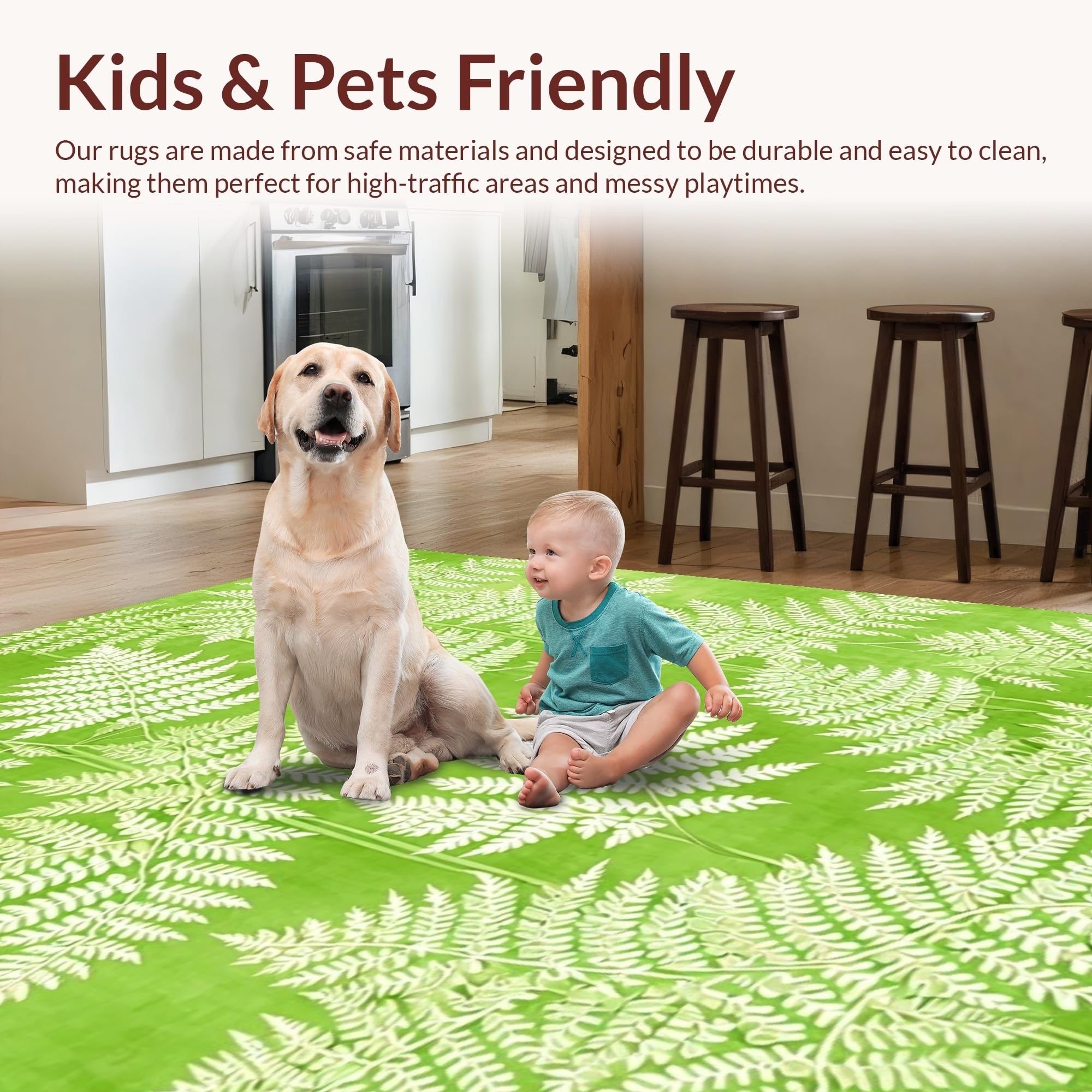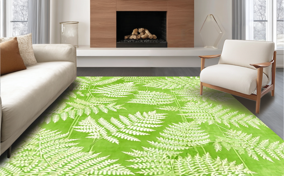 Ultra Soft Area Rug, Non Slip, Stain Resistant, Washable Area Rugs for Living Room, Bedroom, Contemporary Fuzzy Medallion Design(Green) Overview: