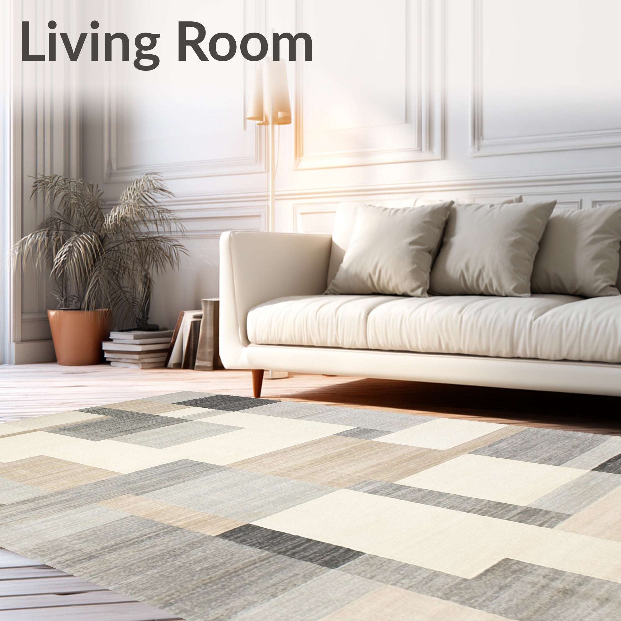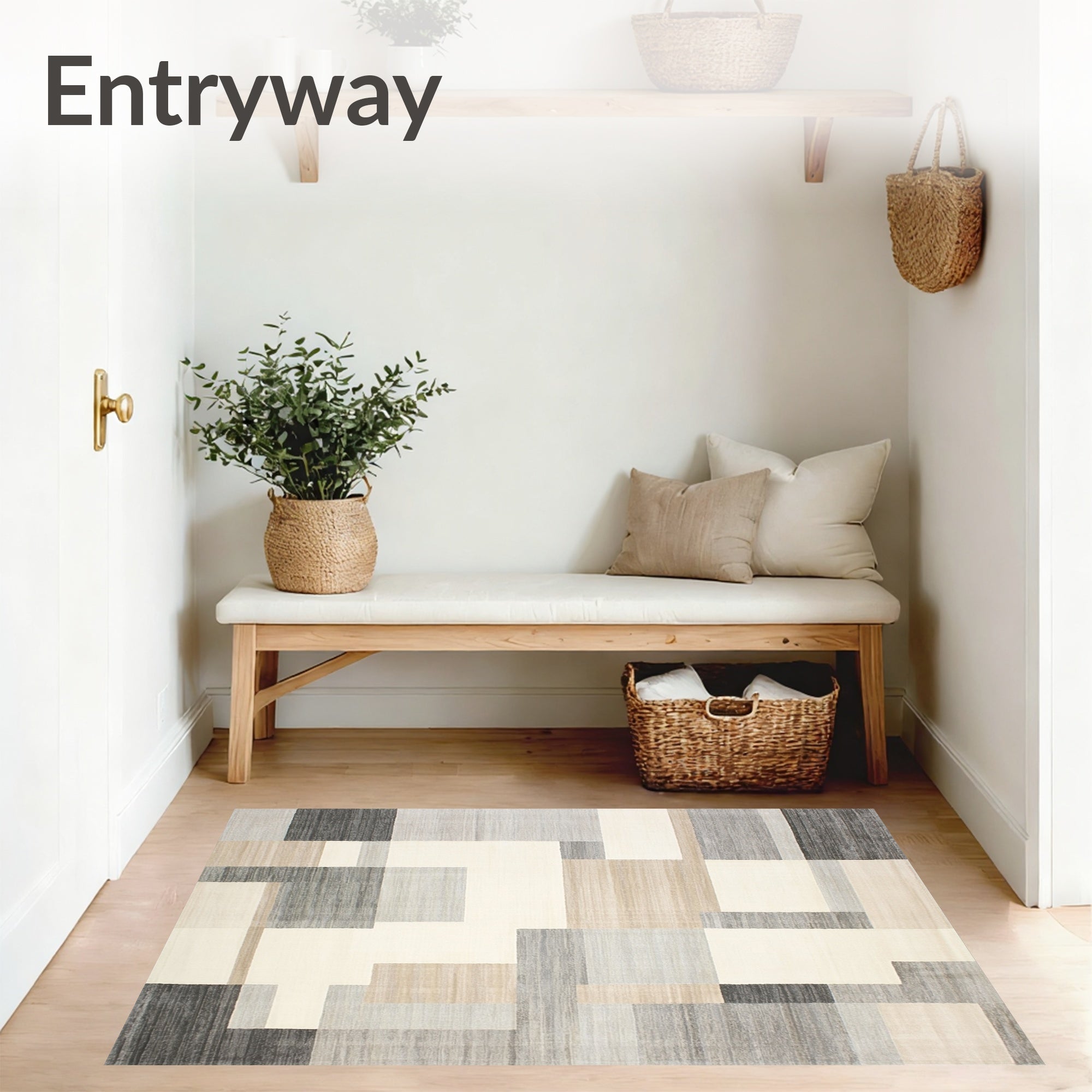 Ultra Soft Area Rug, Non Slip, Stain Resistant, Washable Area Rugs for Living Room, Bedroom, Contemporary Geometric Area Beige Grey Intersecting Shapes(Beige) Overview: