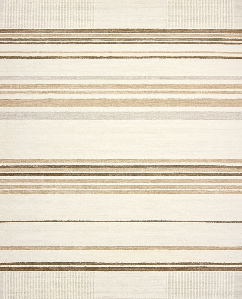 Contemporary Geometric Area Ikat Inspired Beige and Cream Stripe(Beige)