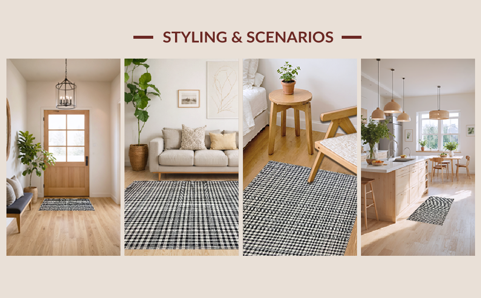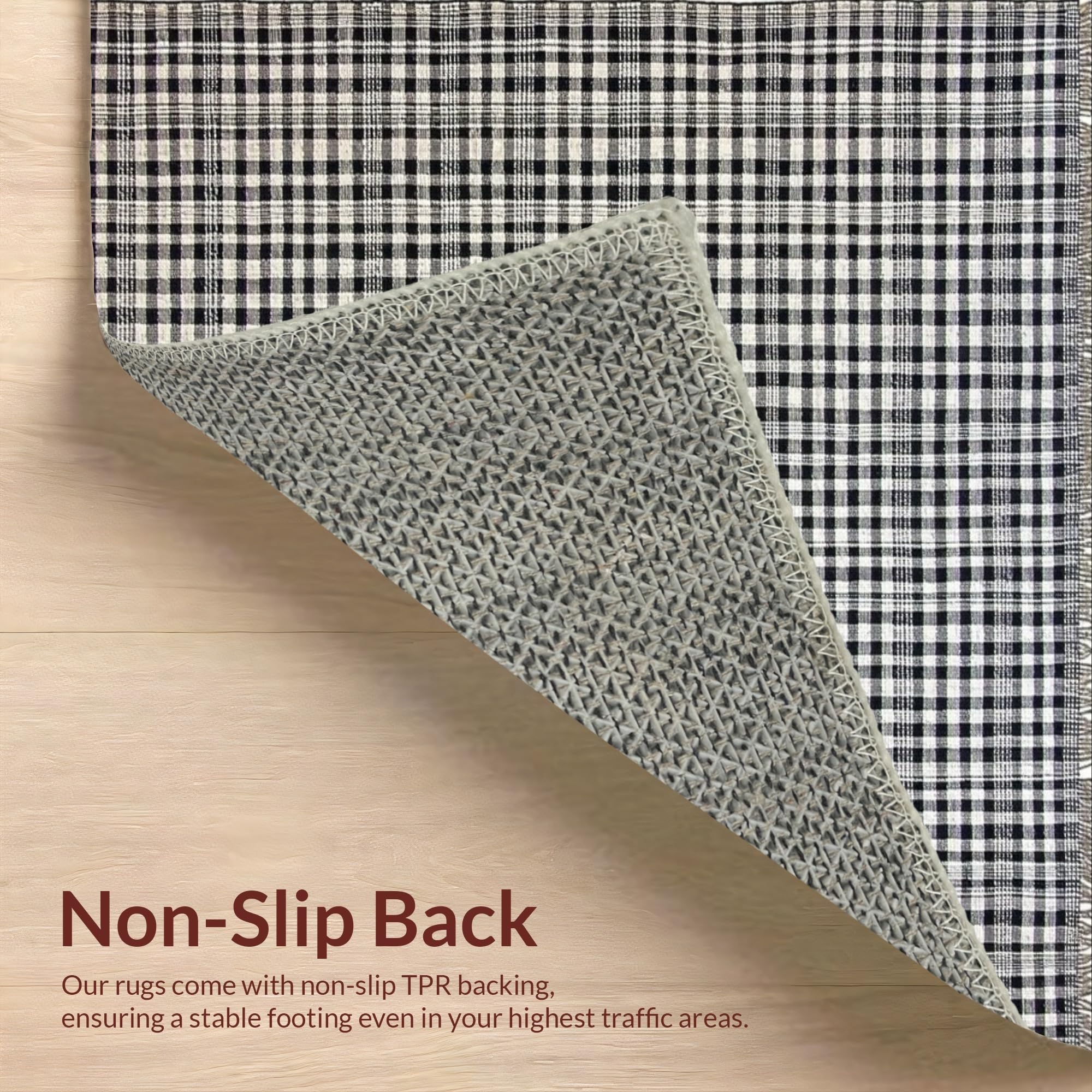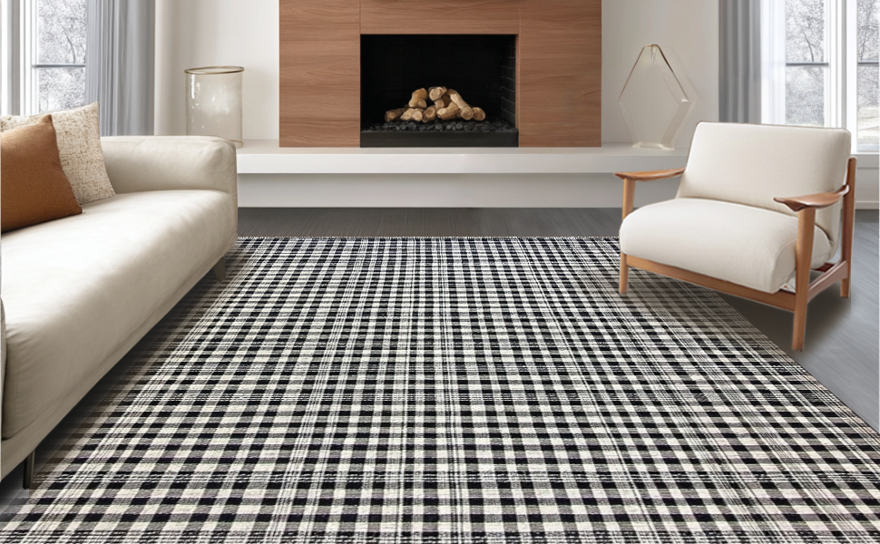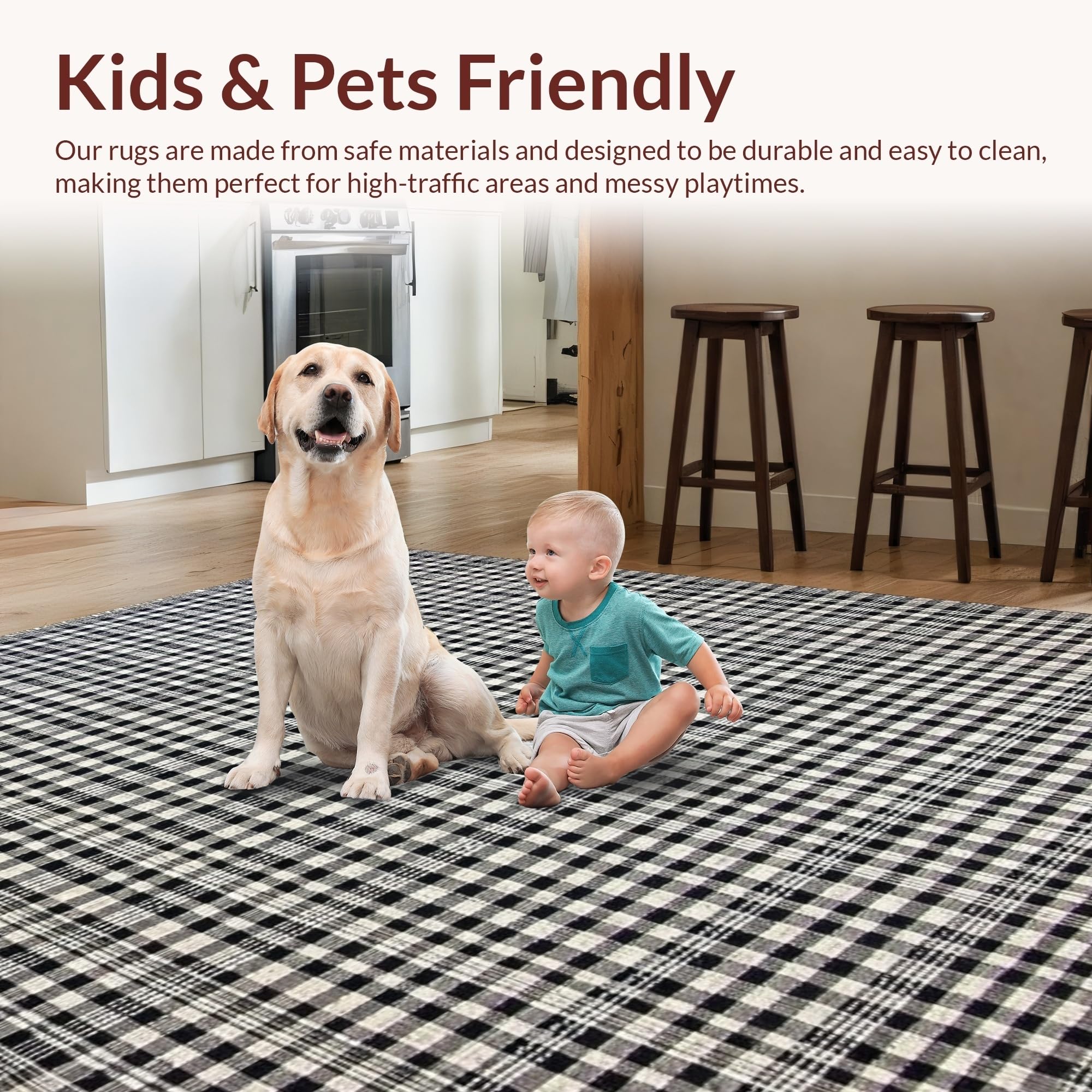 Ultra Soft Area Rug, Non Slip, Stain Resistant, Washable Area Rugs for Living Room, Bedroom, Contemporary Geometric Check Design(Black) Overview: