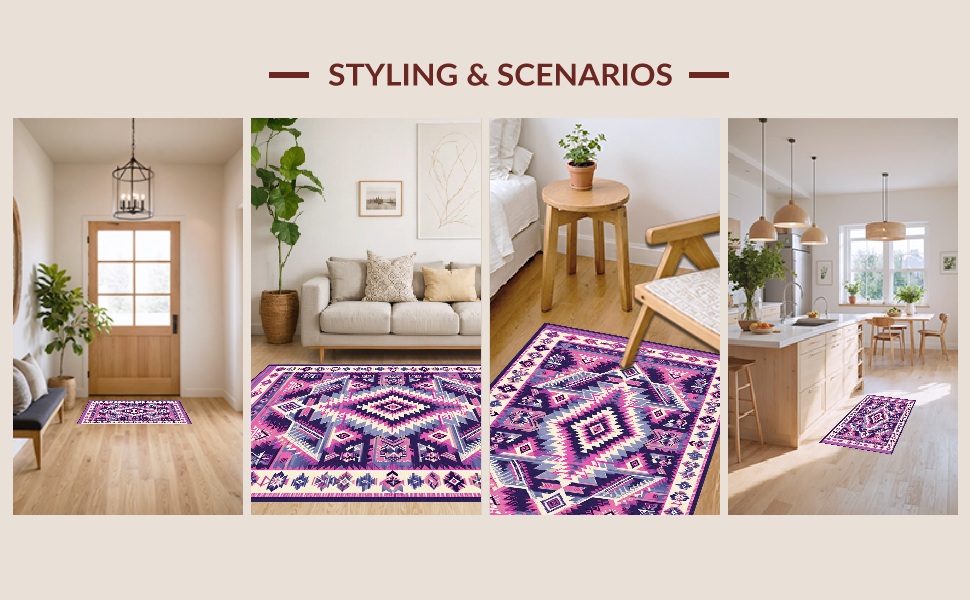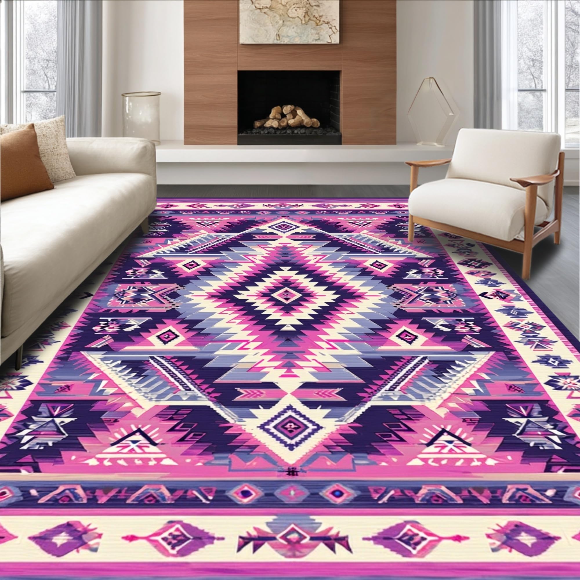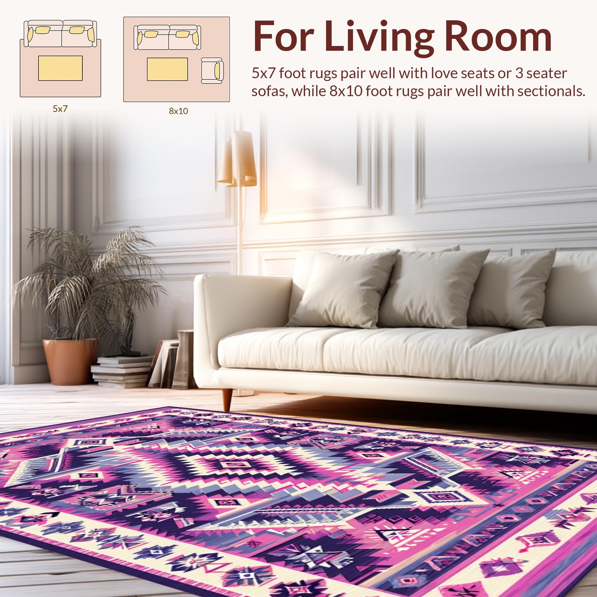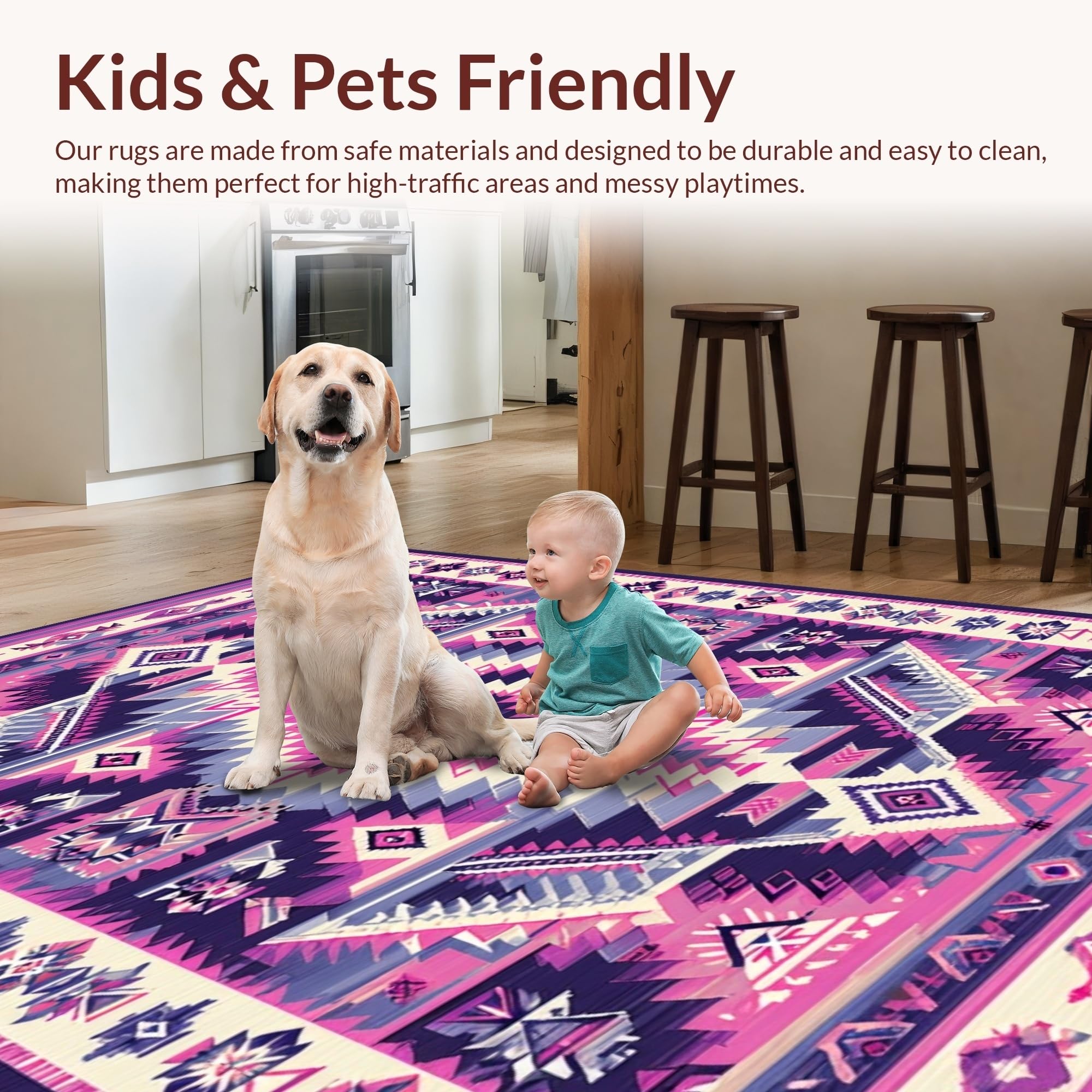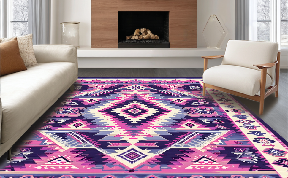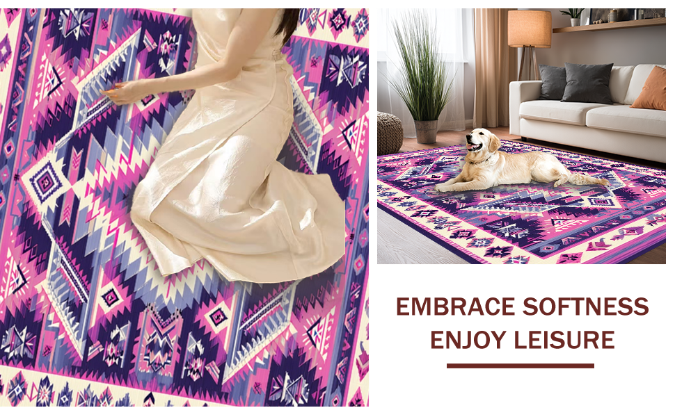Ultra Soft Area Rug, Non Slip, Stain Resistant, Washable Area Rugs for Living Room, Bedroom, Contemporary Geometric Color Dance(Purple) Overview: