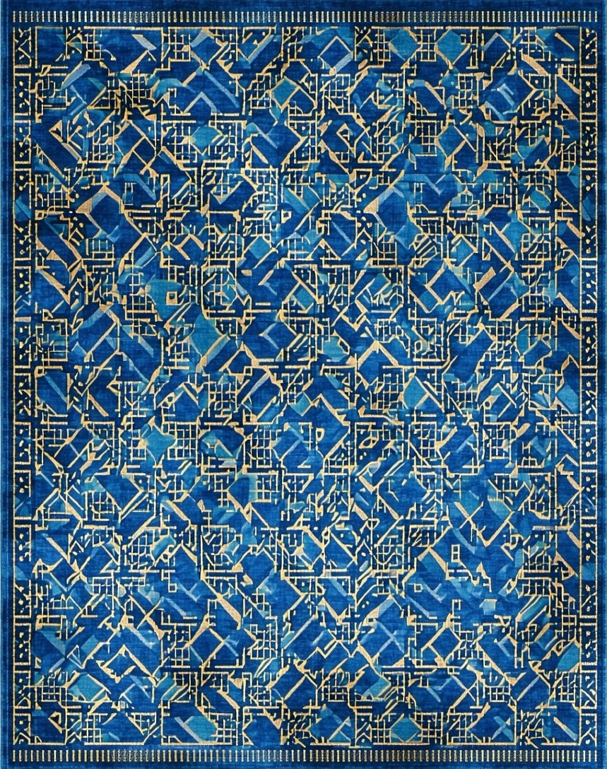 Contemporary Geometric Design Runner Area with Dynamic Shapes(Blue)