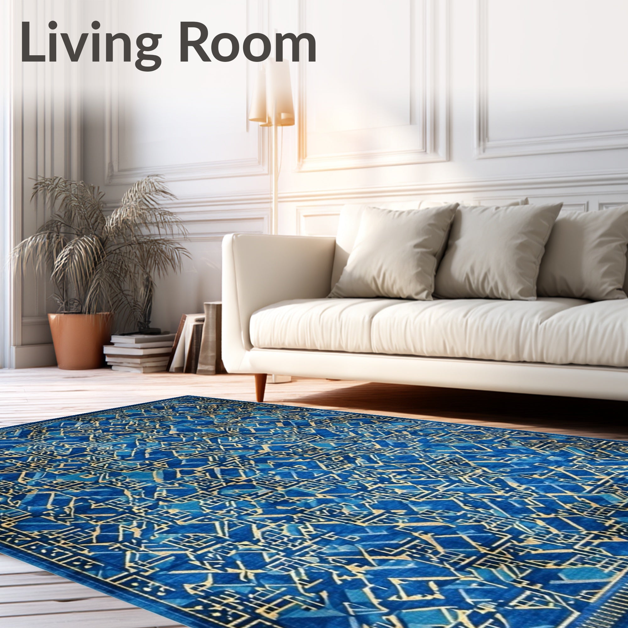 Ultra Soft Area Rug, Non Slip, Stain Resistant, Washable Area Rugs for Living Room, Bedroom, Contemporary Geometric Design Runner Area with Dynamic Shapes(Blue) Overview: